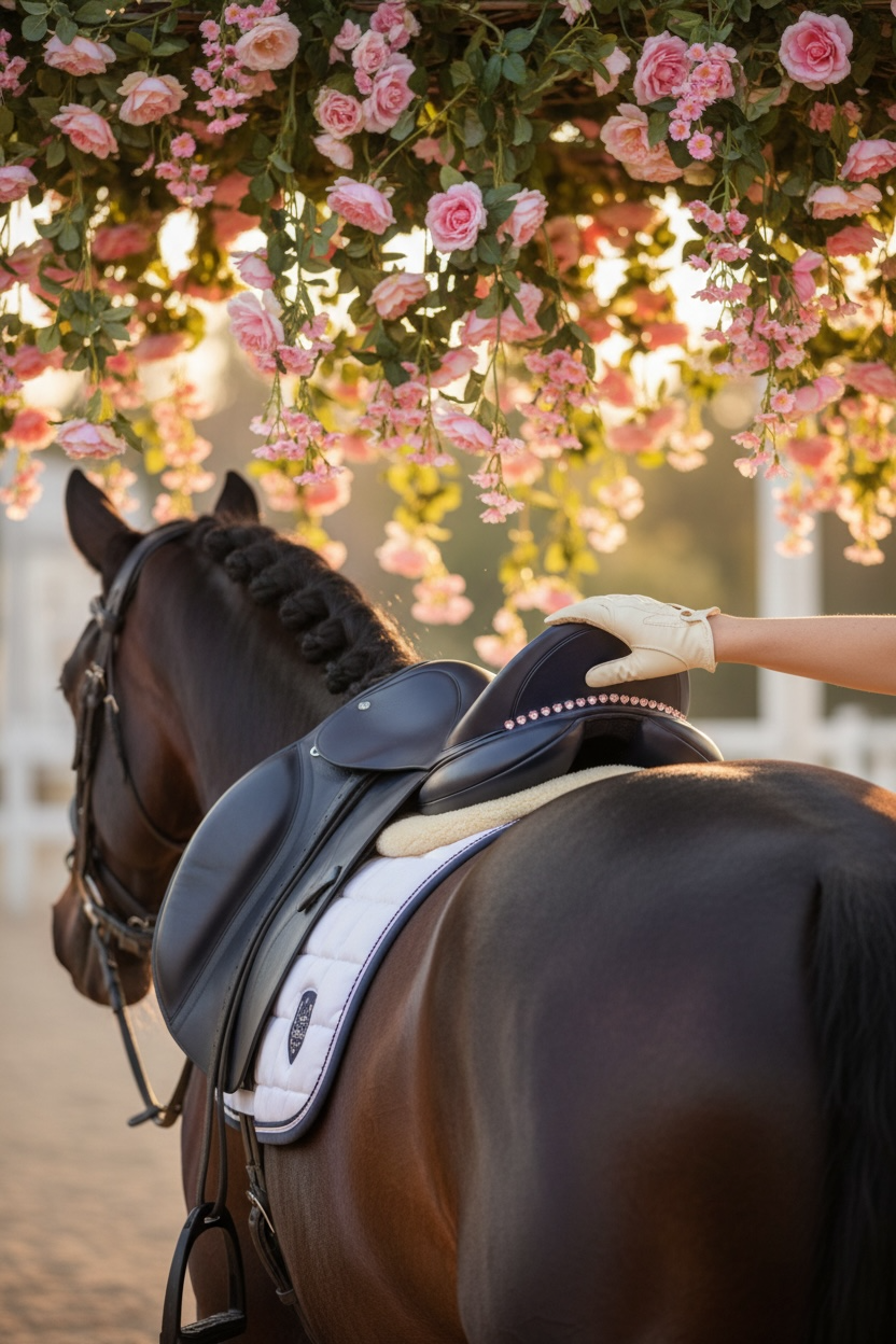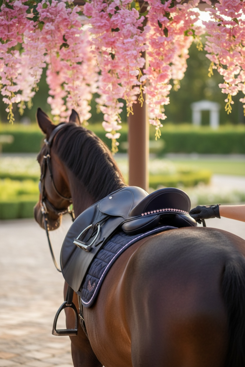 - Sattelschmuck um den hinteren Teil des Sattels führen