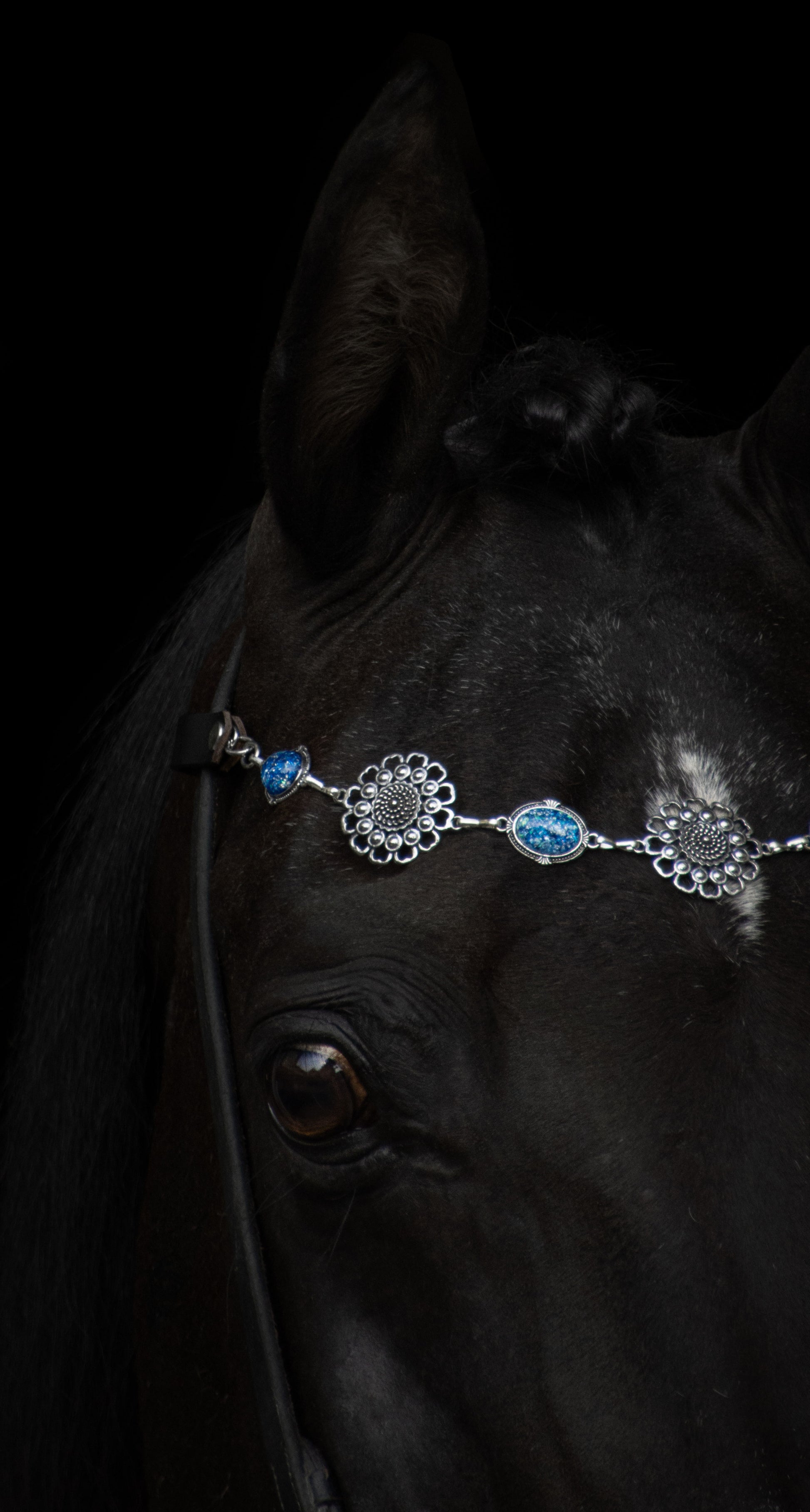 Verwandeln Sie Ihr Pferd in einen königlichen Begleiter mit unserem verspielten Blue Iris-Pferdeschmuck! Diese funkelnde Verzierung verleiht Ihrem edlen Vierbeiner einen magischen Touch – perfekt für Fotoshootings, Showritte oder besondere Anlässe. Ein glitzerndes Accessoire, das Blicke verzaubert und Ihr Pferd zum strahlenden Star macht!