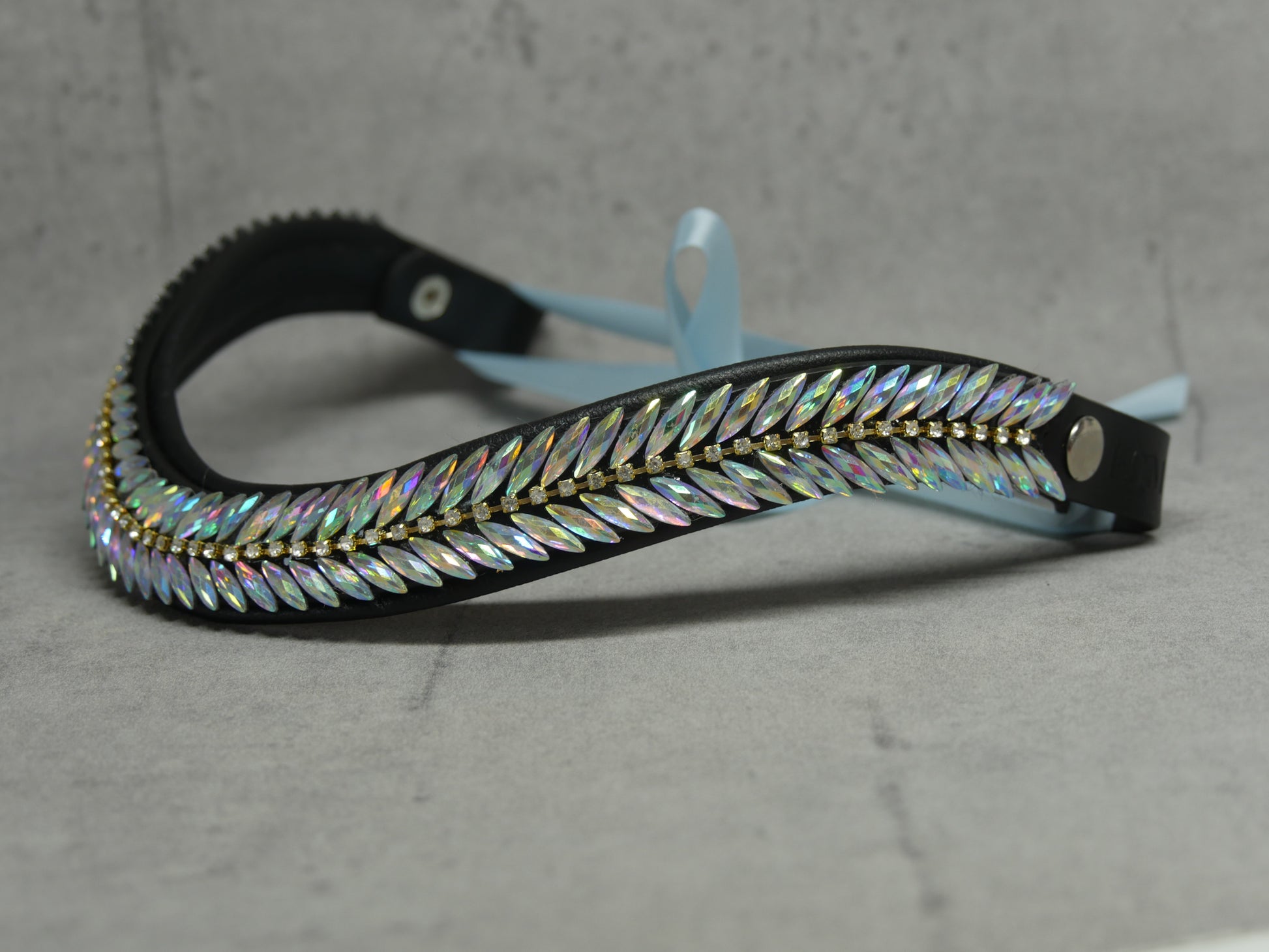 Verleihen Sie Ihrem Pferd mit unserem holografischen Stirnriemen im Federmuster einen edlen und funkelnden Look. Die silbernen Strasssteine sorgen für auffallende Reflexe in der Sonne. Ein wunderschönes Accessoire, das Ihrem Pferd eine besondere Ausstrahlung verleiht, mit praktischem Quick-Change-Verschluss.