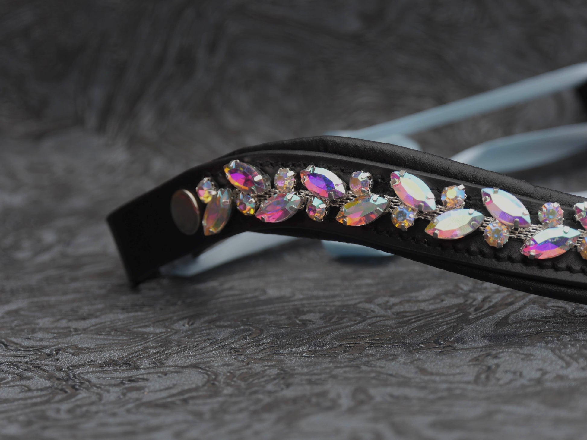 Verleihen Sie Ihrem Pferd einen magischen Glanz mit dem Stirnriemen Rainbow aus unserer exklusiven Fantasy Kollektion. Die atemberaubenden holographischen Strasssteine fangen das Licht ein und verwandeln jede Bewegung in ein funkelndes Spektakel. Dank des praktischen Schnellverschlusses sparen Sie wertvolle Zeit beim Trensen und genießen maximalen Komfort. Ein Must-have für alle, die im Reitring glänzen wollen!