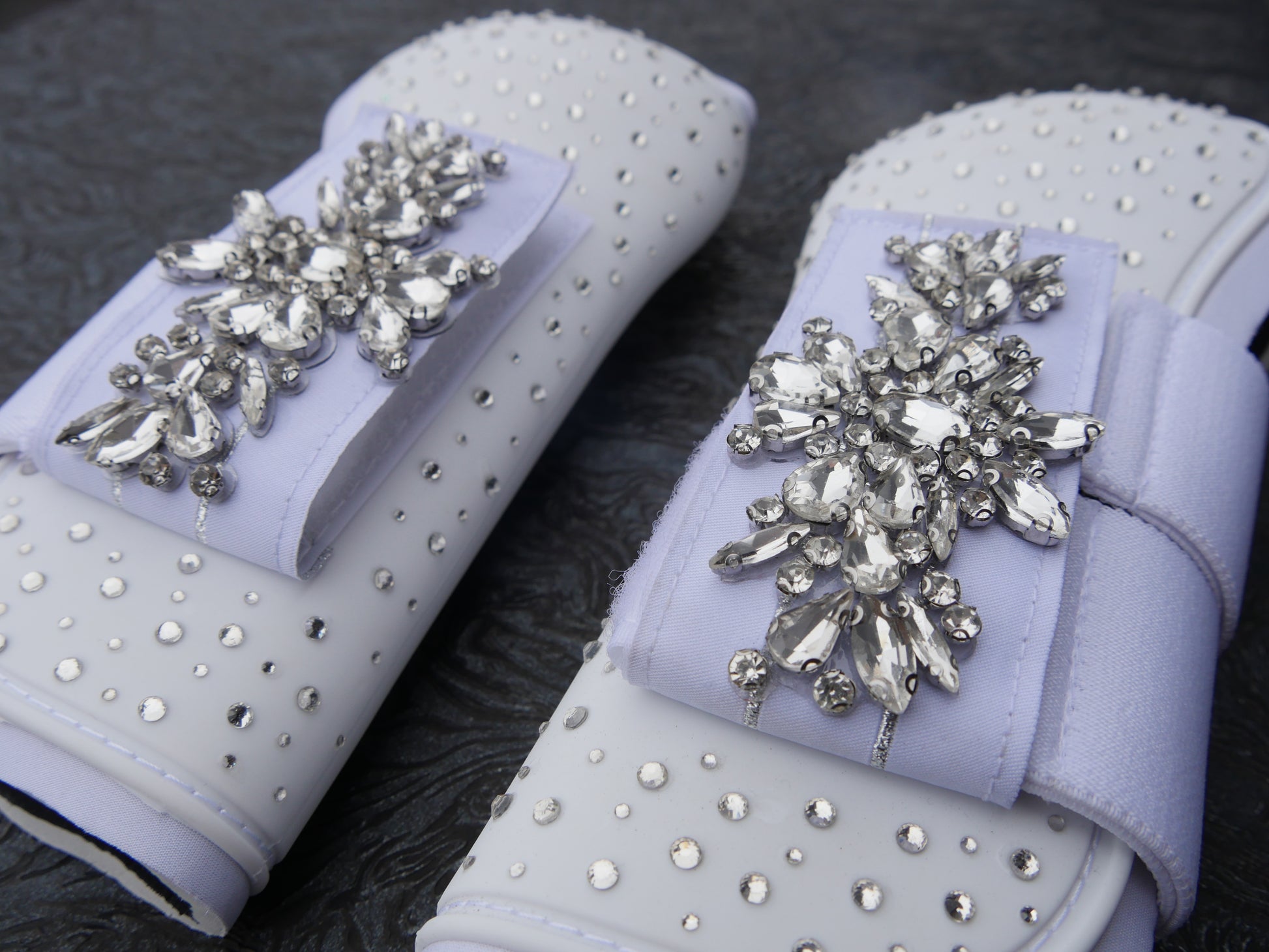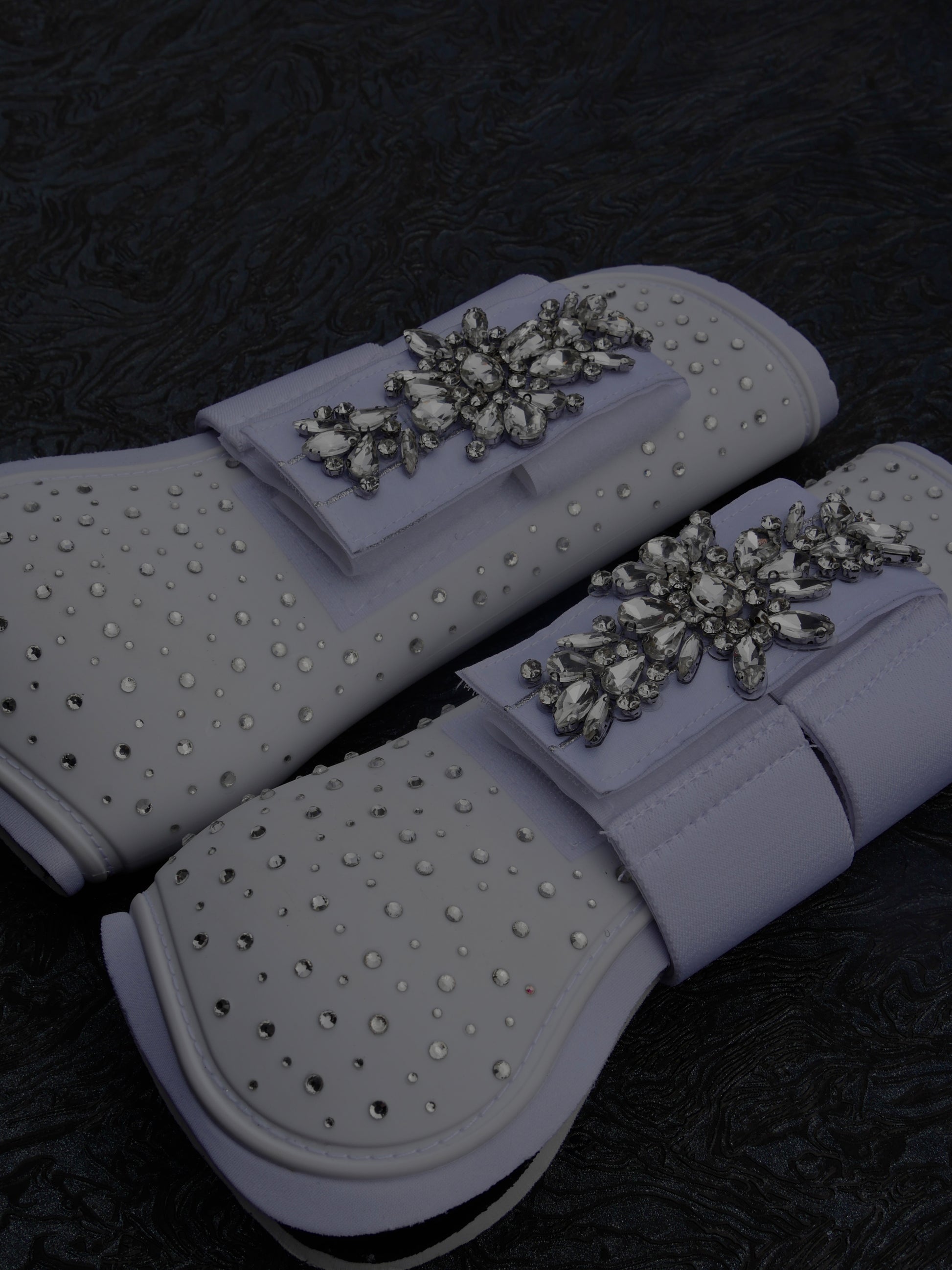 Verwöhnen Sie Ihr Pferd mit unseren Glitzer Gamaschen in alt rosa! Die rosanen Glitzermaschen sind mit funkelnden Strasssteinen in Silber verziert und sorgen für einen perfekten Auftritt bei Showreiten oder besonderen Anlässen. Lassen Sie sich und Ihr Pferd glänzen!
