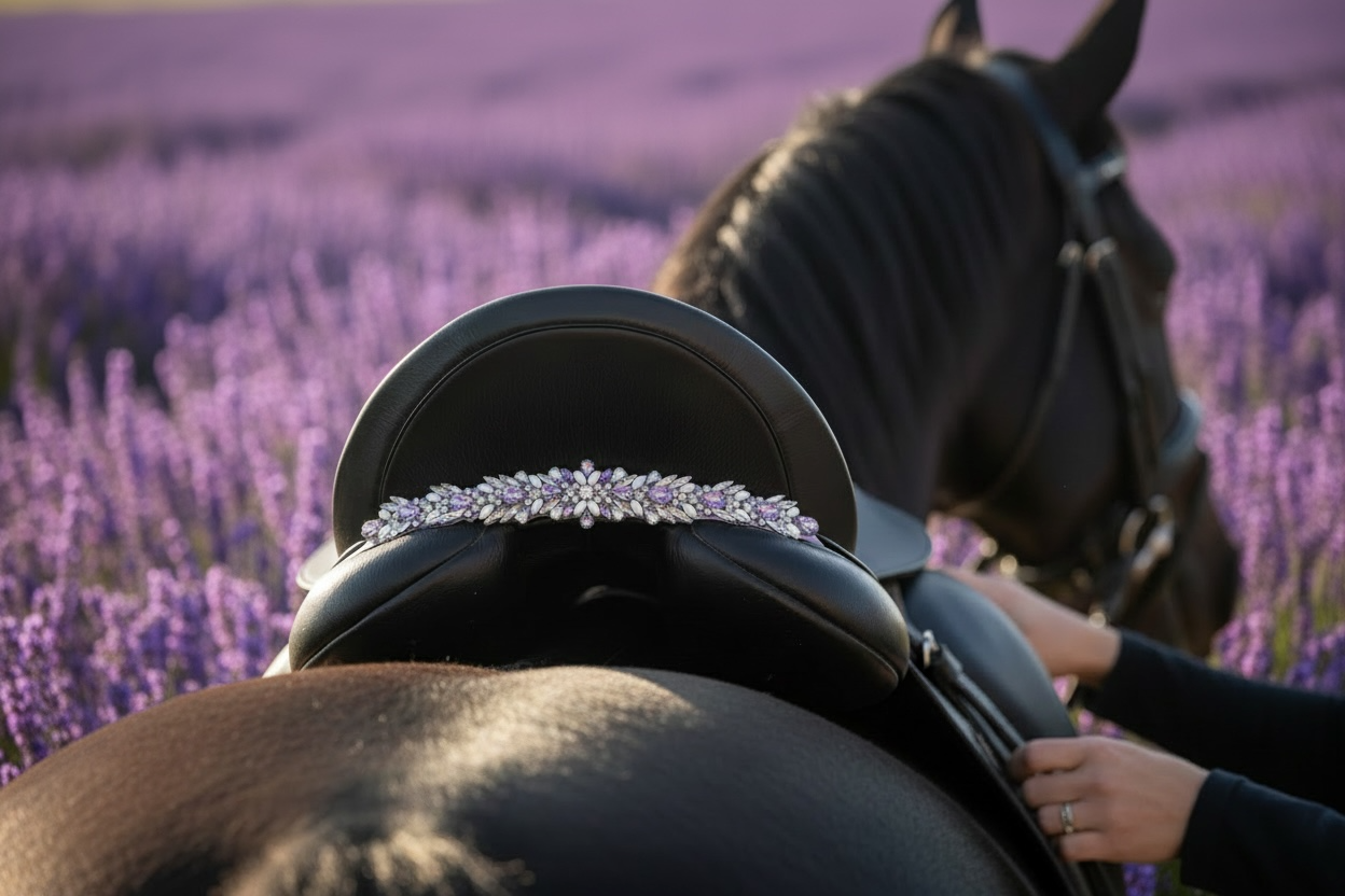 Verleihen Sie Ihrem Sattel mit dem Sattelschmuck Lavender einen frischen, individuellen Look! Ob luxuriös oder dezent, dieser Schmuck bringt Farbe in Ihren Alltag. Die verstellbaren Gummibänder passen an viele Sattelmodelle und bieten somit Flexibilität und Stil in einem!