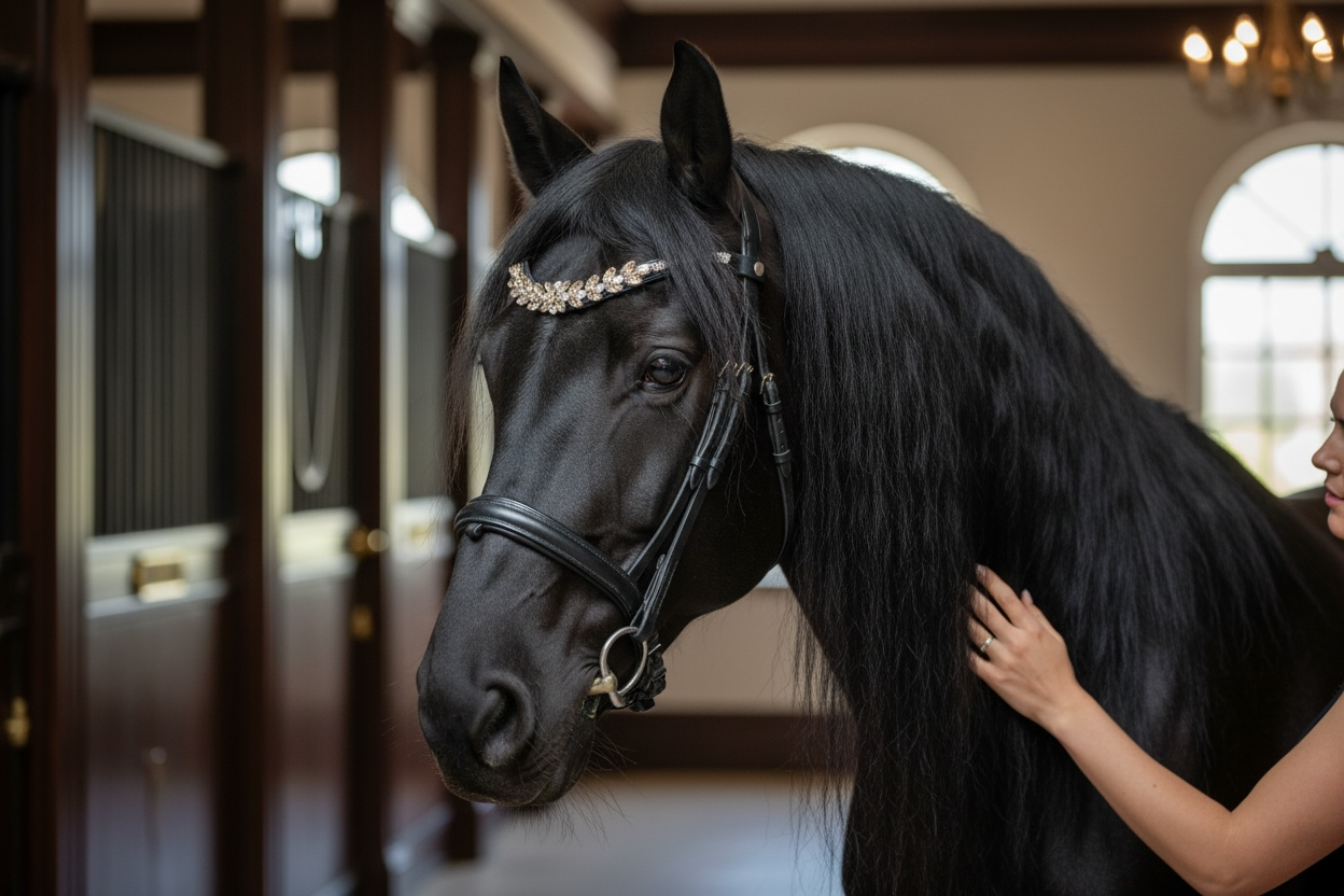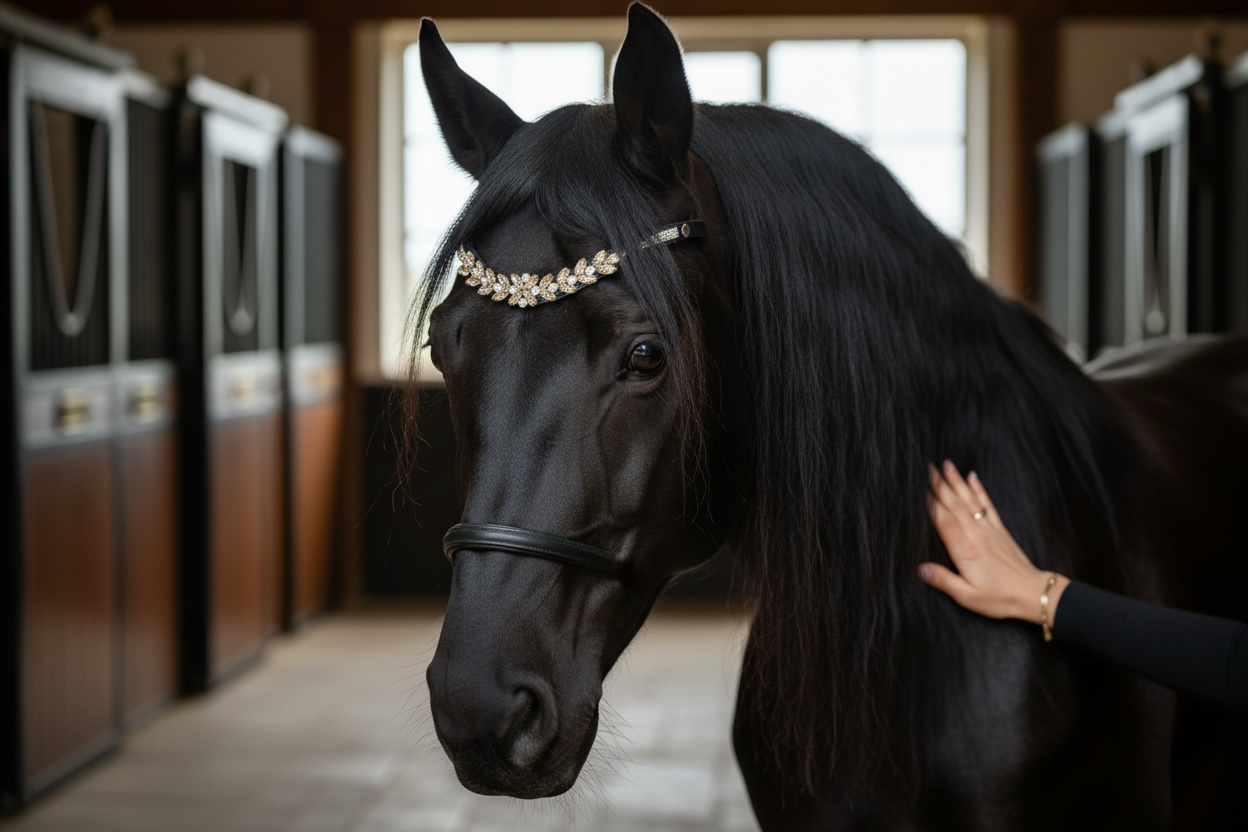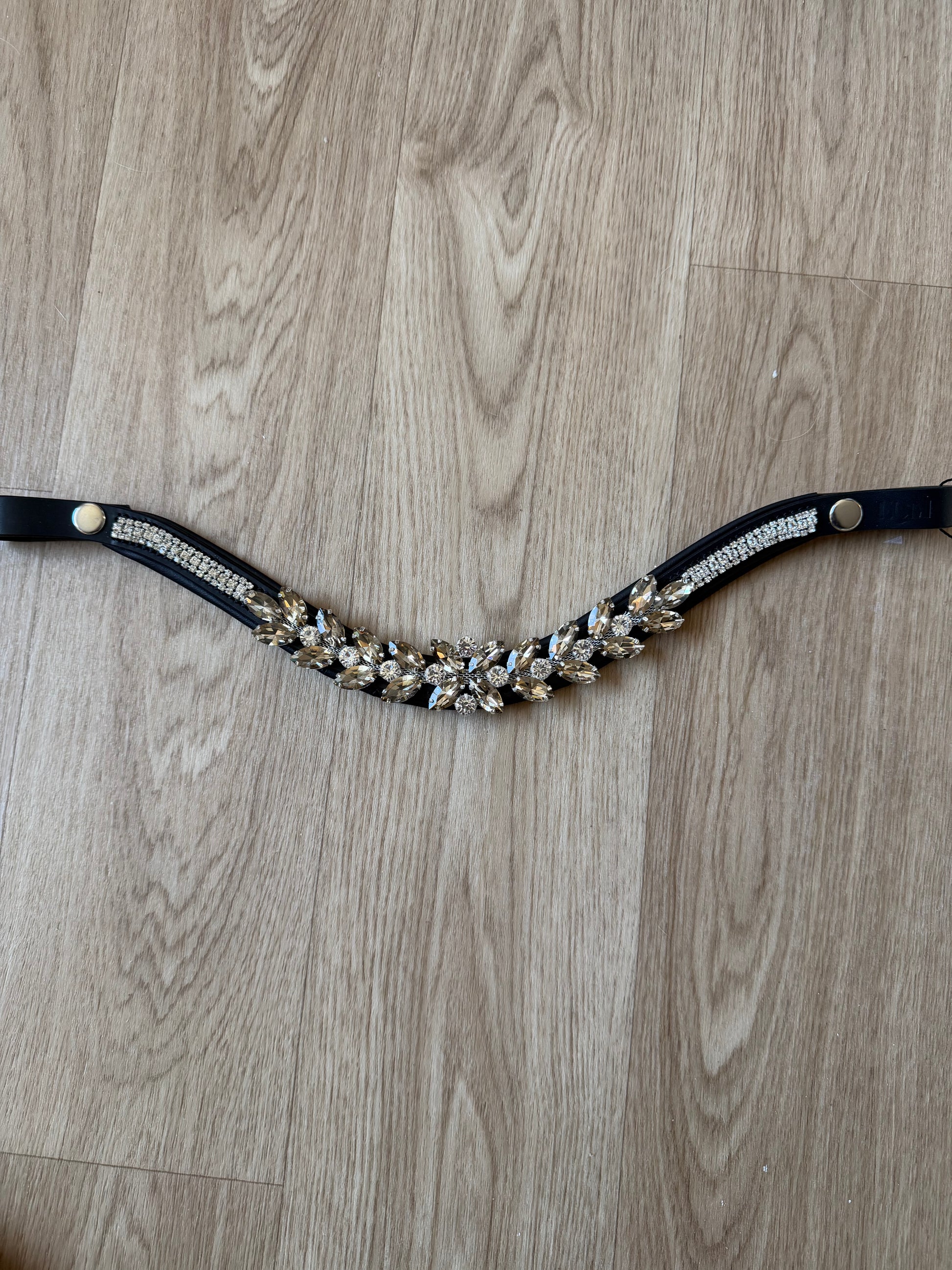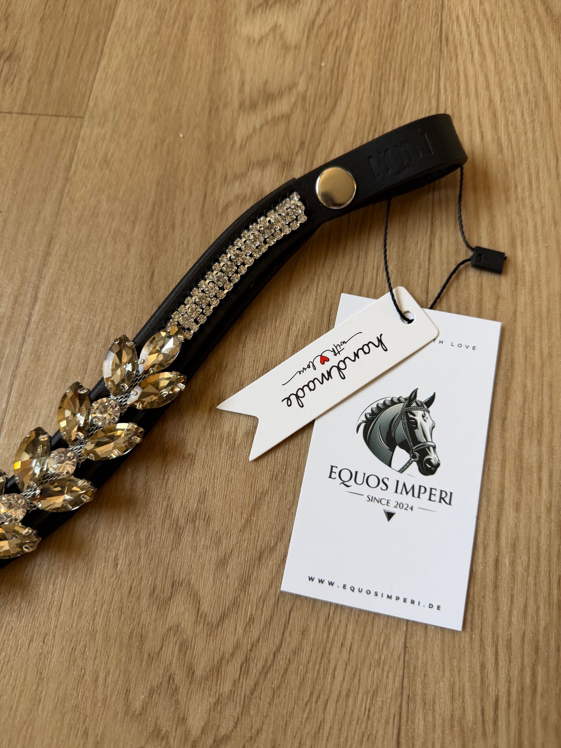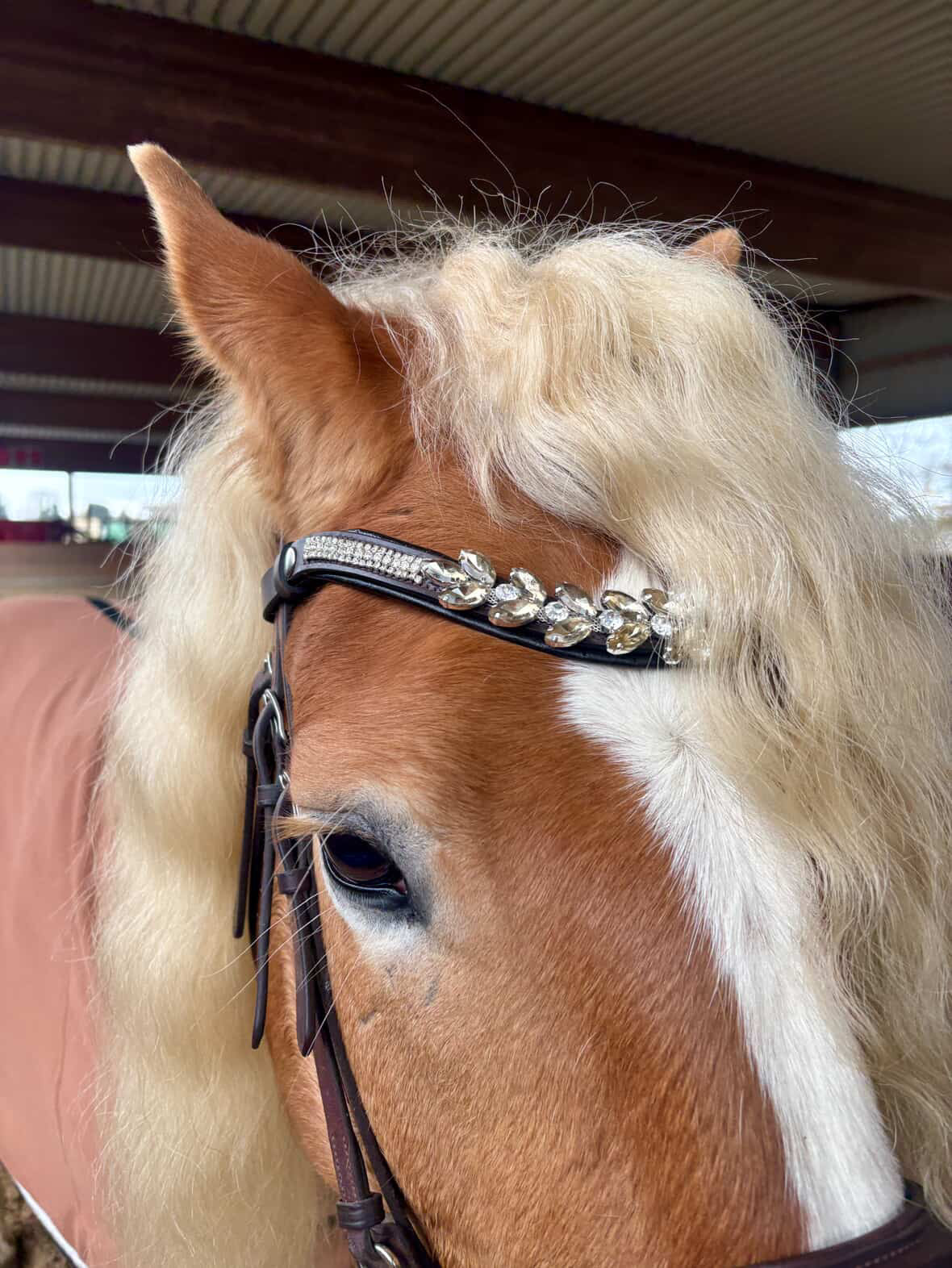 Entdecken Sie den bezaubernden Stirnriemen Saint Marlo in elegantem Champagner mit silbernen Akzenten! Dieses stilvolle Accessoire bringt nicht nur Glanz in Ihr Outfit, sondern lässt sich perfekt mit passendem Sattelschmuck kombinieren. Vervollständigen Sie Ihren Look und fühlen Sie sich auf dem Pferd selbstbewusst und einzigartig!