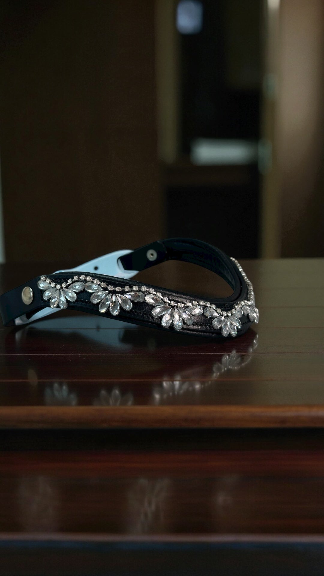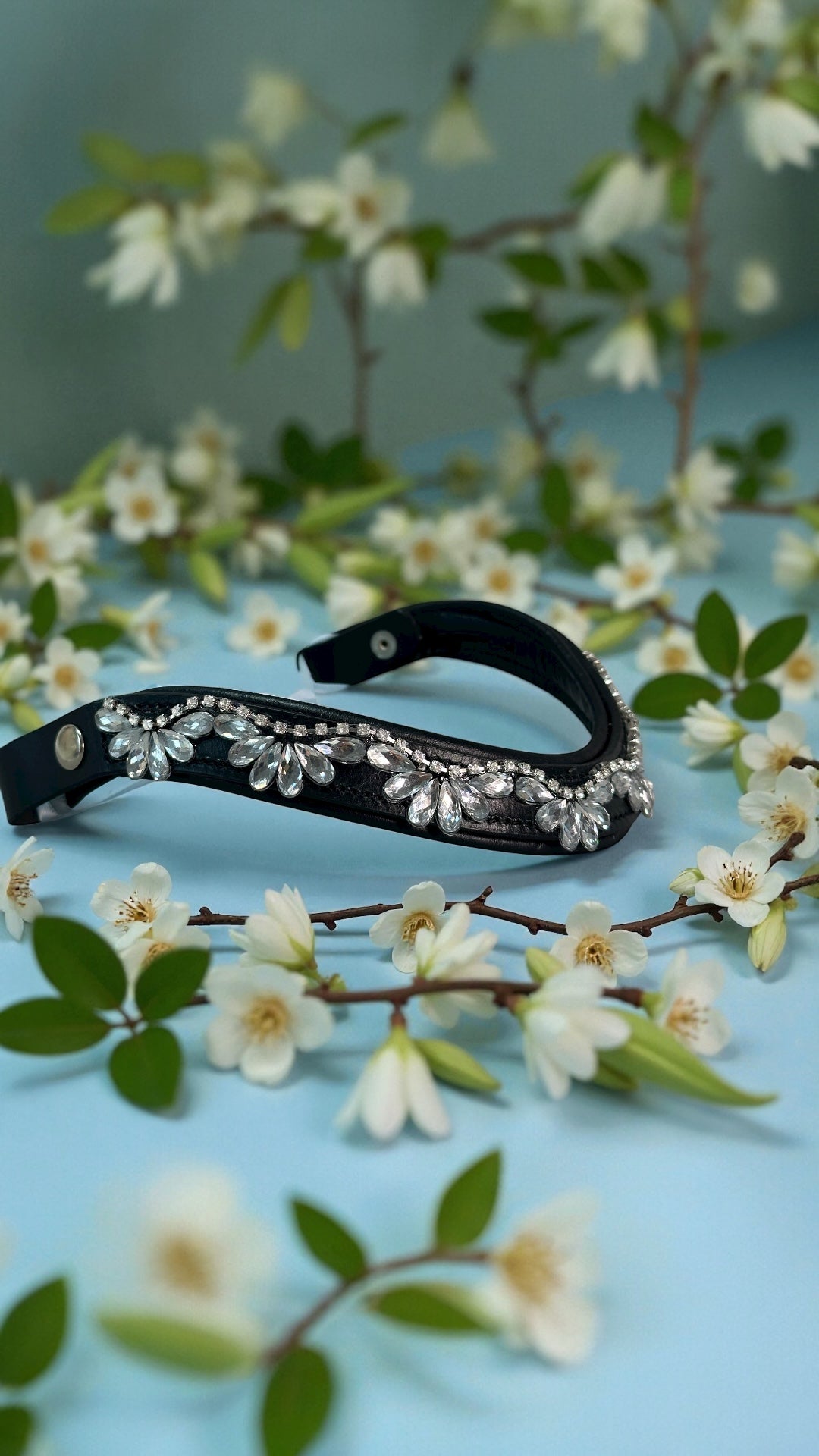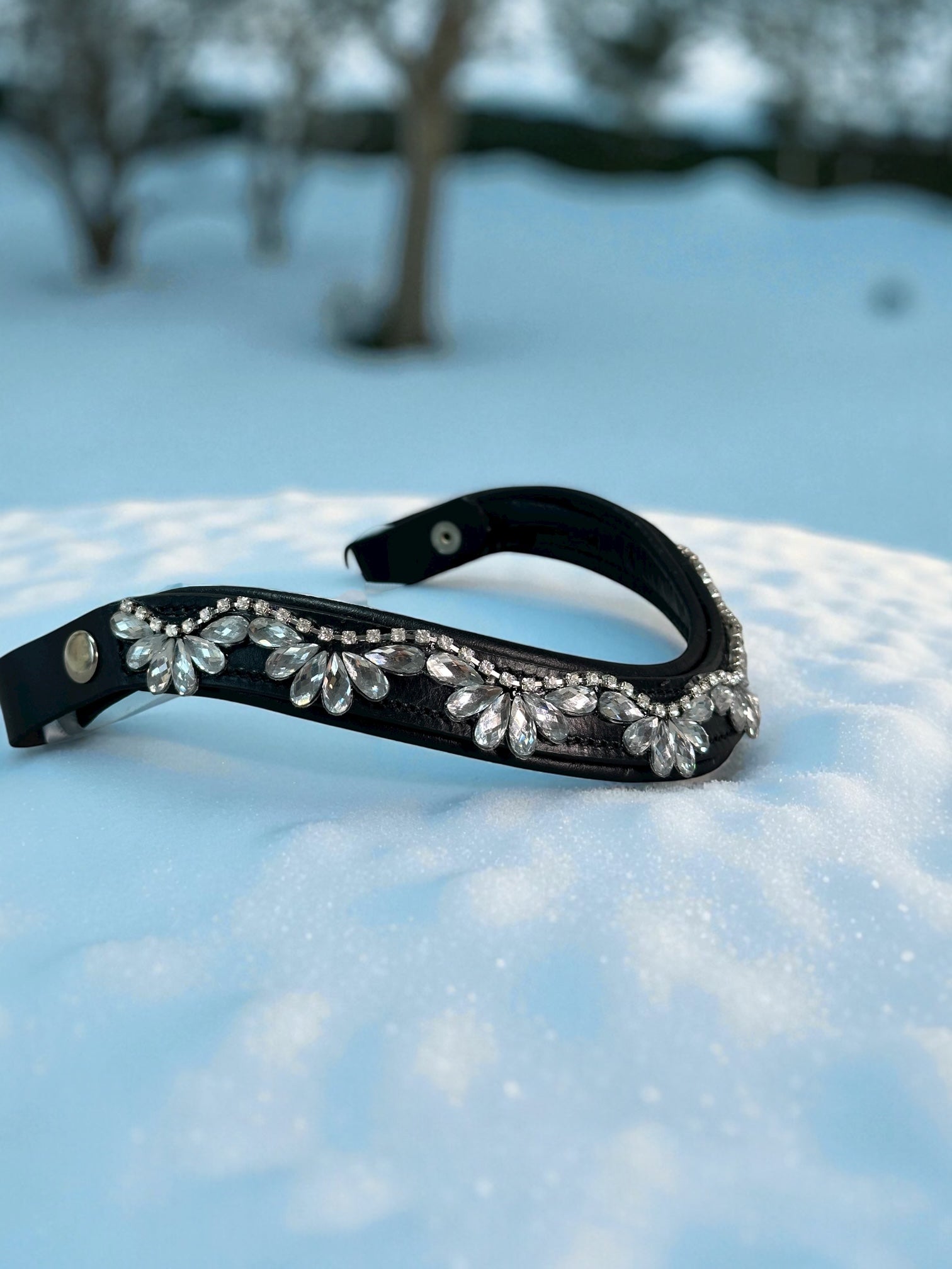 Mit dieser gehäkelten Fliegenhaube in silber -Farben mit einem Strassband wird dein Pferd garantiert zum Hingucker! Ein edles Design, welches nicht nur glitzert, sondern auch vor Fliegen schützt. Ein Must-Have für jedes Pferd!