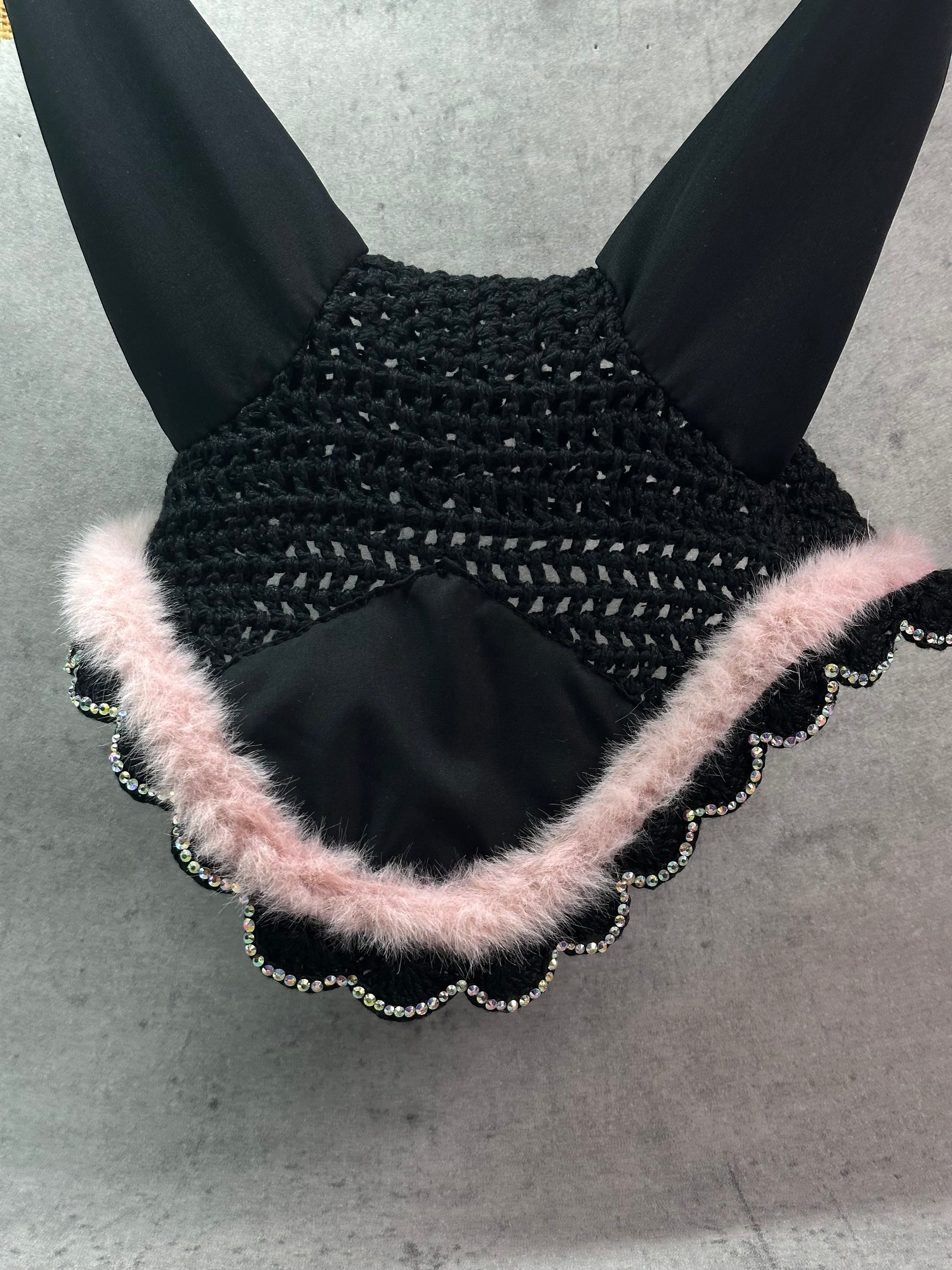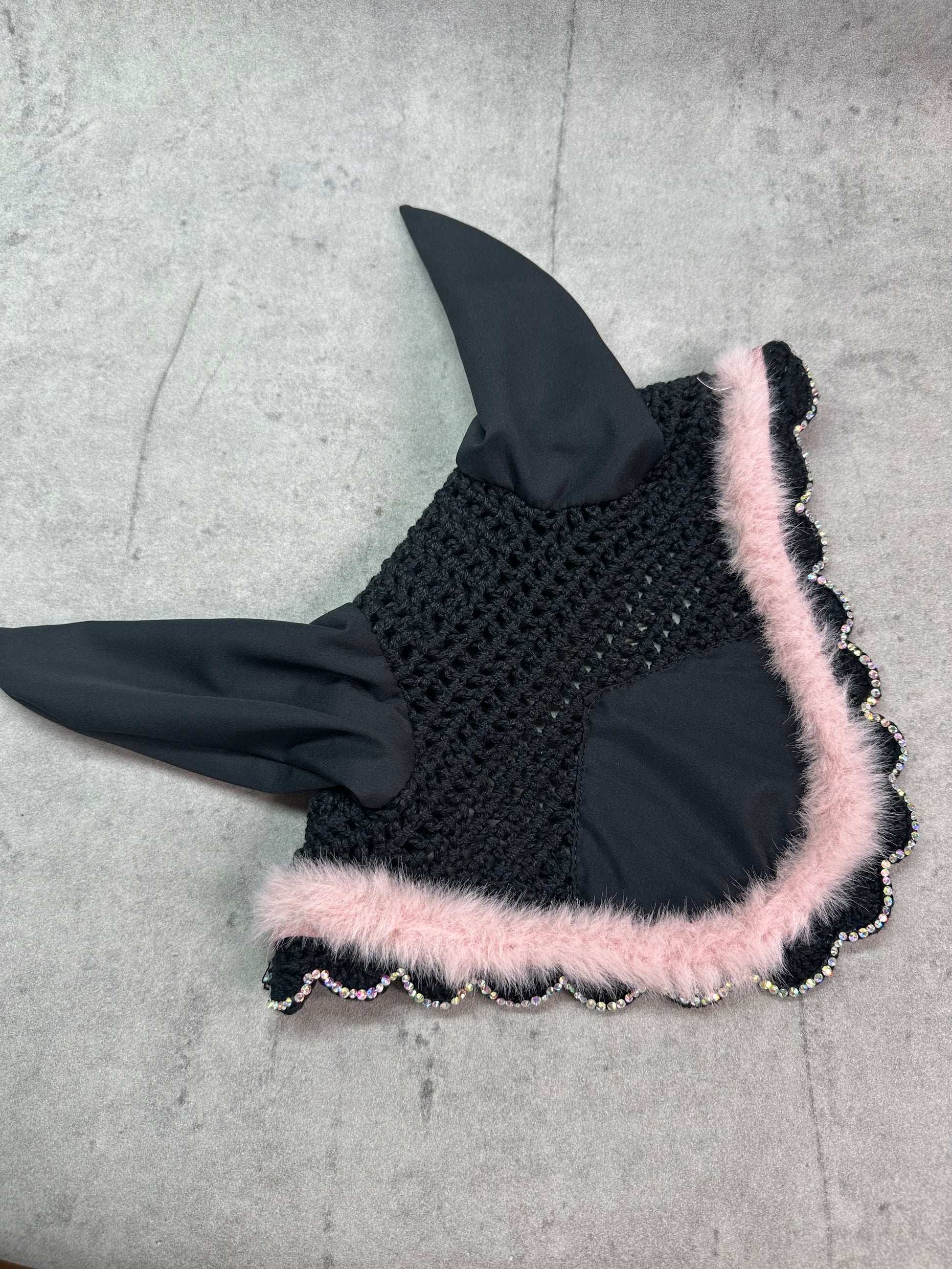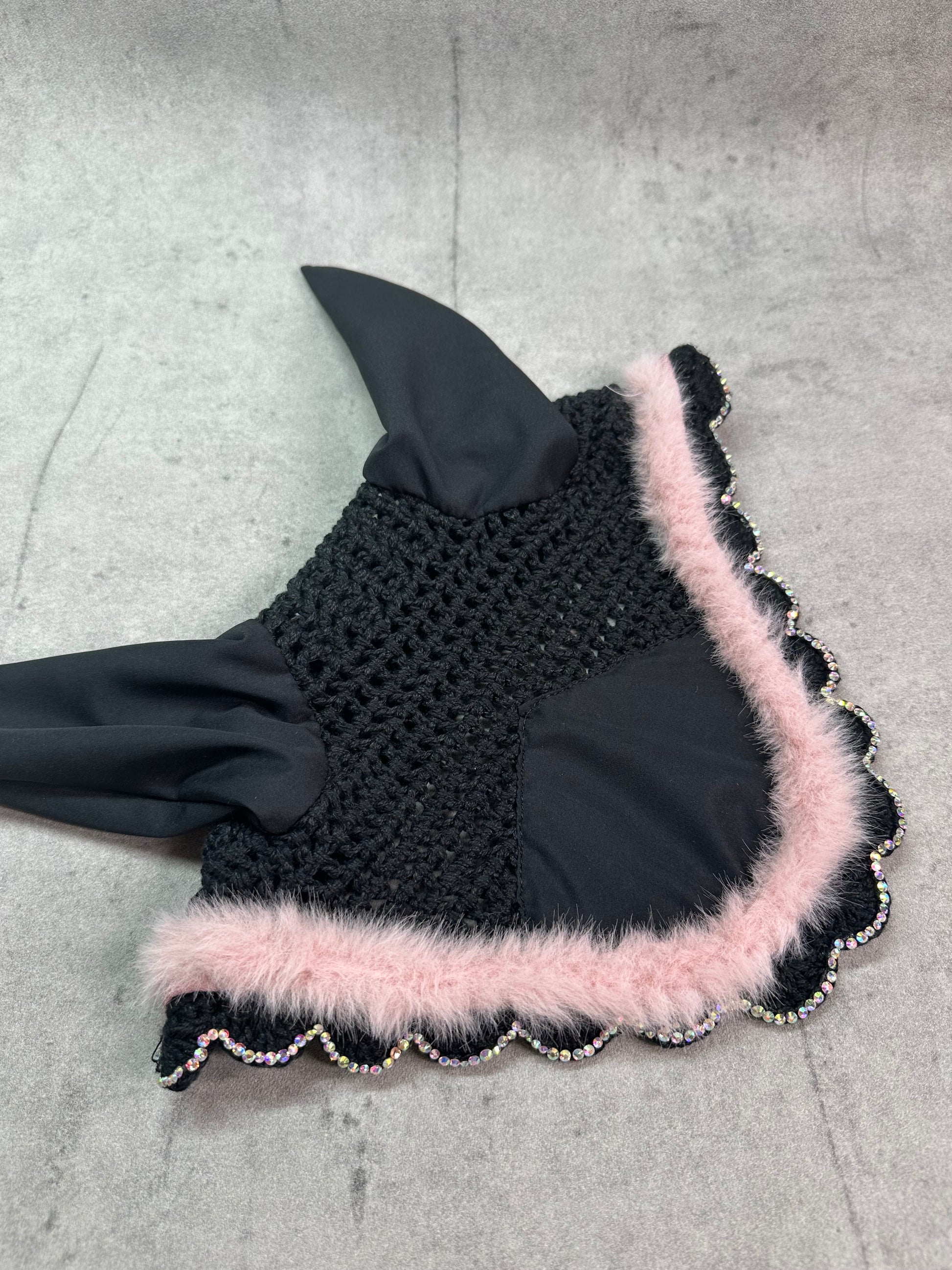 Mit dieser gehäkelten Fliegenhaube mit einem flauschigem Rand und einem Strassband wird dein Pferd garantiert zum Hingucker! Ein edles Design, welches nicht nur glitzert, sondern auch vor Fliegen schützt. Ein Must-Have für jedes Pferd!