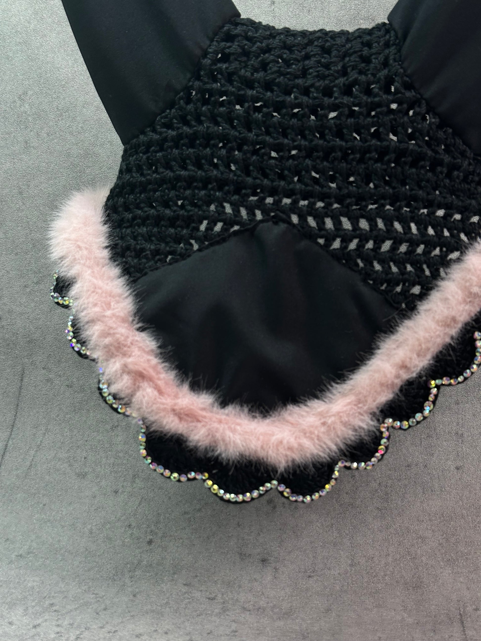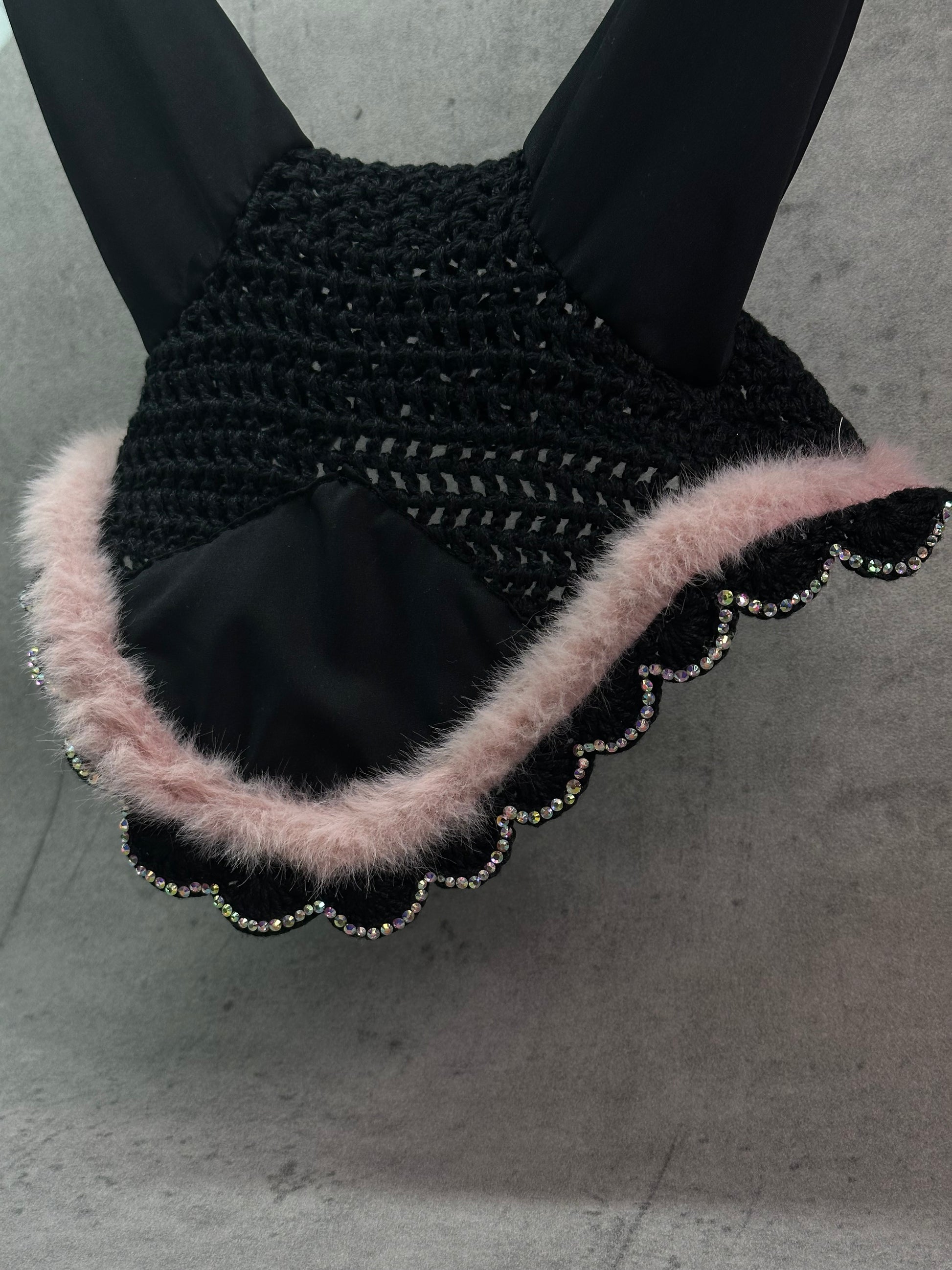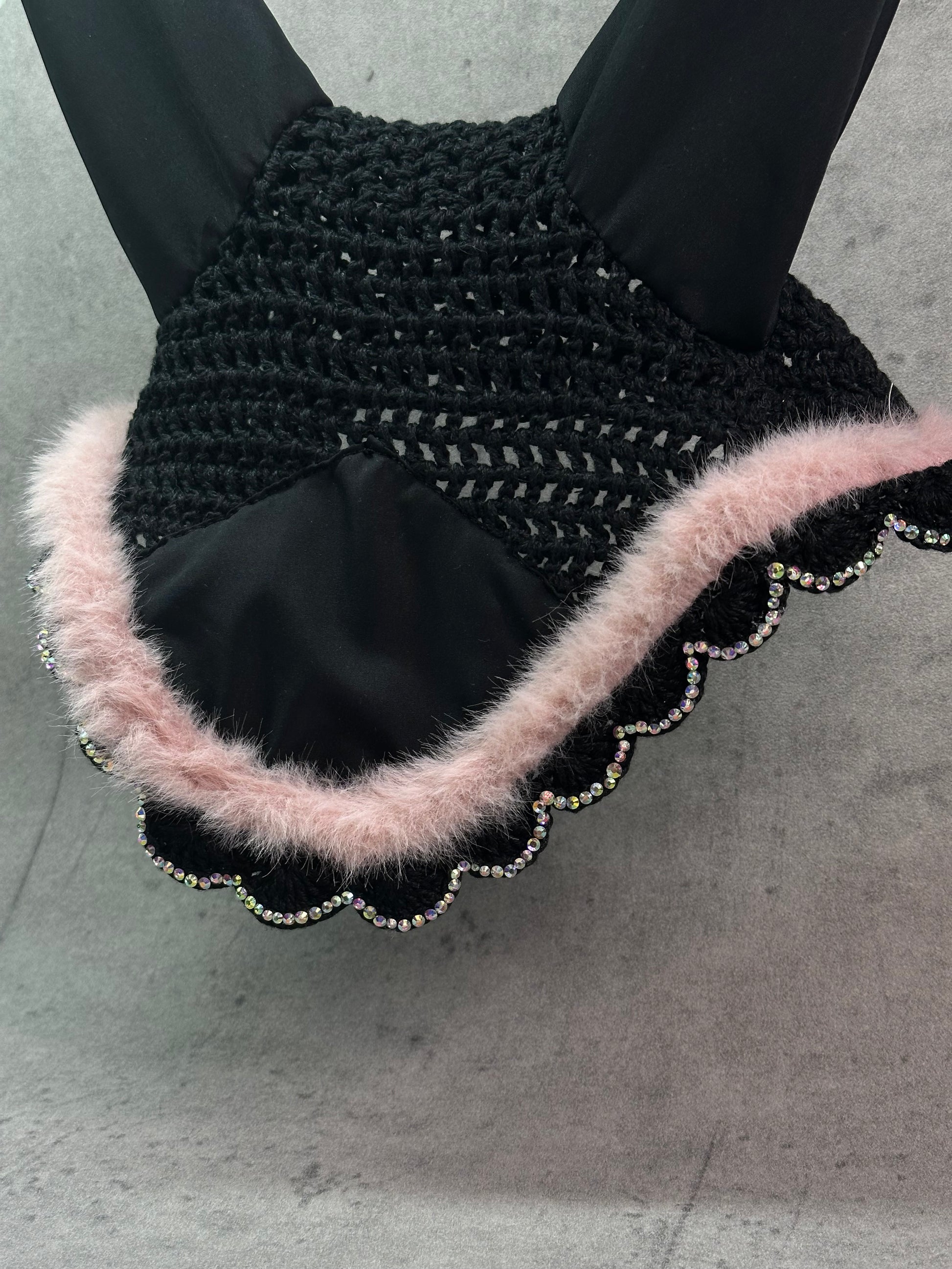 Mit dieser gehäkelten Fliegenhaube mit einem flauschigem Rand und einem Strassband wird dein Pferd garantiert zum Hingucker! Ein edles Design, welches nicht nur glitzert, sondern auch vor Fliegen schützt. Ein Must-Have für jedes Pferd!