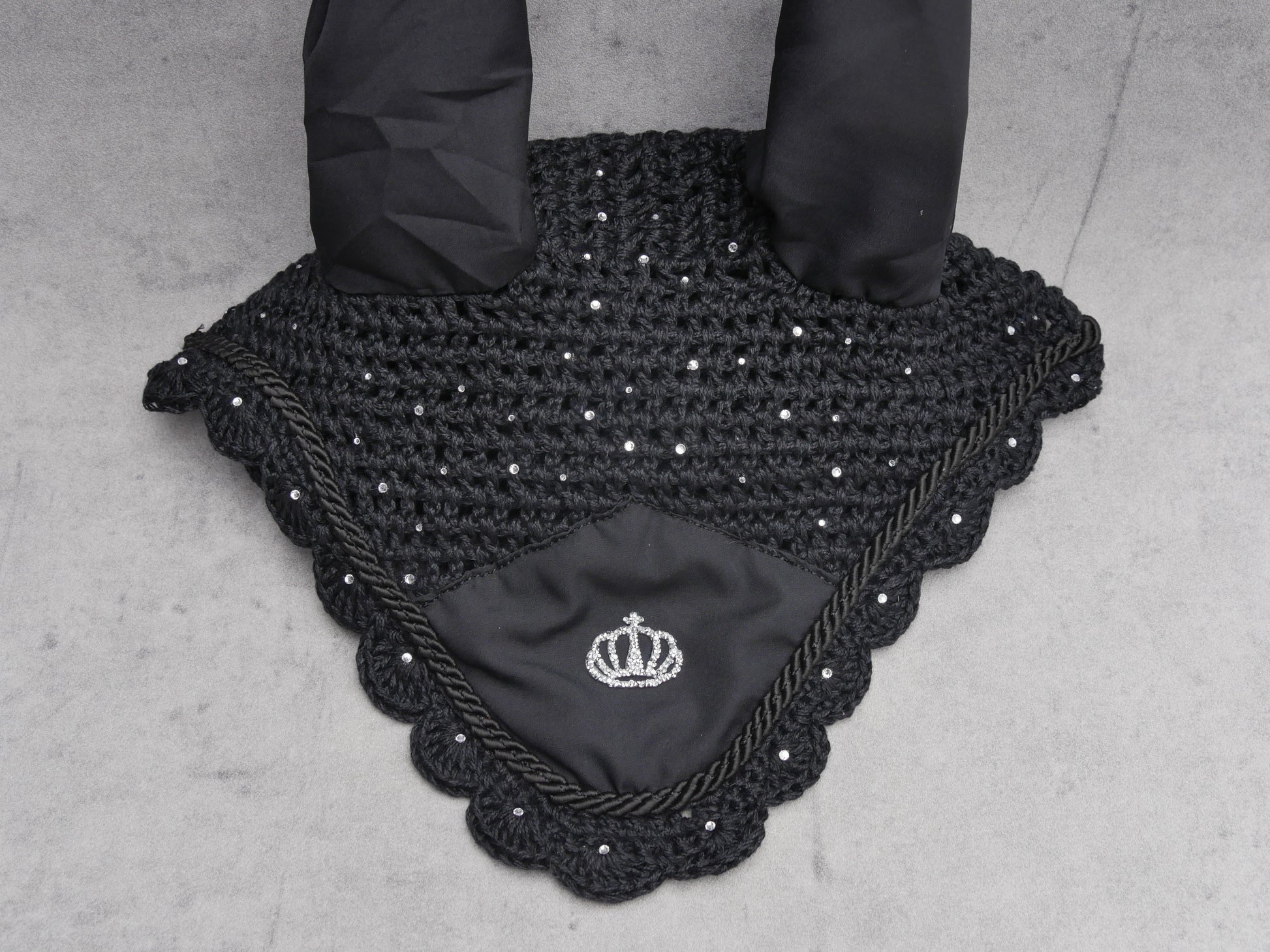 Diese verspielte Fliegenhaube „Princess“ verleiht jedem Pferd einen königlichen Look. Mit funkelndem Glitzer und einer eleganten Krone in der Mitte sorgt sie für einen charmanten Auftritt – perfekt, um auf dem Reitplatz oder bei Turnieren zu glänzen. Komfortabel und stilvoll zugleich!