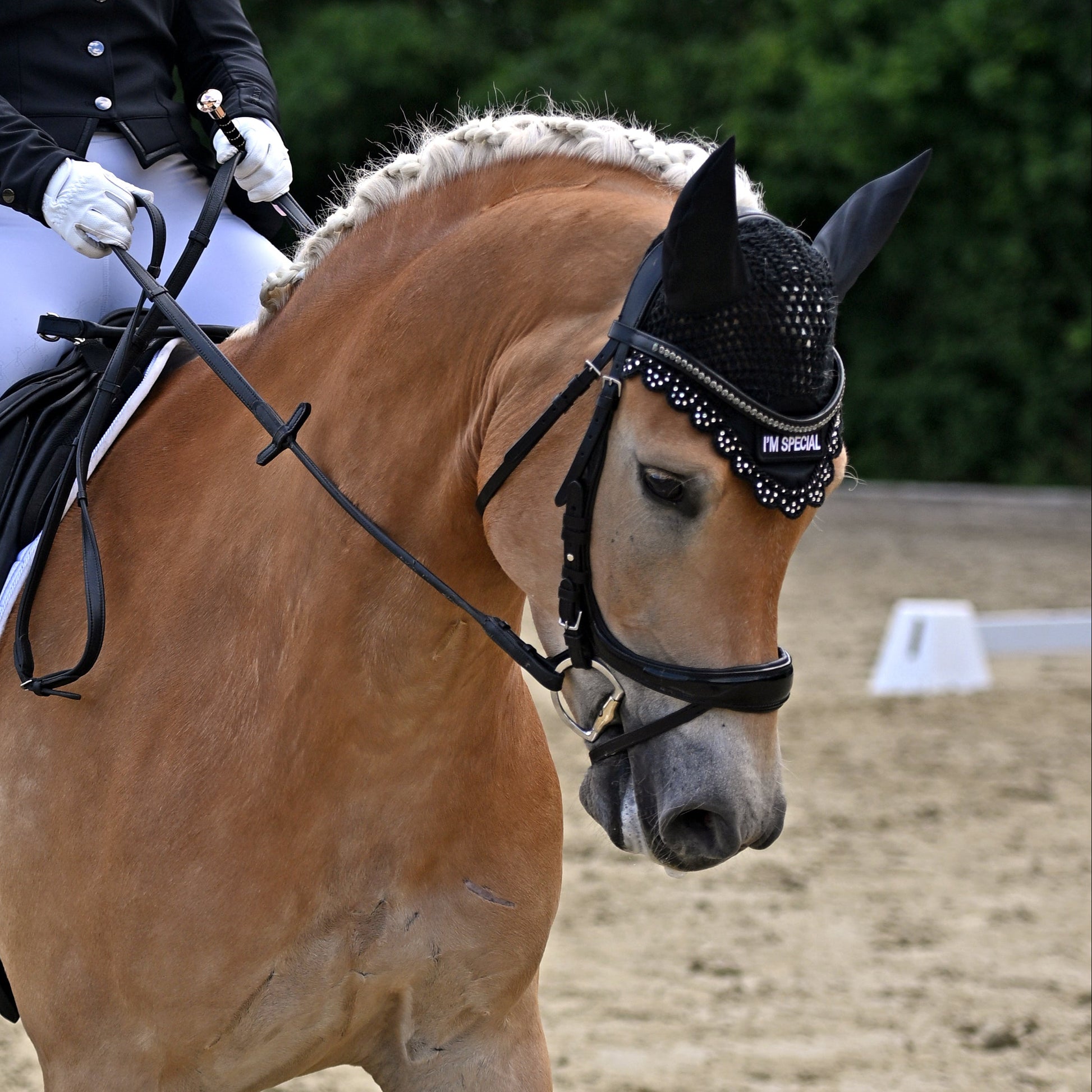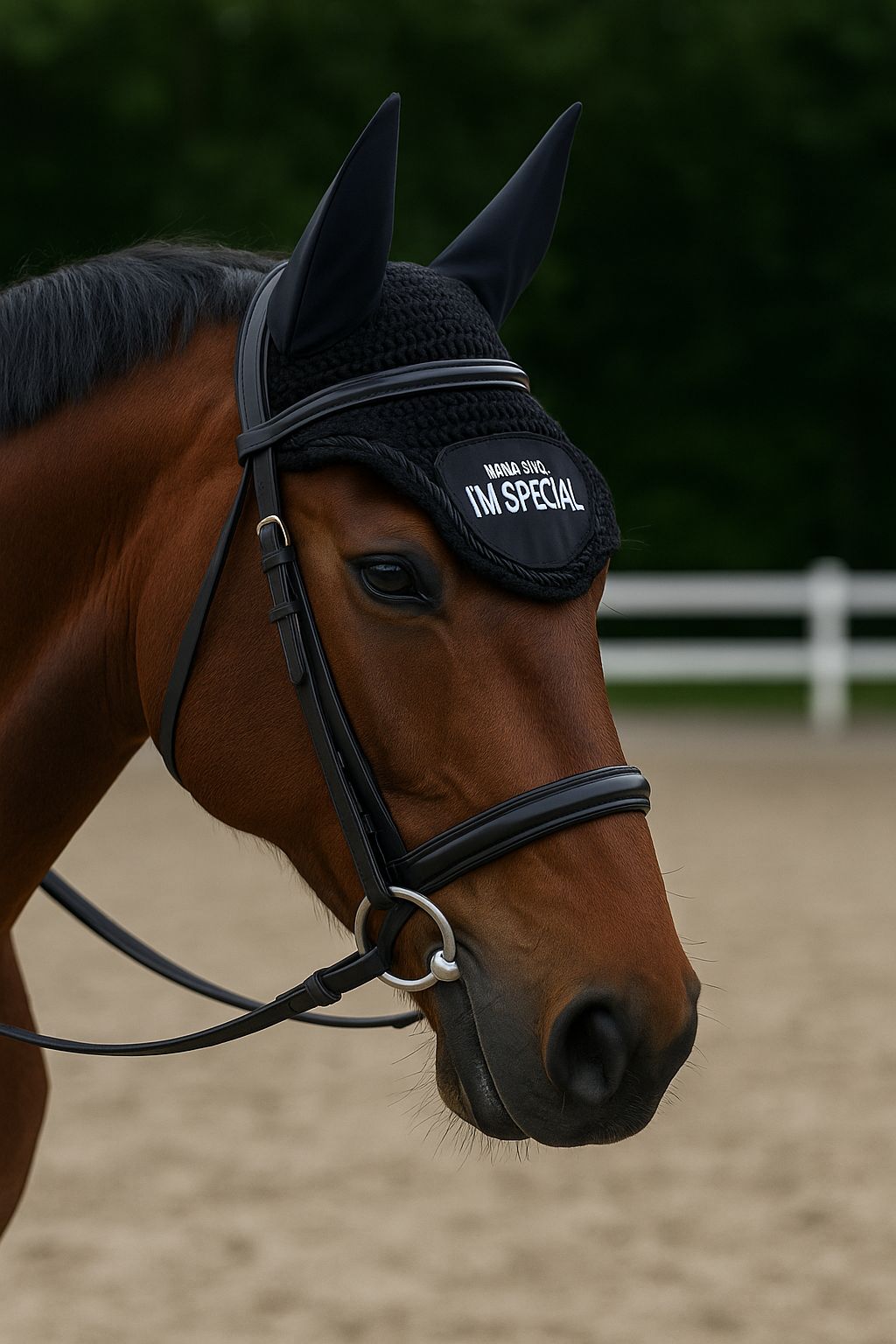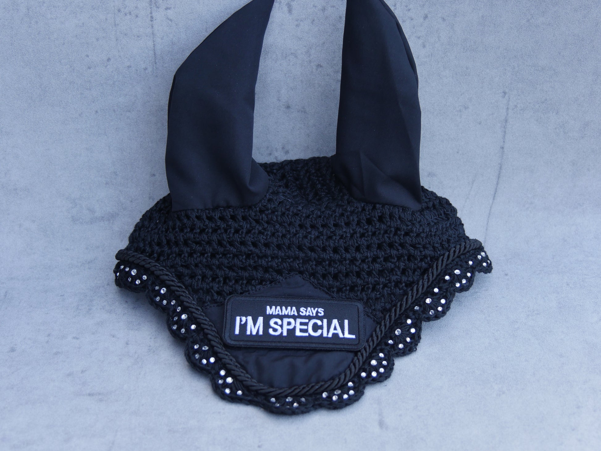 Reite ganz ohne Sorgen mit der Fliegenhaube 'Mama says I'm special'! Schütze dein Pferd vor lästigen Fliegen und zeige gleichzeitig deinen Spaß an Humor. Perfekt für besondere Pferde und deren humorvolle Besitzer. Einfach aufsetzen und Spaß haben!
