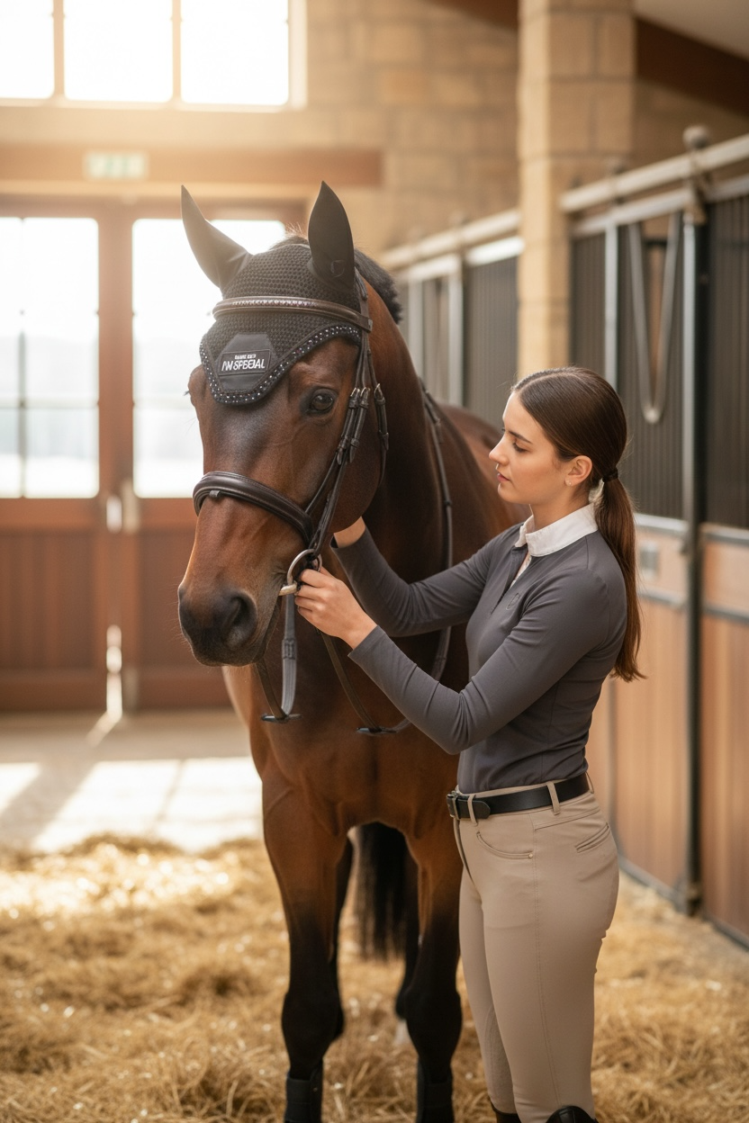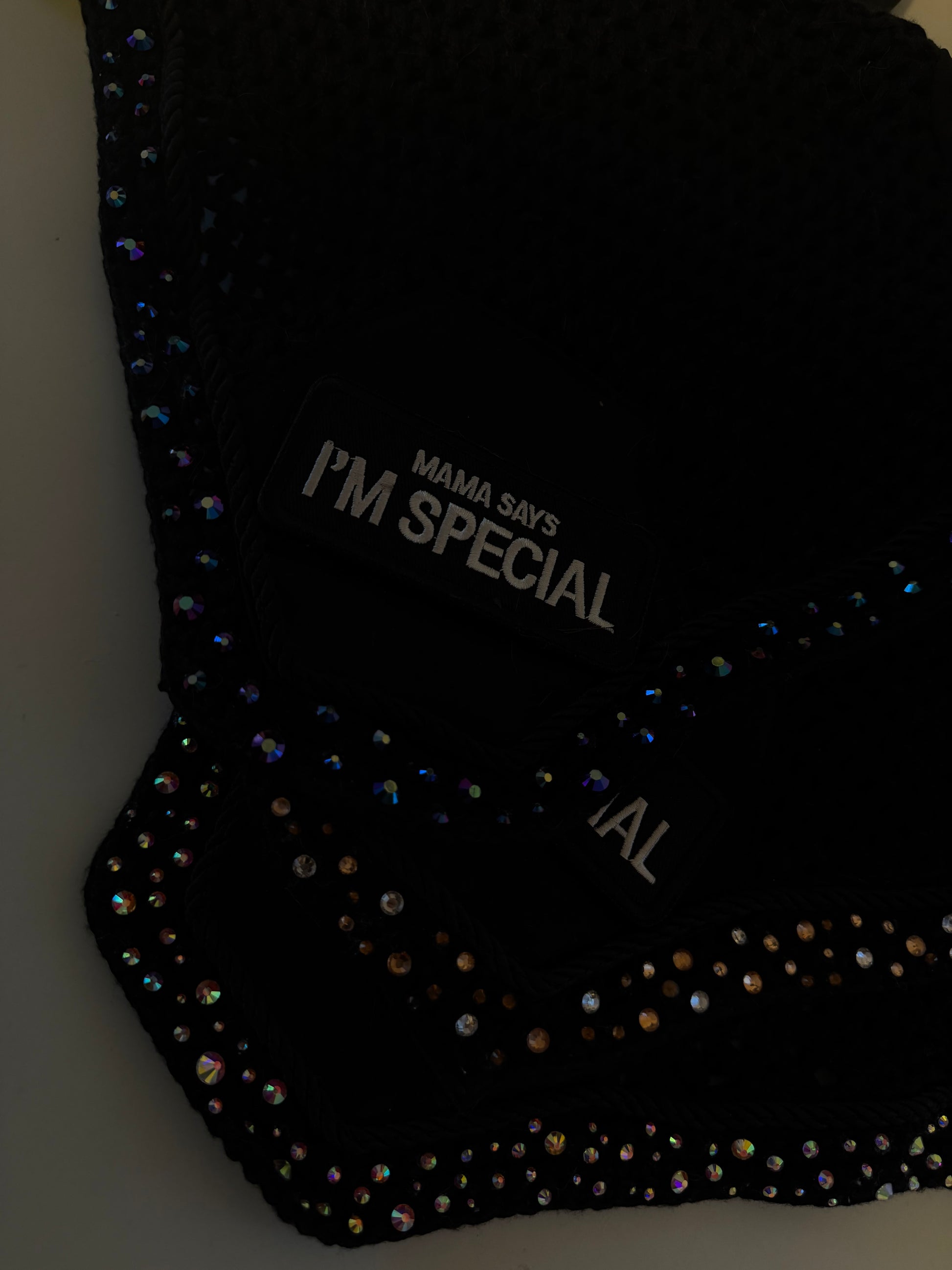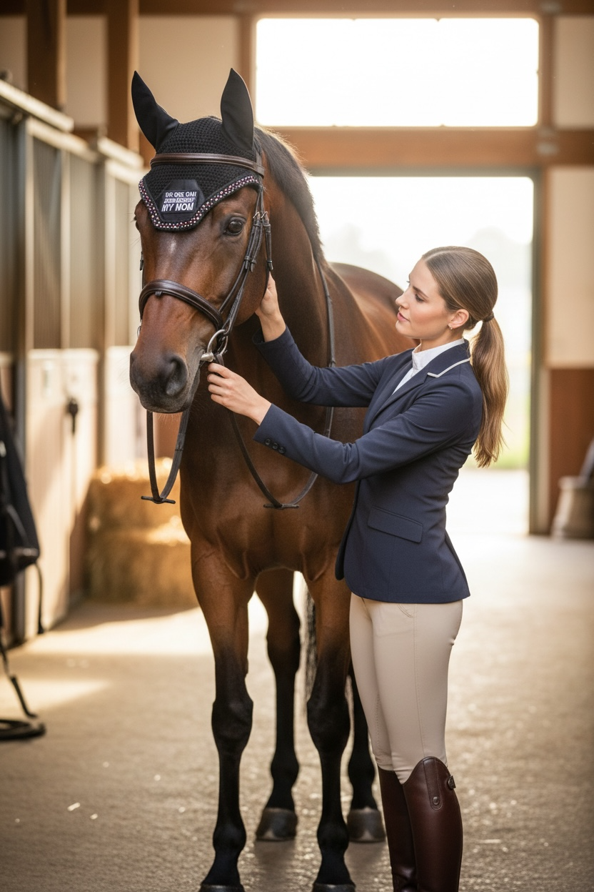 Reite ganz ohne Sorgen mit der Fliegenhaube 'Mama says I'm special'! Schütze dein Pferd vor lästigen Fliegen und zeige gleichzeitig deinen Spaß an Humor. Perfekt für besondere Pferde und deren humorvolle Besitzer. Einfach aufsetzen und Spaß haben!
