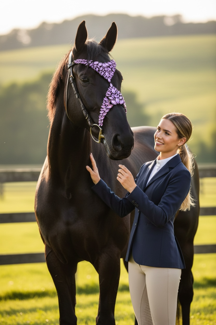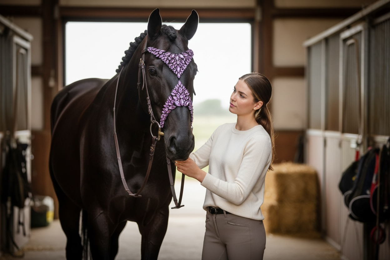 Verzaubern Sie mit unserem Pferdekopfschmuck Utopia! Für unvergessliche Auftritte bei Pferdeshows, Videodrehs und um den perfekten Moment festzuhalten.