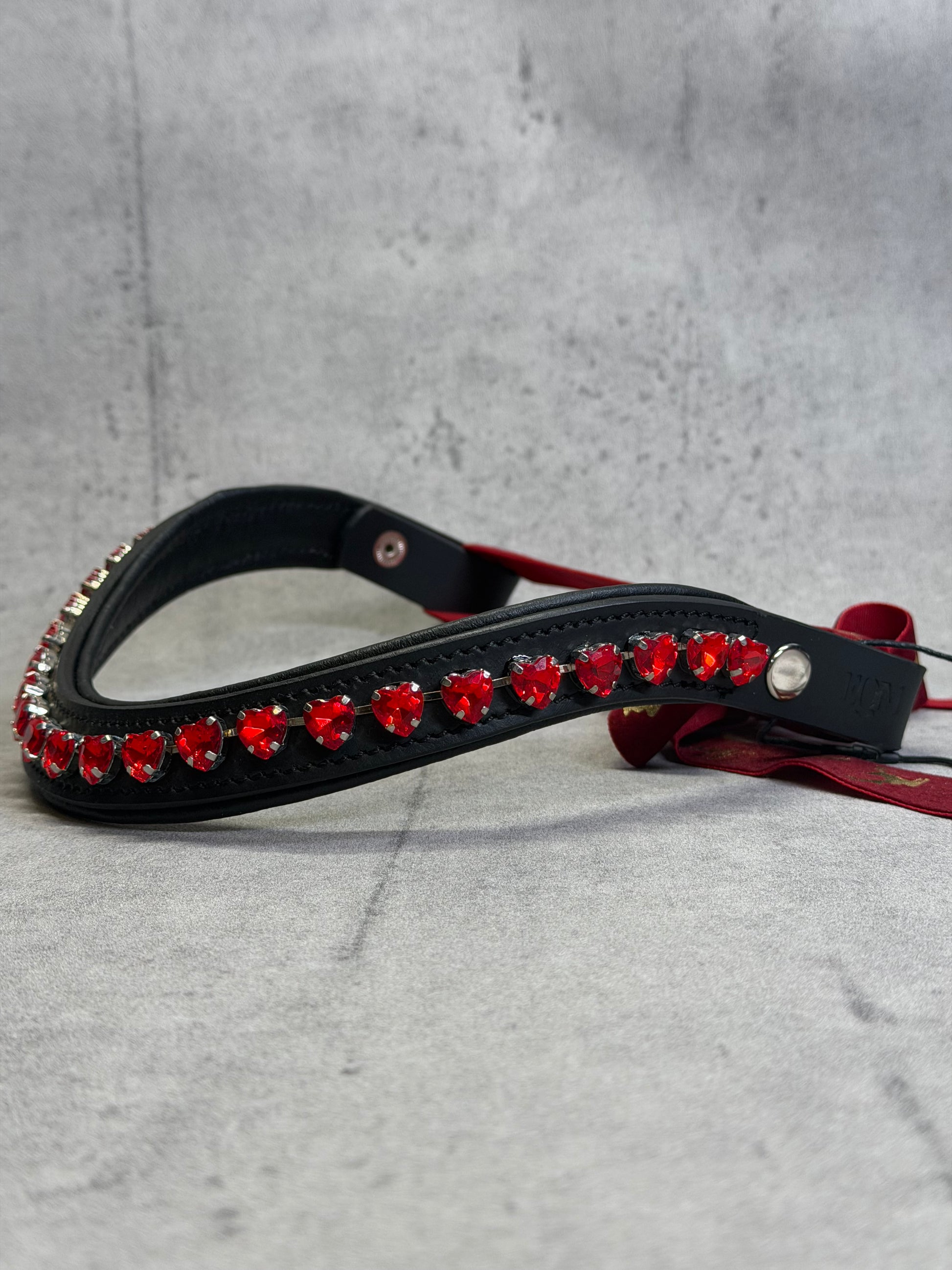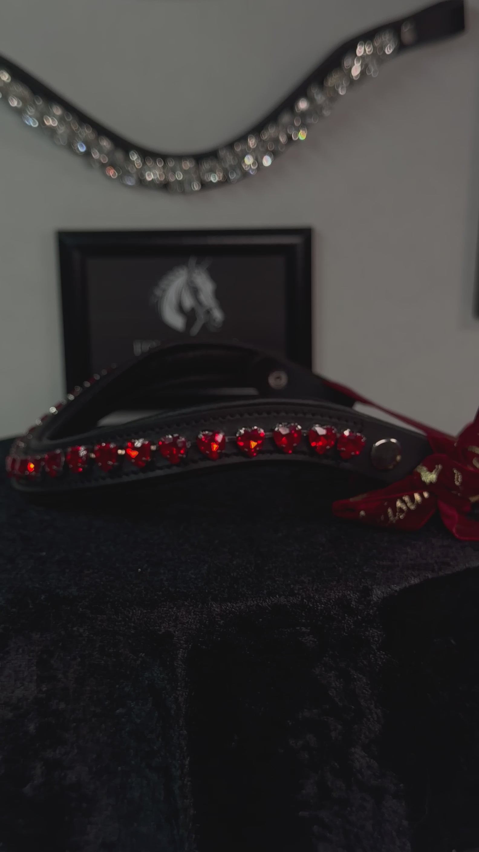 Verleihen Sie Ihrem Pferd einen glamourösen und weihnachtlichen Auftritt mit unserem Stirnriemen "Red Hearts". Die funkelnden Glitzerelemente setzen bezaubernde Akzente, während der praktische Schnellverschluss für mühelose Handhabung sorgt. Ein unverzichtbares Accessoire für stilbewusste Reiter, die Wert auf Eleganz und Funktionalität legen.