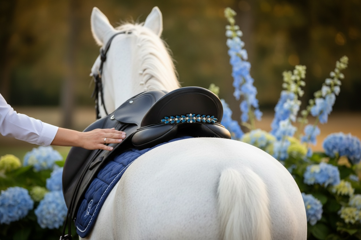 - Sattelschmuck um den hinteren Teil des Sattels führen