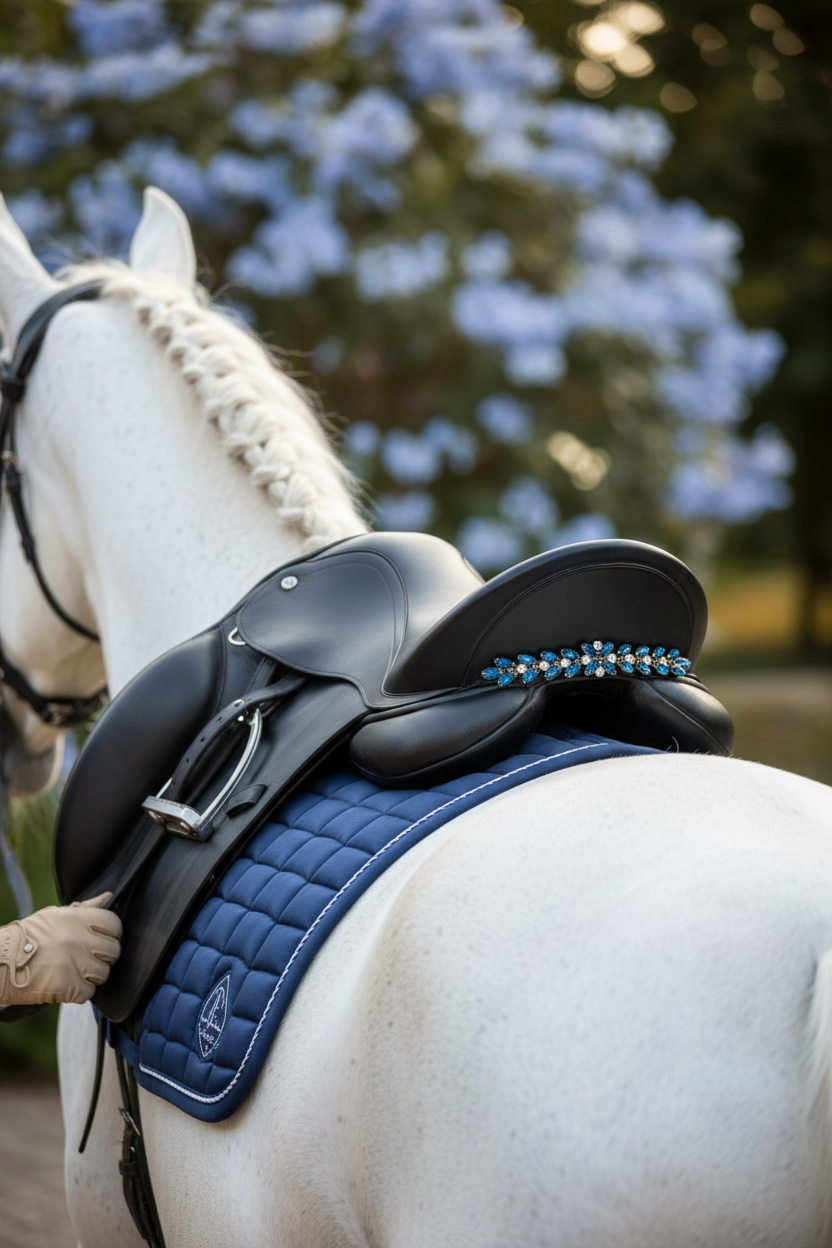 Verleihen Sie Ihrem Sattel mit dem Sattelschmuck einen frischen, individuellen Look! Ob luxuriös oder dezent, dieser Schmuck bringt Farbe in Ihren Alltag. Die verstellbaren Gummibänder passen an viele Sattelmodelle und bieten somit Flexibilität und Stil in einem!