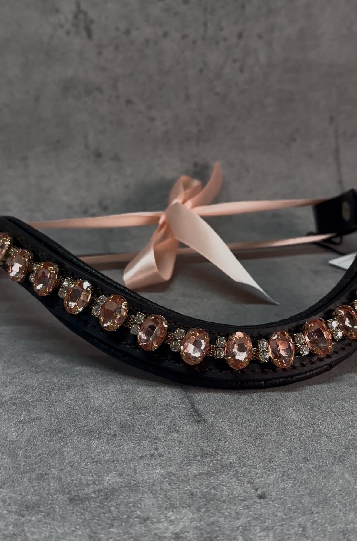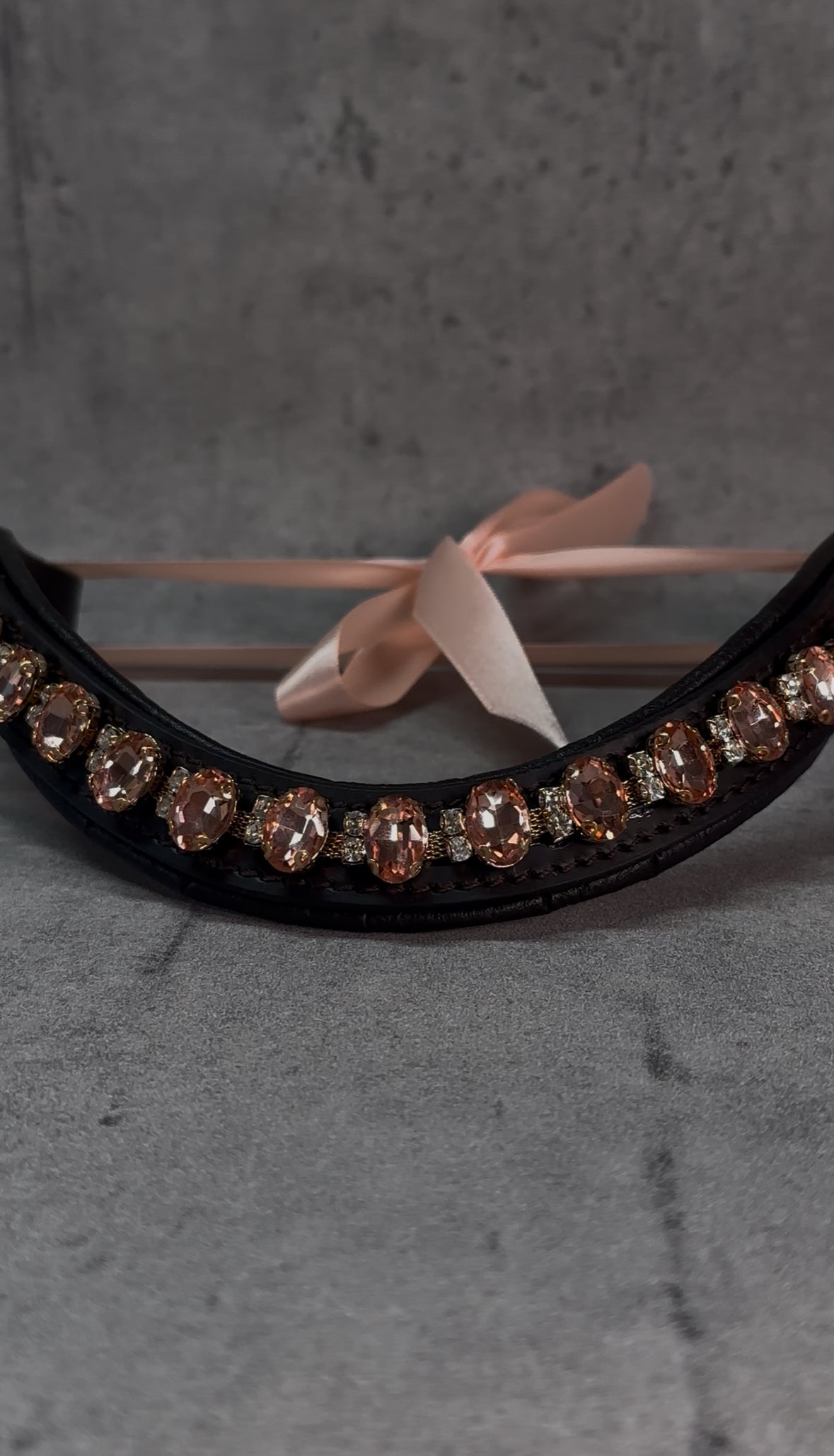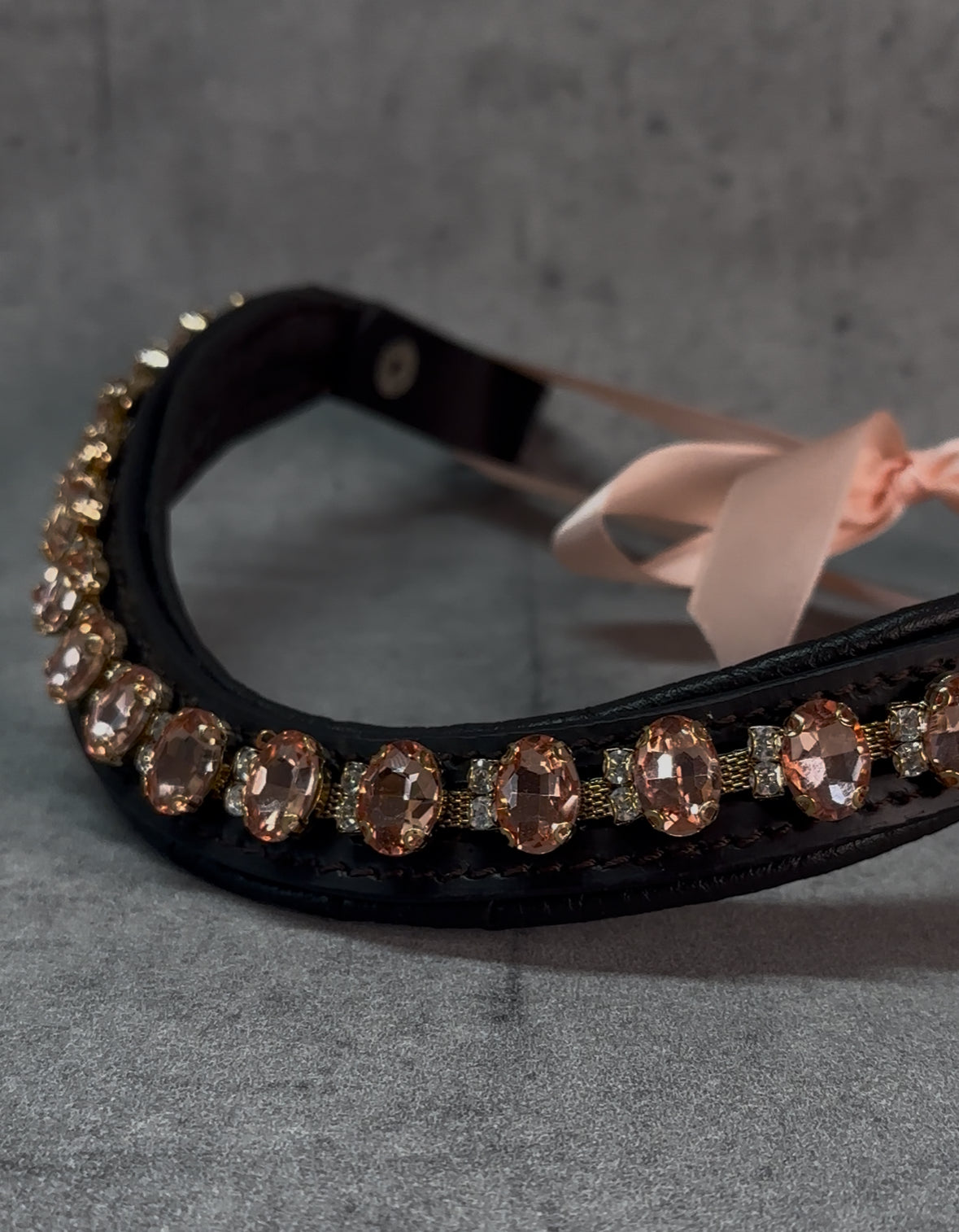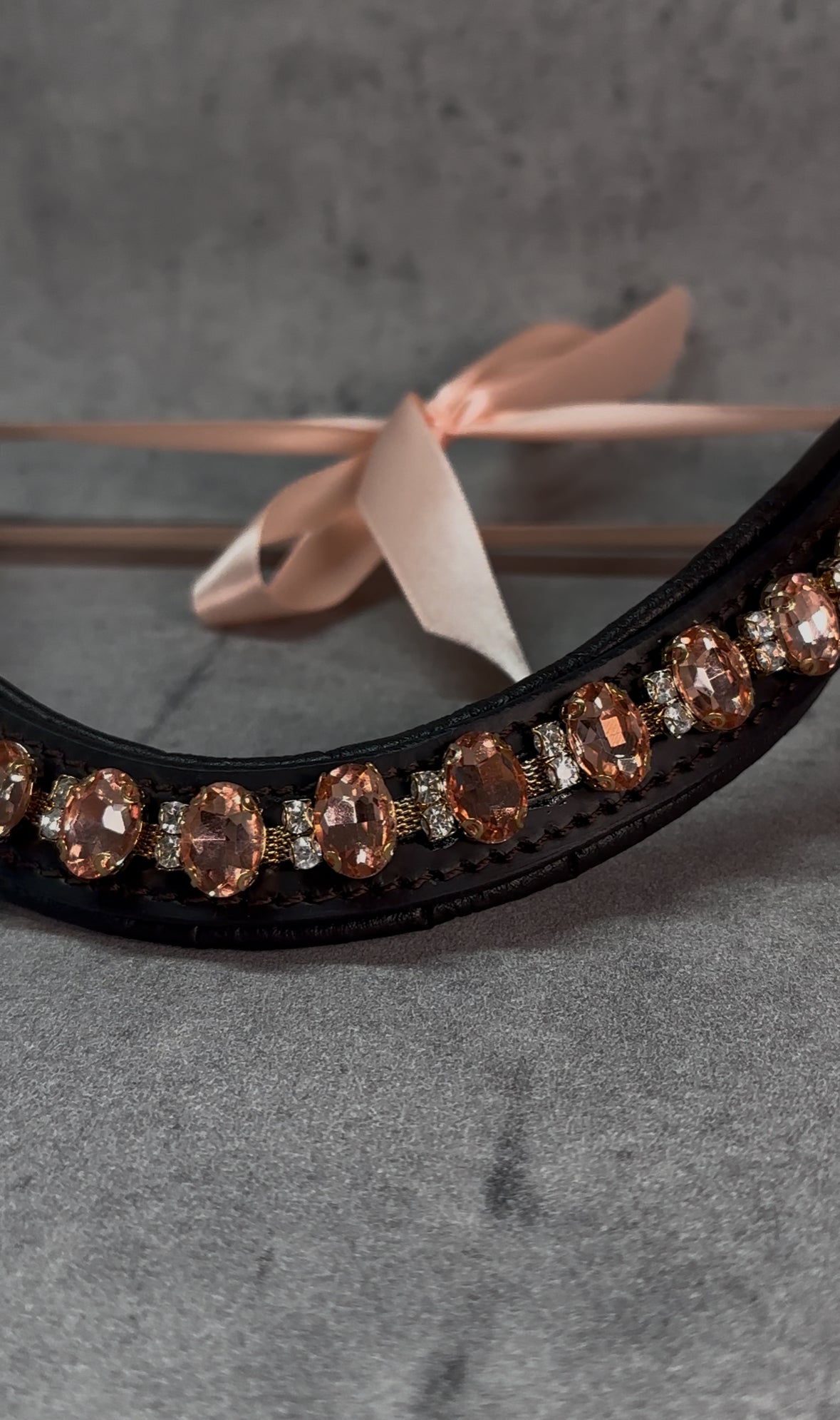 Der Stirnriemen Apricot (hier mit braunem Leder auf den Bildern) begeistert mit seinem strahlenden apricosen Farbenden und filigranen Strasssteinen, die im Licht elegant funkeln. Dank des praktischen Schnellverschlusses sitzt er immer perfekt und lässt sich im Handumdrehen anlegen – so spielst du stilvoll mit deinem Look!