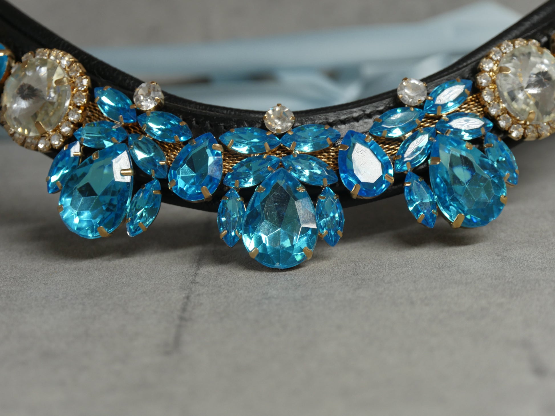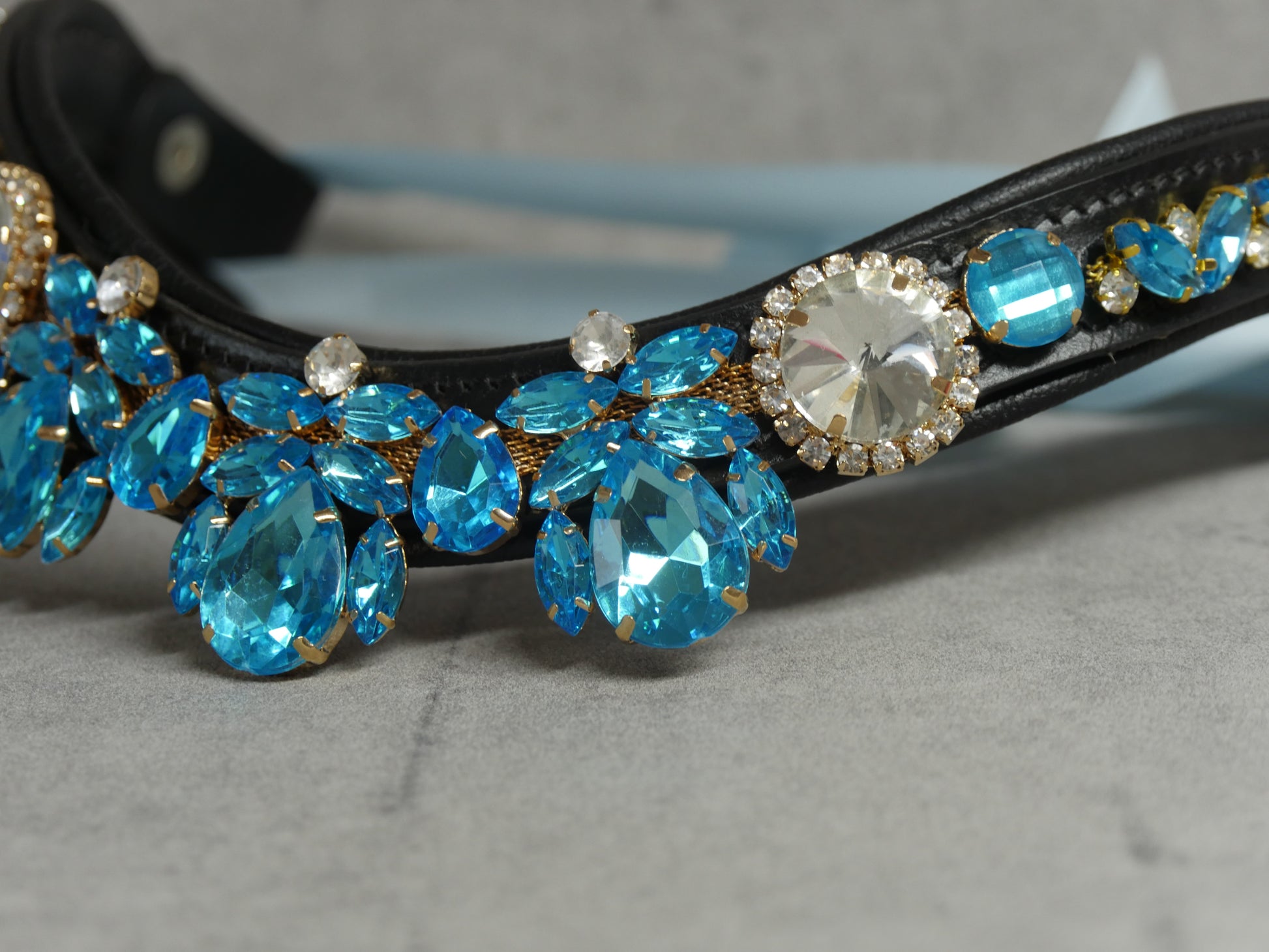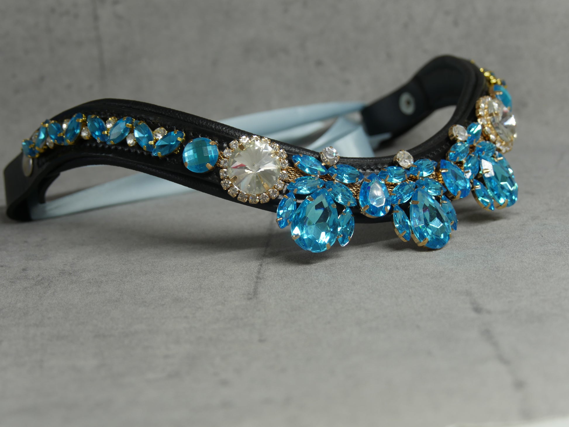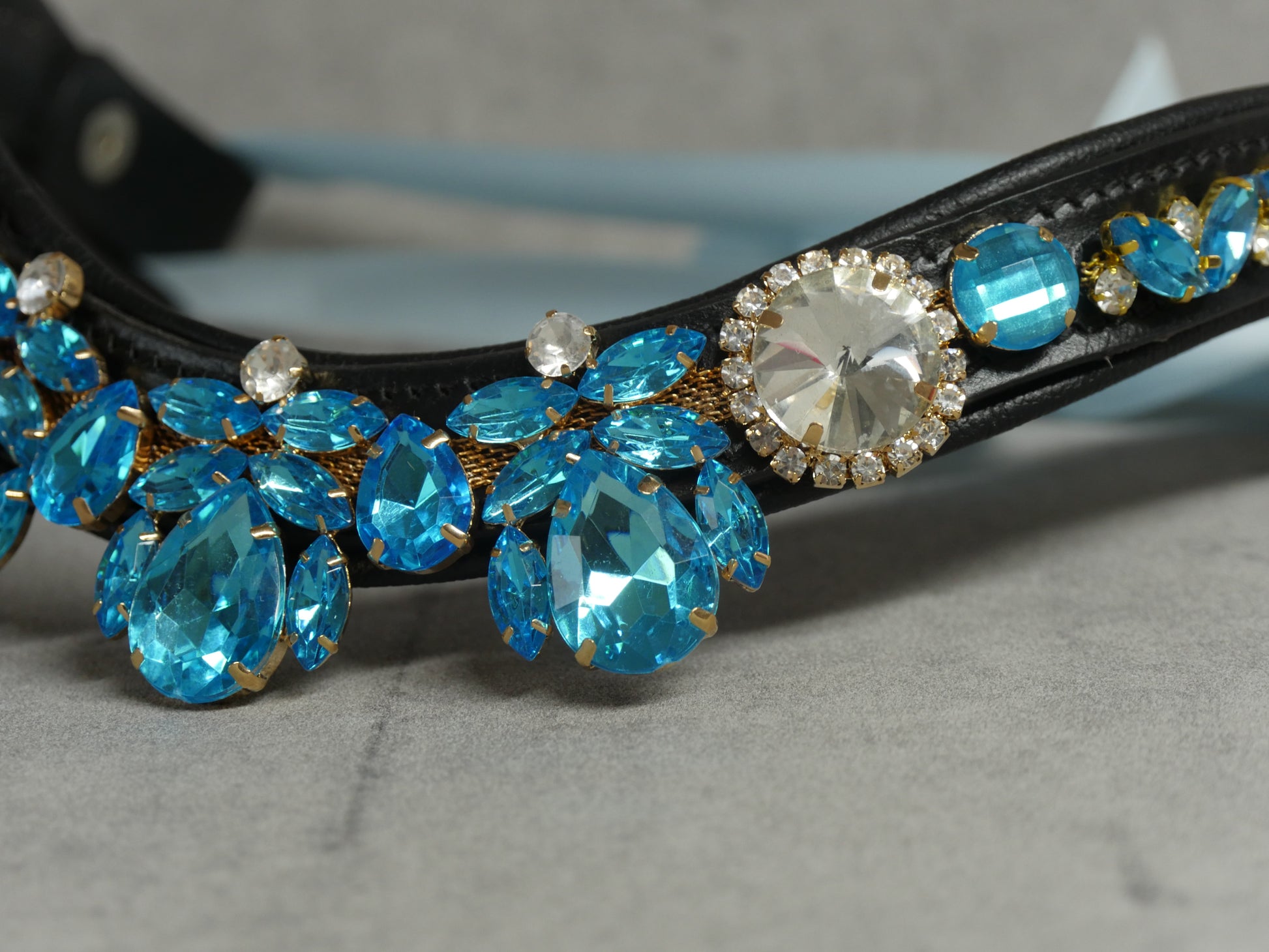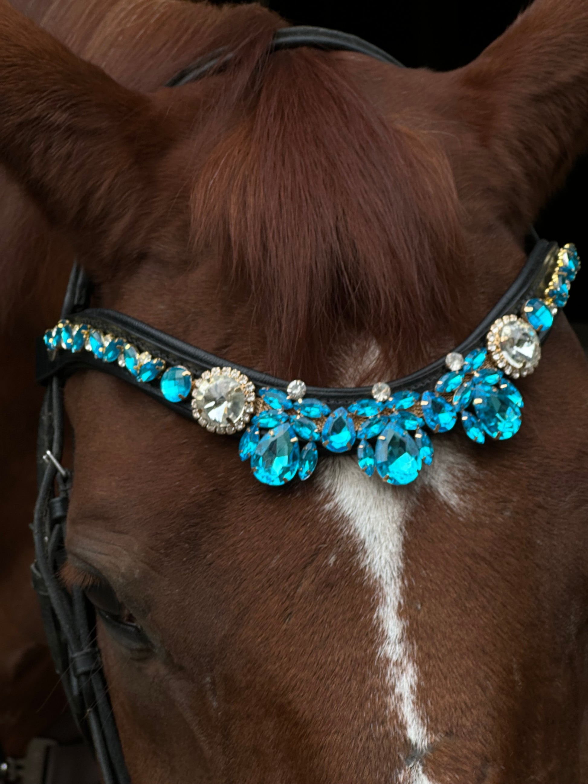 Verleihen Sie Ihrem Pferd einen glamourösen Auftritt mit unserem Stirnriemen "Krone der See". Die funkelnden Glitzerelemente setzen bezaubernde Akzente, während der praktische Schnellverschluss für mühelose Handhabung sorgt. Ein unverzichtbares Accessoire für stilbewusste Reiter, die Wert auf Eleganz und Funktionalität legen.