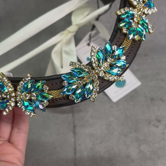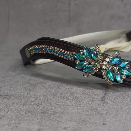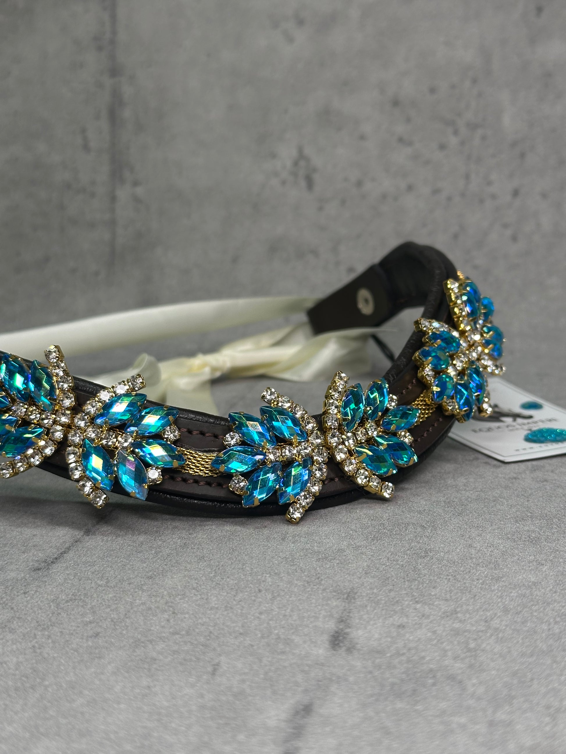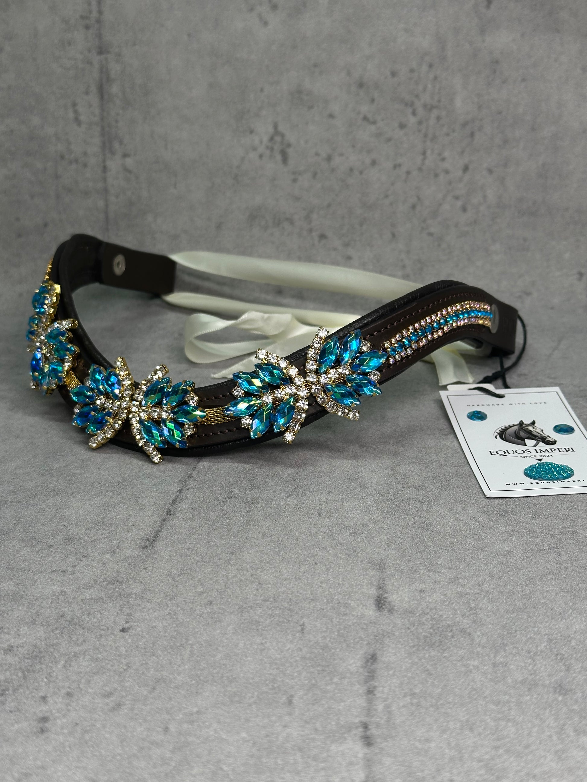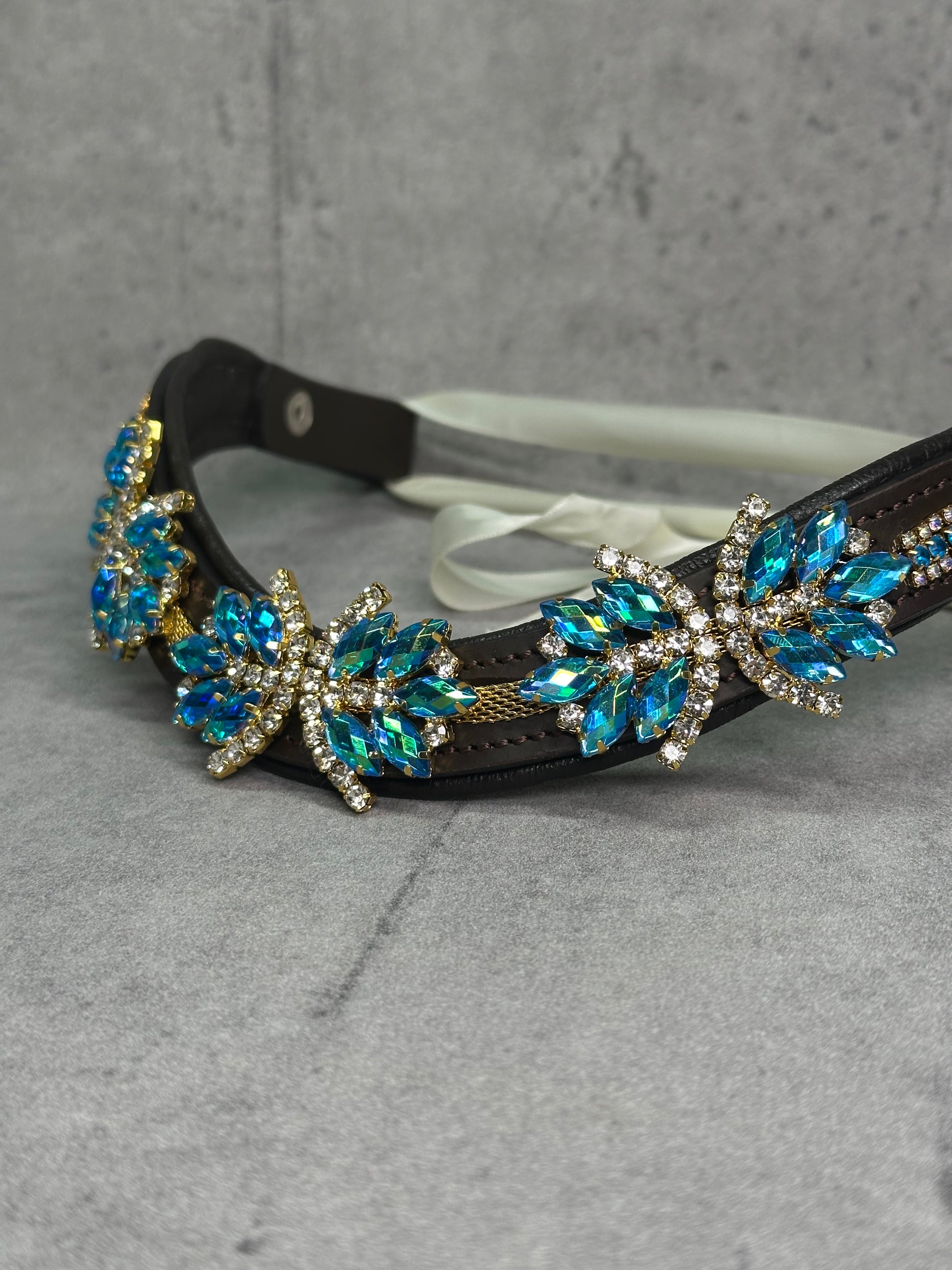 Mit unserem "Bora Bora" Stirnriemen in Pink mit goldenen und blauen Details wird jedes Pferd zum absoluten Hingucker. Die pinke Strasssteinverzierung auf dem braunen Lederband und der praktische Schnellverschluss machen nicht nur optisch, sondern auch beim Anlegen eine tolle Figur. Dein Pferd wird bewundernswert aussehen!