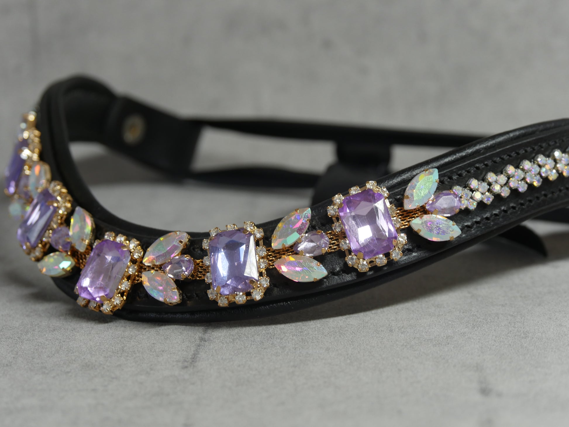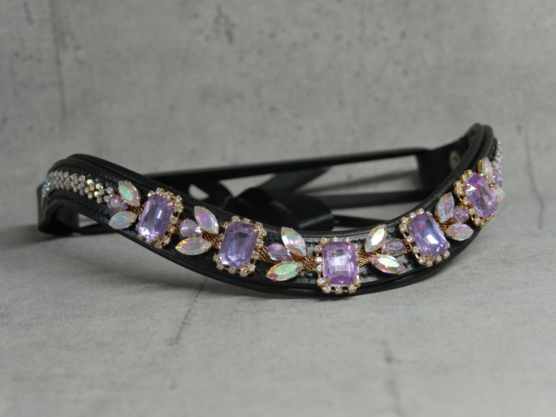 Der Stirnriemen Floral Flieder aus der Floral Kollektion verzaubert mit lila Strassteinen und einem praktischen Schnellverschluss. So wird dein Pferd zum edlen Blickfang – stylisch, unkompliziert und voller Charme! In weiteren Farben verfügbar.