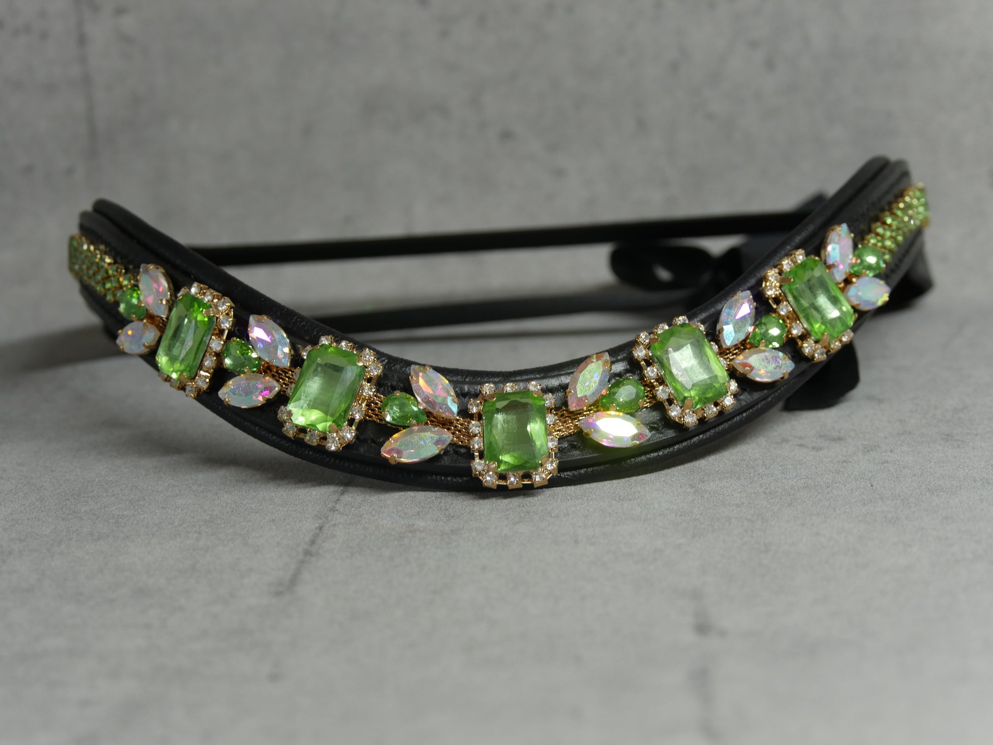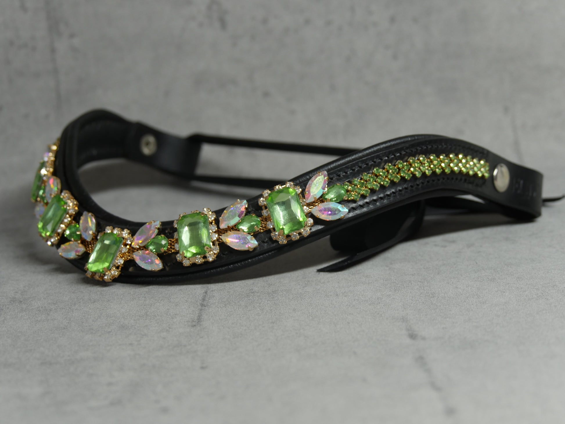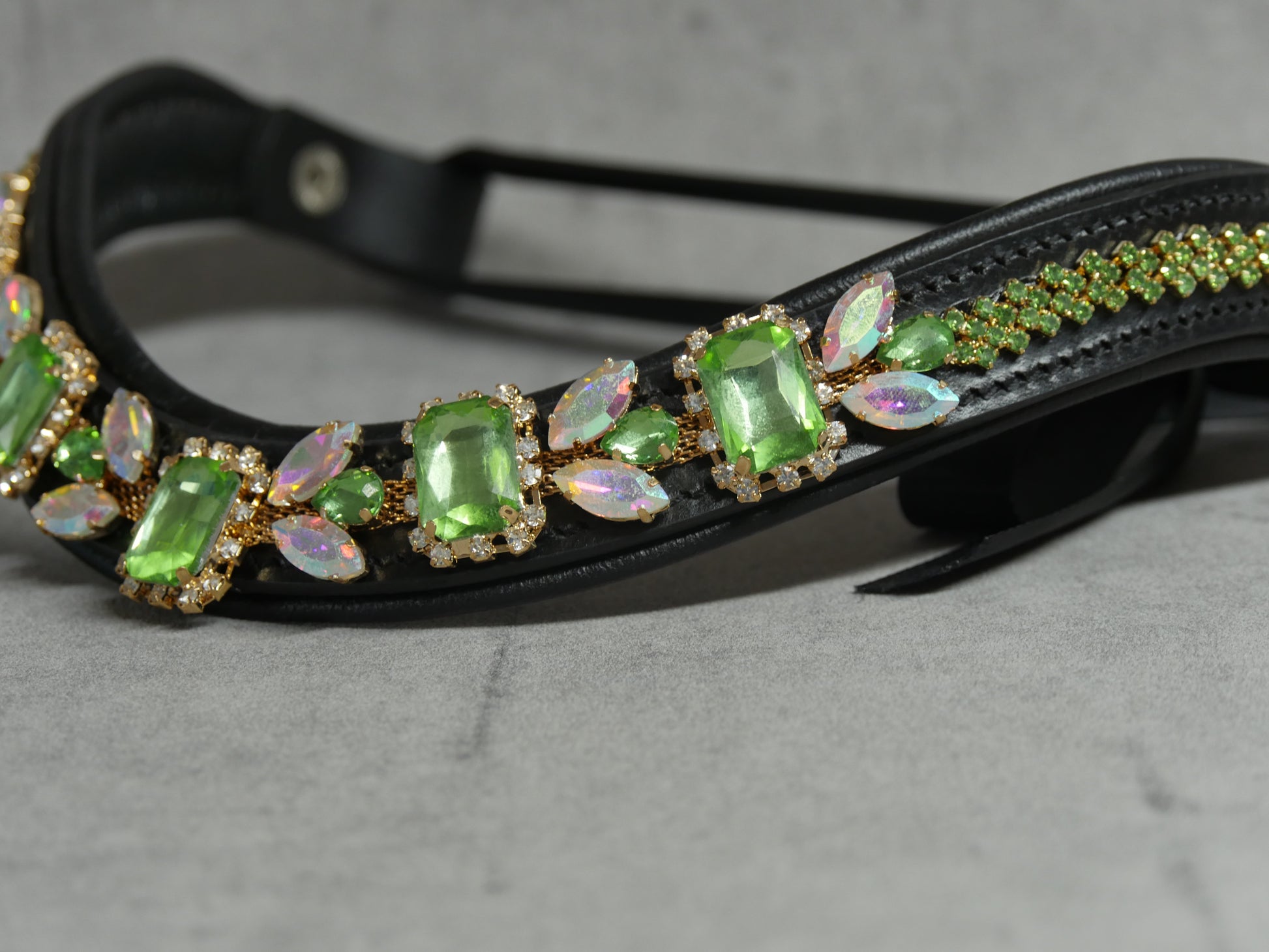 Der Stirnriemen Floral Green aus der Floral Kollektion verzaubert mit grünen Strassteinen und einem praktischen Schnellverschluss. So wird dein Pferd zum edlen Blickfang – stylisch, unkompliziert und voller Charme! In weiteren Farben verfügbar.