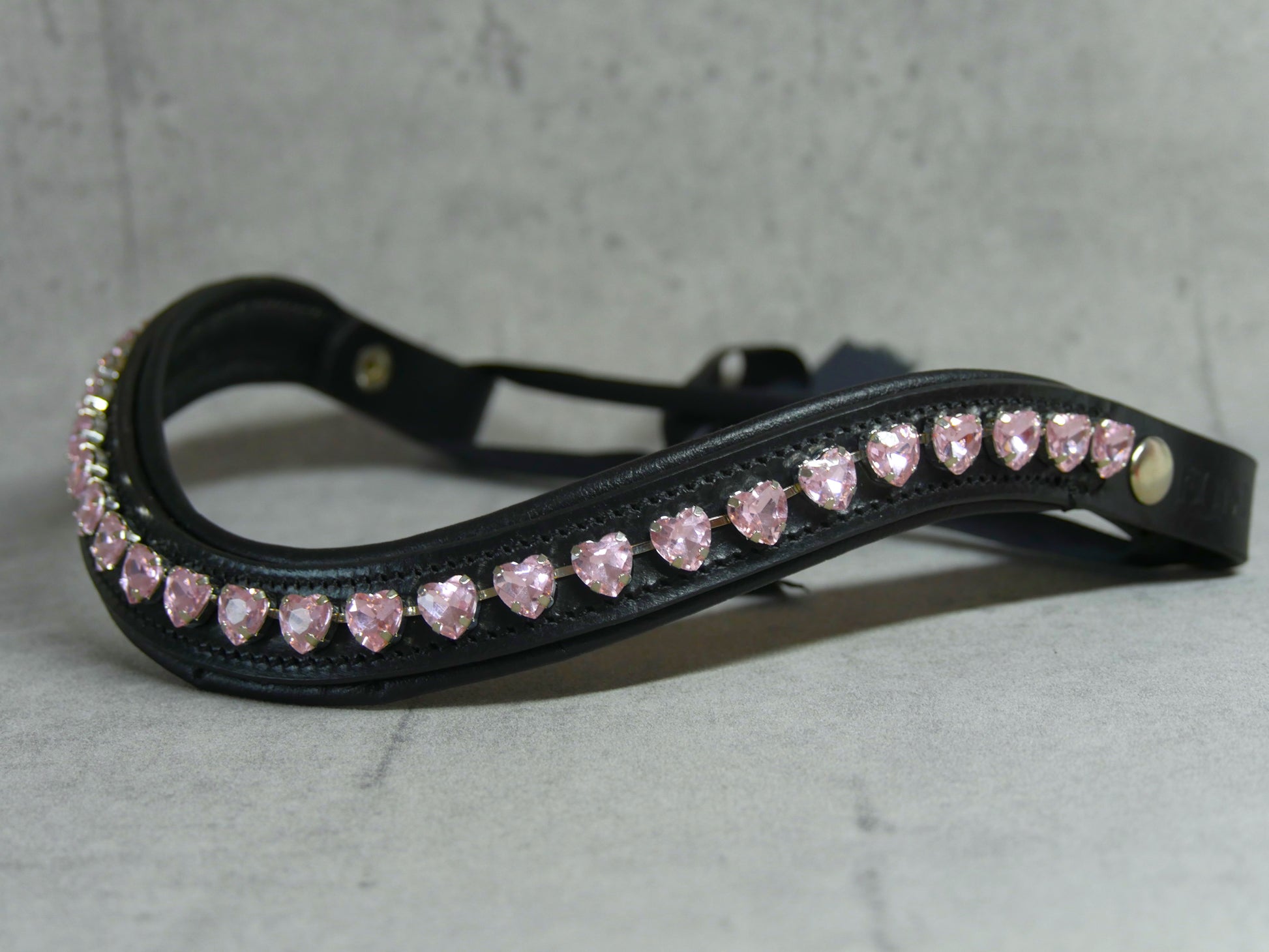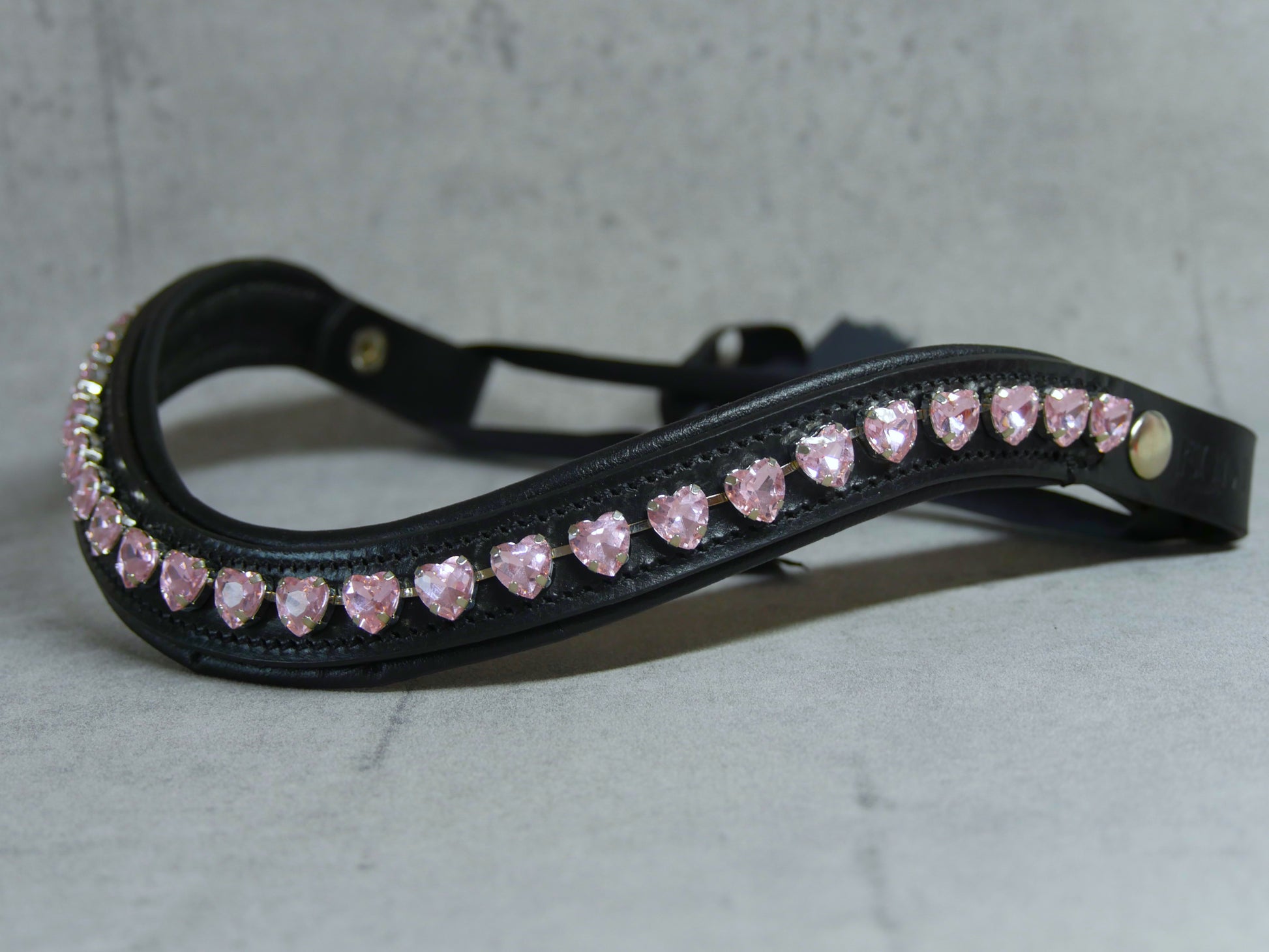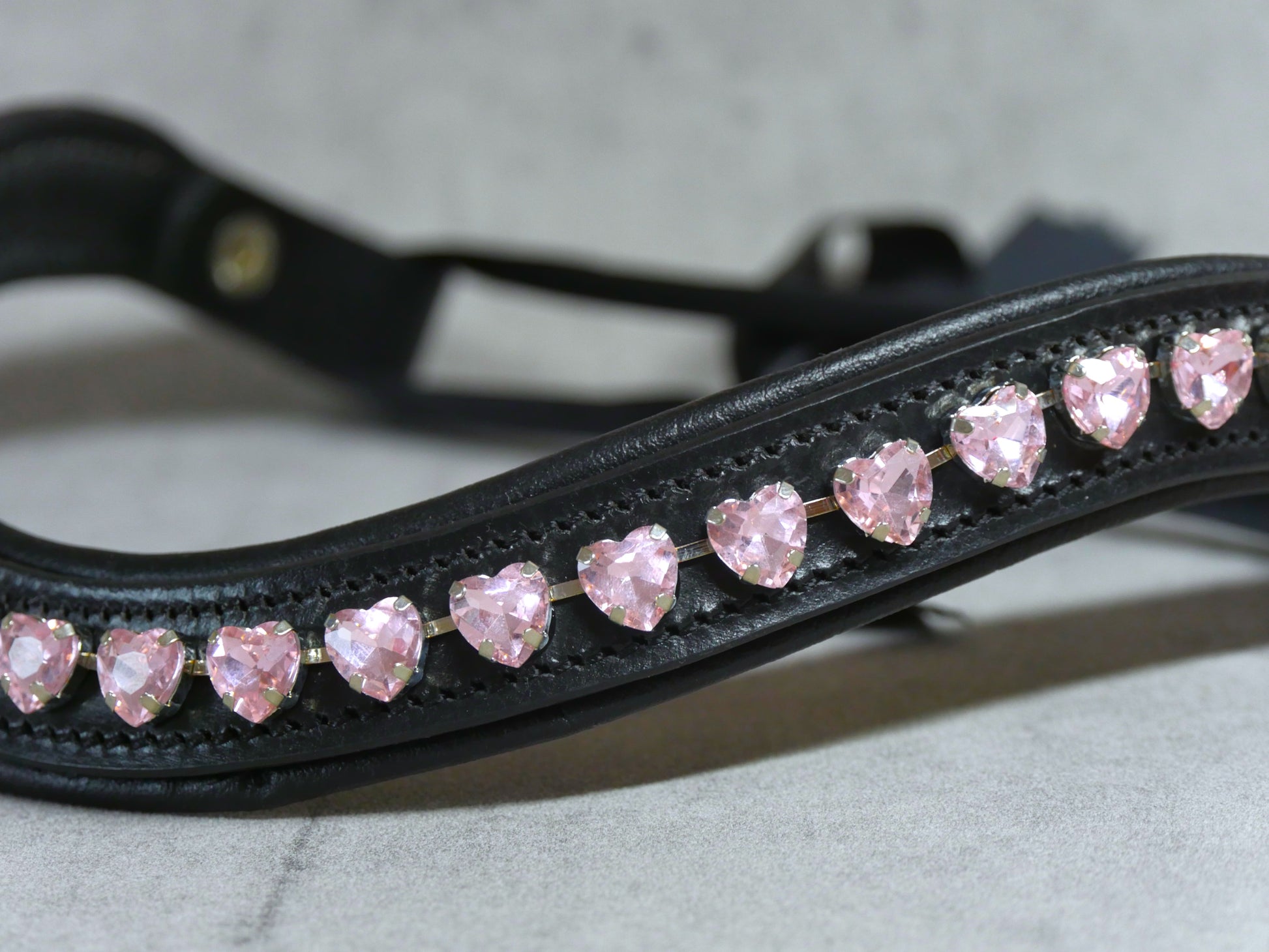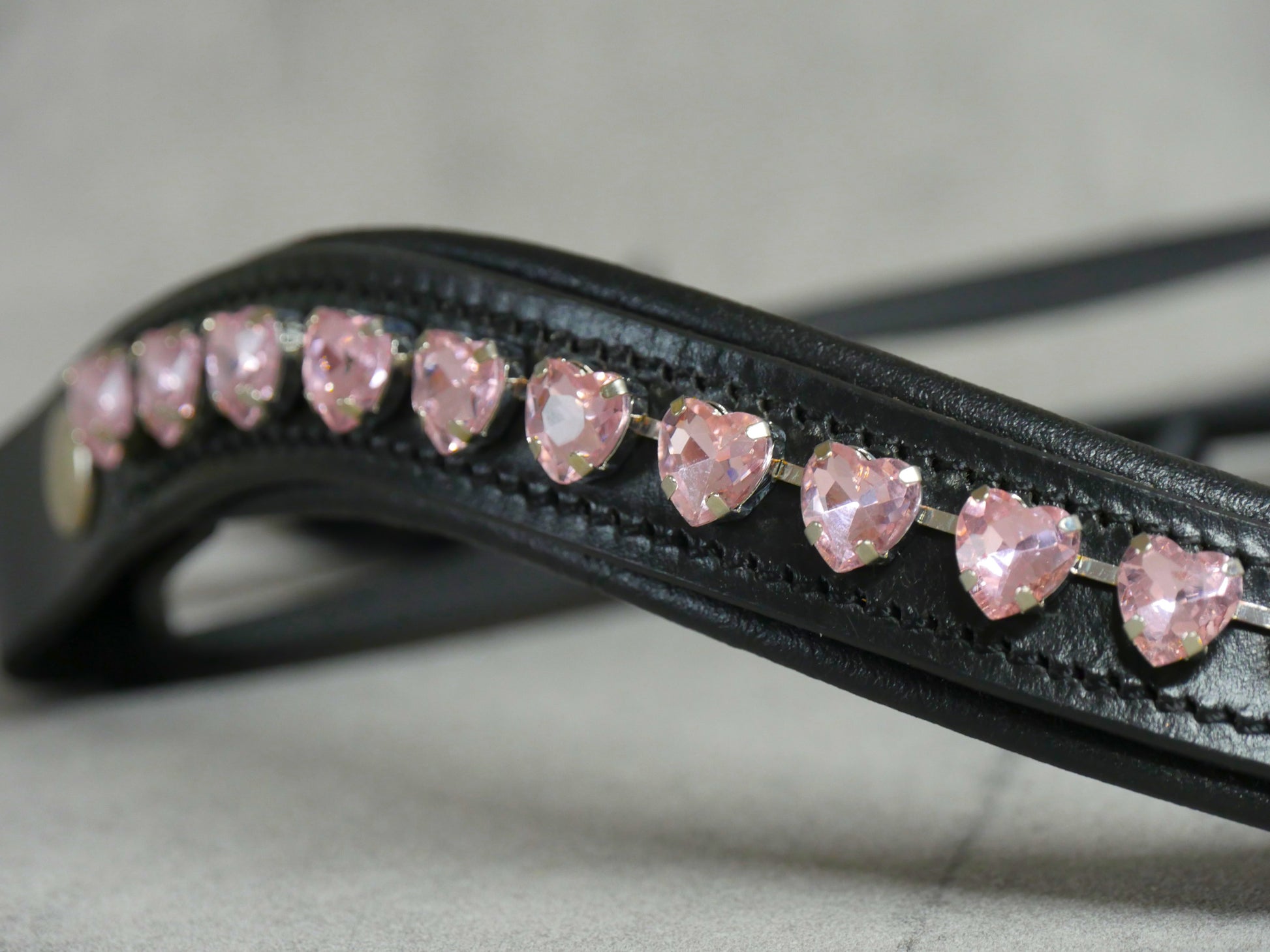 Verleihen Sie Ihrem Pferd einen glamourösen Auftritt mit unserem Stirnriemen "Rosé Hearts". Die funkelnden Glitzerelemente setzen bezaubernde rosane Akzente, während der praktische Schnellverschluss für mühelose Handhabung sorgt. Ein unverzichtbares Accessoire für stilbewusste Reiter, die Wert auf Eleganz und Funktionalität legen.