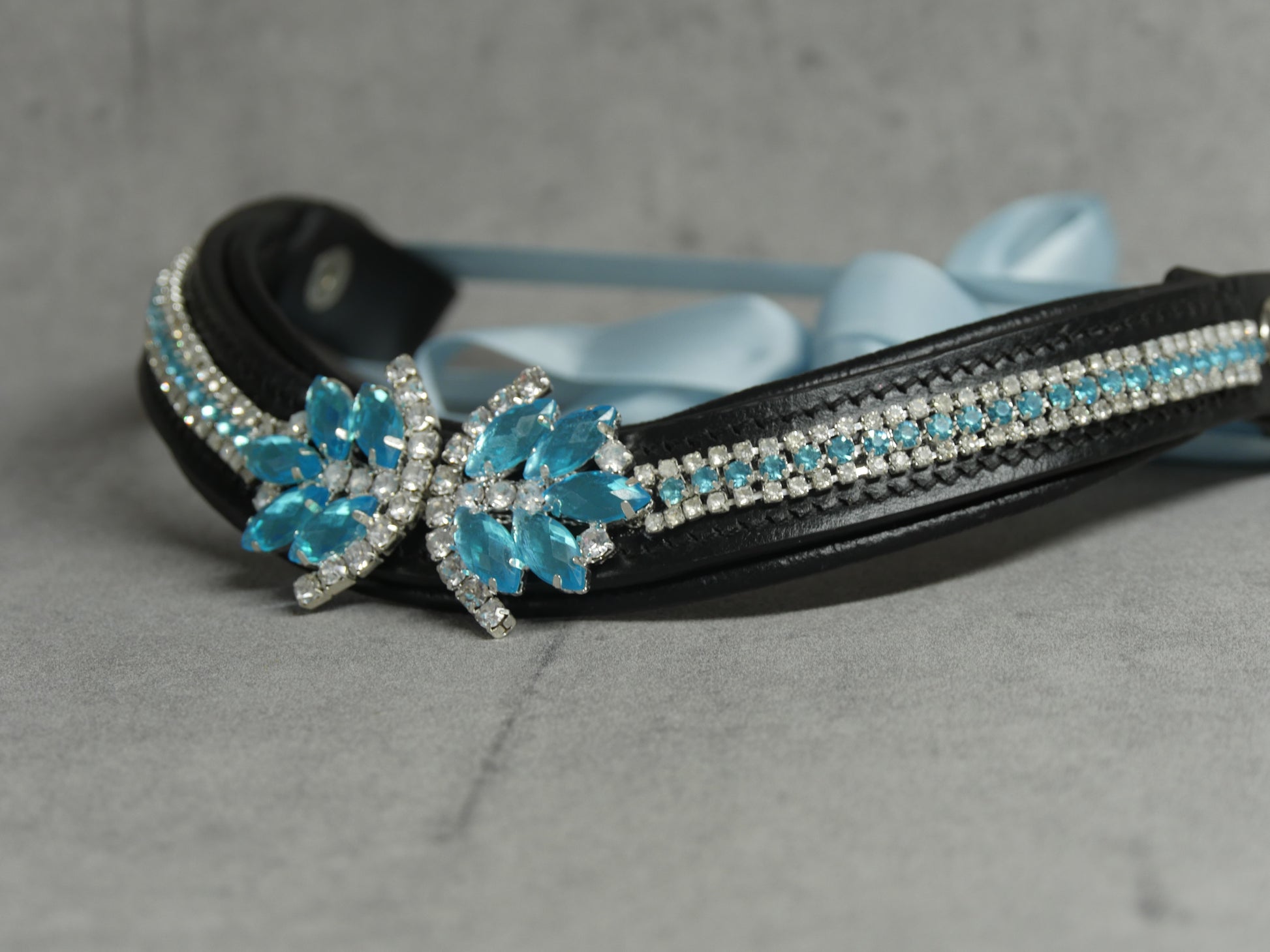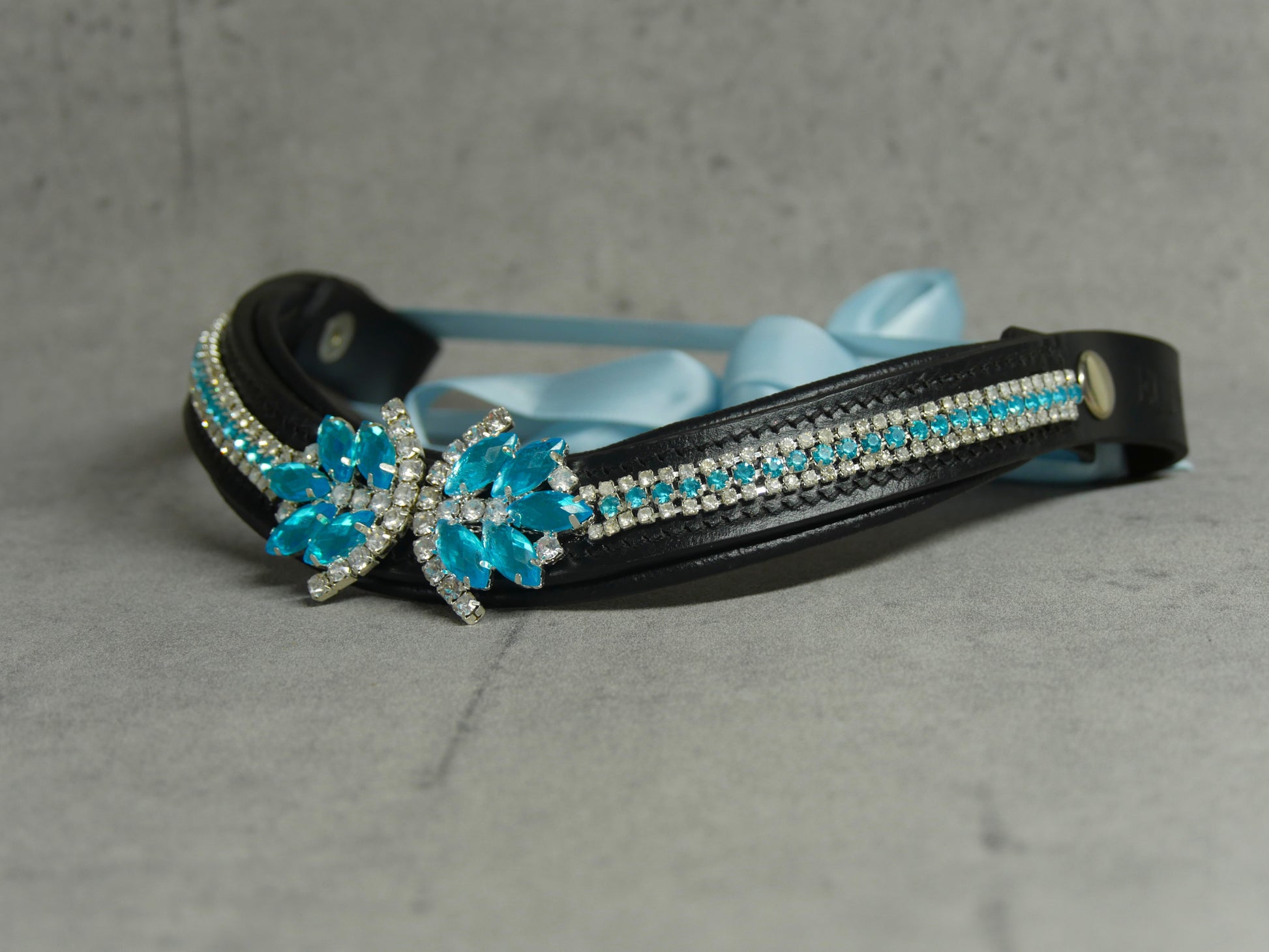Funkeln Sie auf dem Reitplatz mit unserem Stirnriemen Icy! Dieser verspielte Hingucker schmückt Ihr Pferd mit schillernden Strasssteinen in blauen Farben. Dank des praktischen Schnellverschlusses ist er im Nu angelegt – weniger Fummelei, mehr Reitvergnügen! Ihr Pferd wird strahlen, und Sie auch.