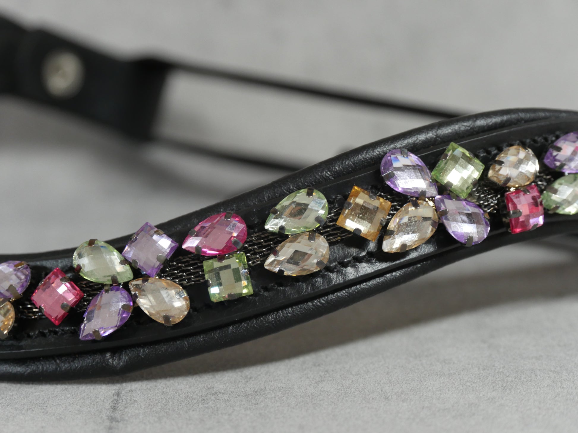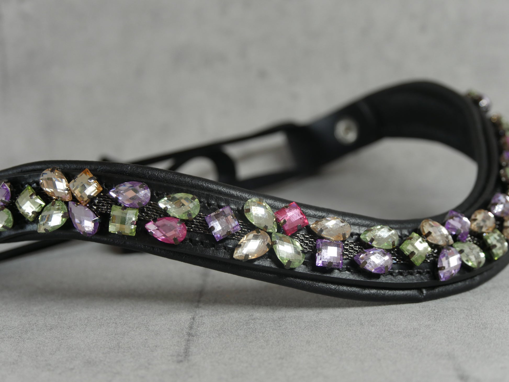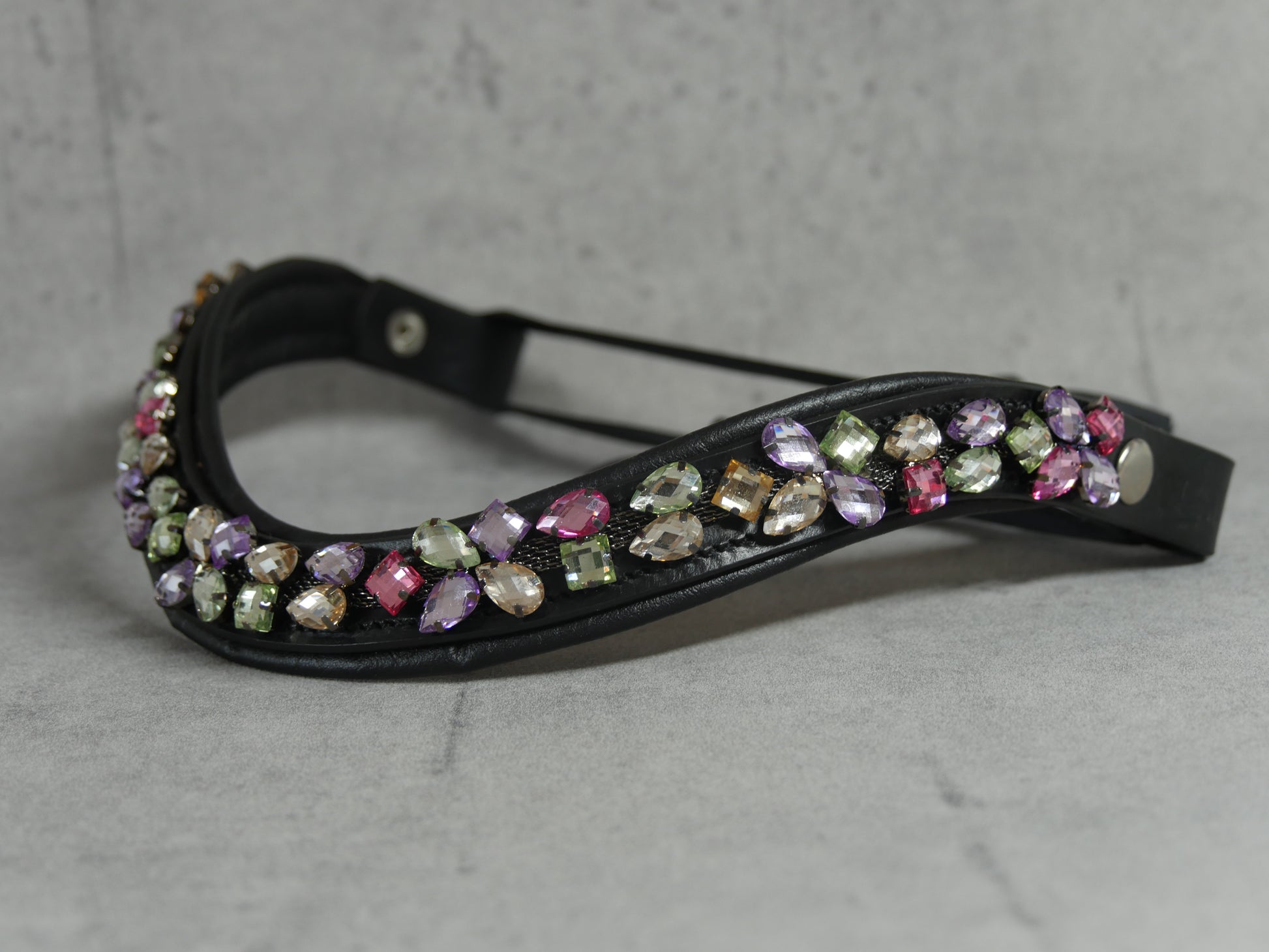 Der Stirnriemen Showtime vereint luxuriöse Eleganz mit funkelnden bunten Strasssteinen auf einem hochwertigen Lederband. Dank des praktischen Schnellverschlusses lässt er sich mühelos anlegen und garantiert einen sicheren, bequemen Sitz – das perfekte Accessoire für stilbewusste Pferdefreunde.