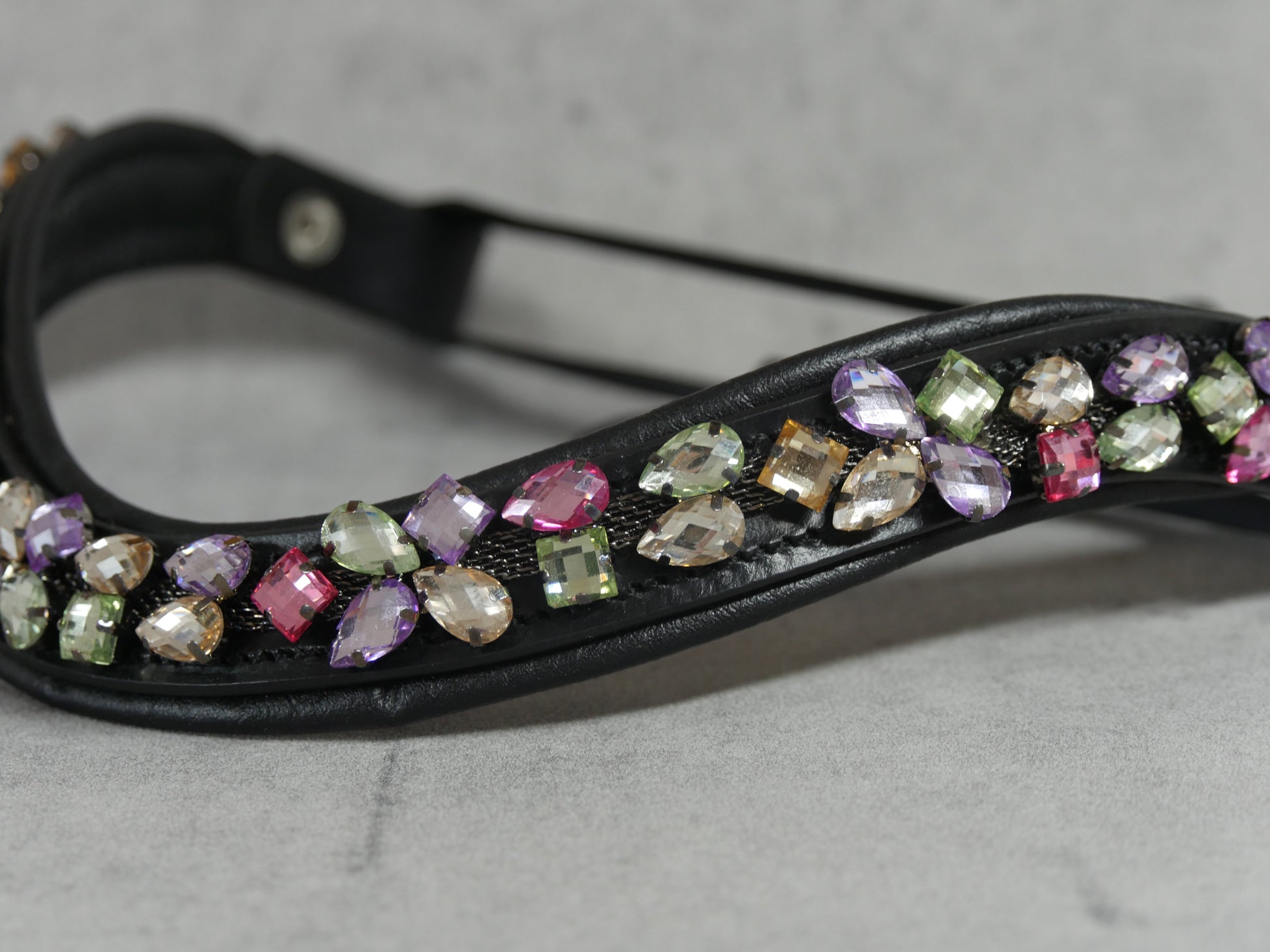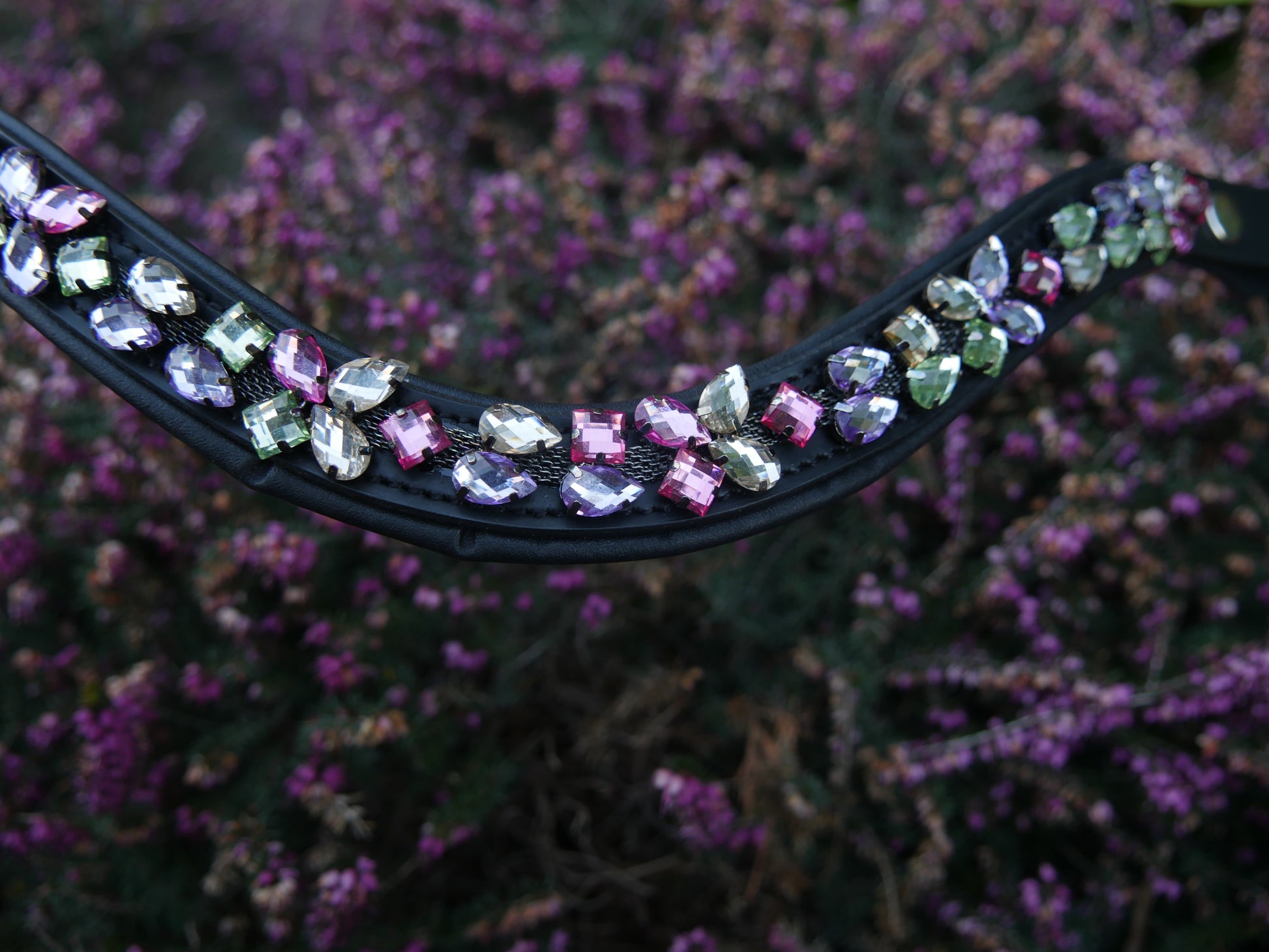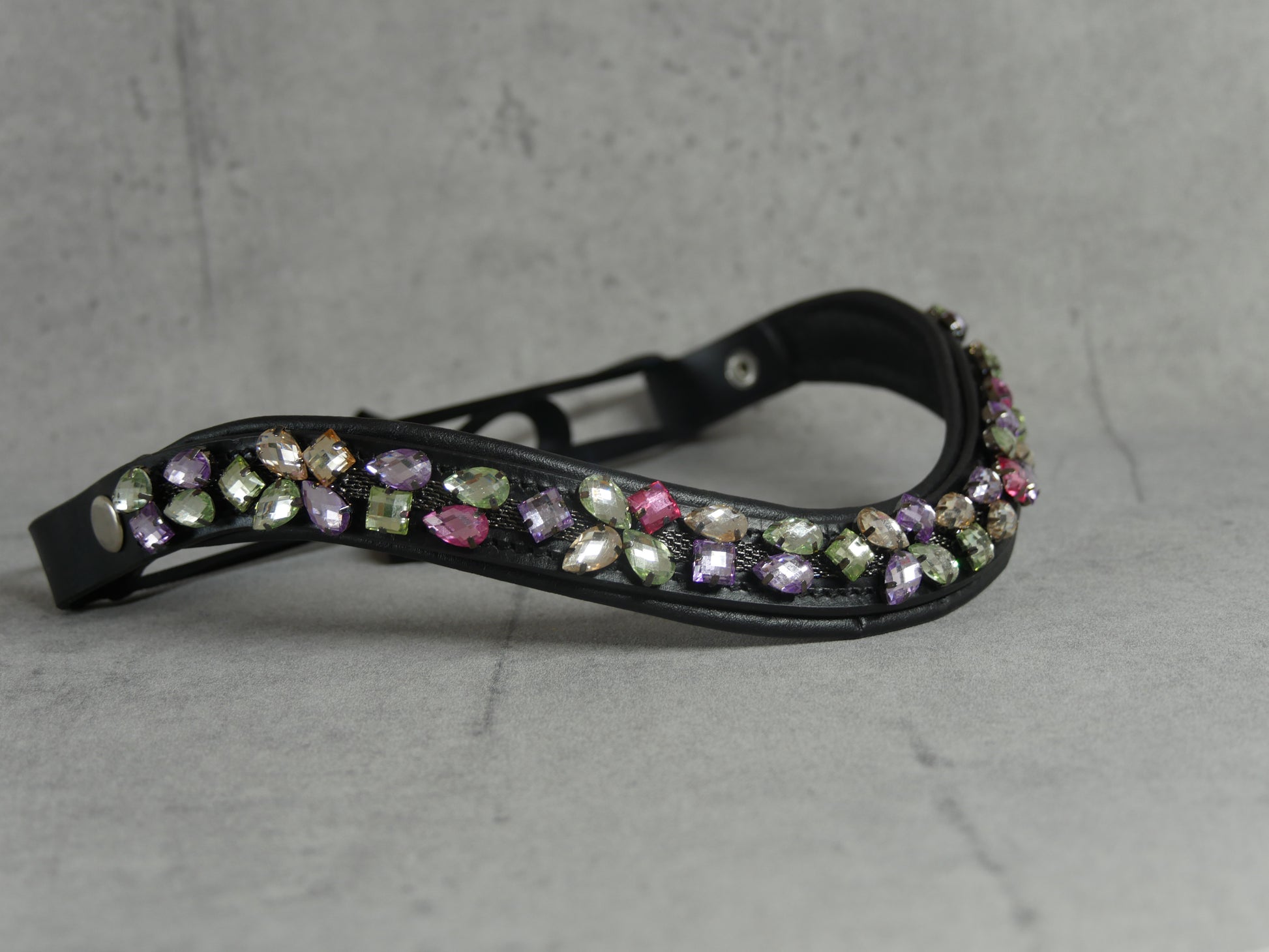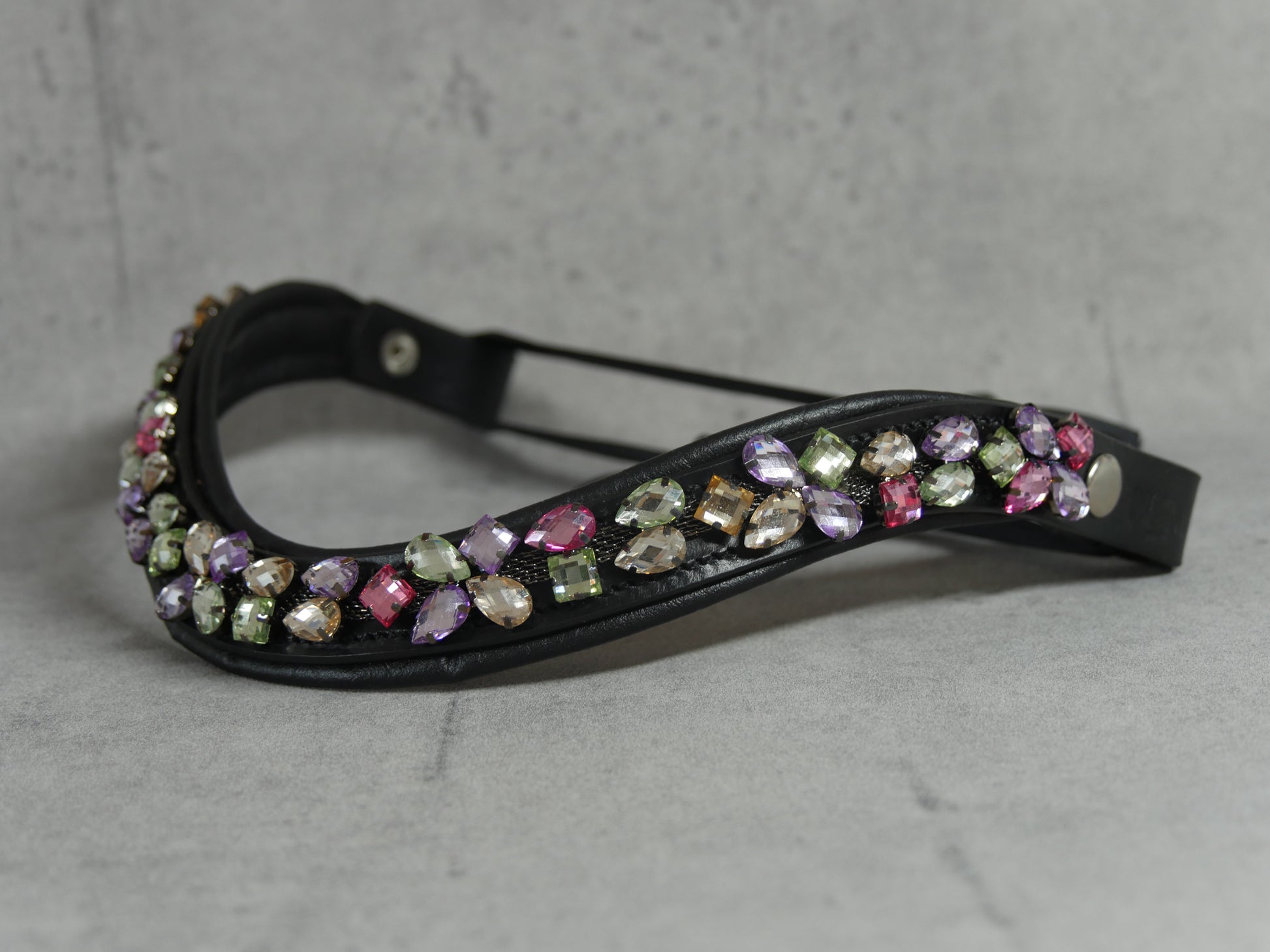 Der Stirnriemen Showtime vereint luxuriöse Eleganz mit funkelnden bunten Strasssteinen auf einem hochwertigen Lederband. Dank des praktischen Schnellverschlusses lässt er sich mühelos anlegen und garantiert einen sicheren, bequemen Sitz – das perfekte Accessoire für stilbewusste Pferdefreunde.