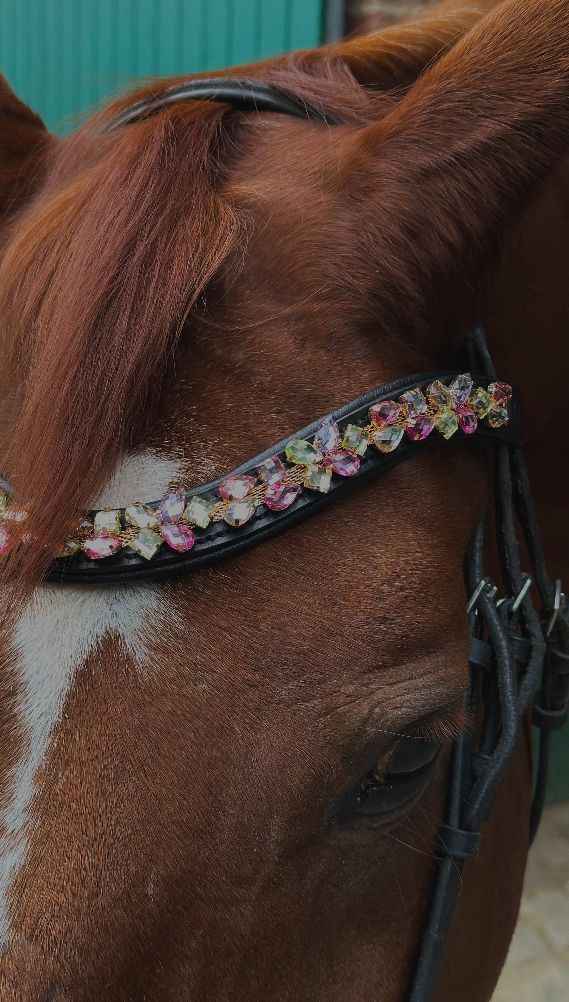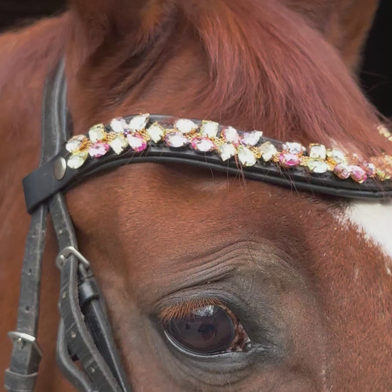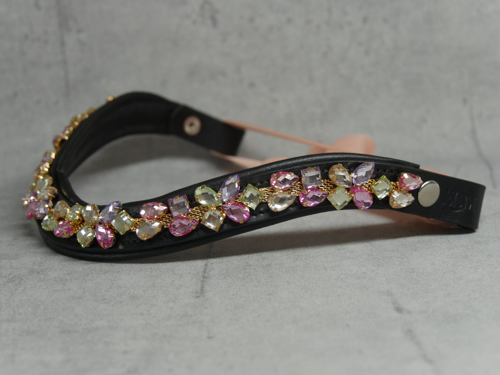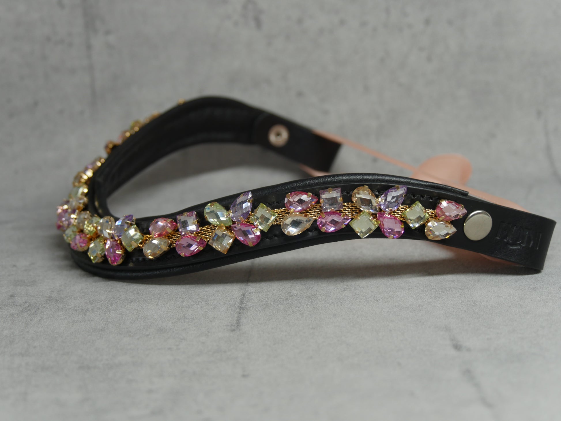 Der Stirnriemen Showtime vereint luxuriöse Eleganz mit funkelnden bunten Strasssteinen auf einem hochwertigen Lederband. Dank des praktischen Schnellverschlusses lässt er sich mühelos anlegen und garantiert einen sicheren, bequemen Sitz – das perfekte Accessoire für stilbewusste Pferdefreunde.