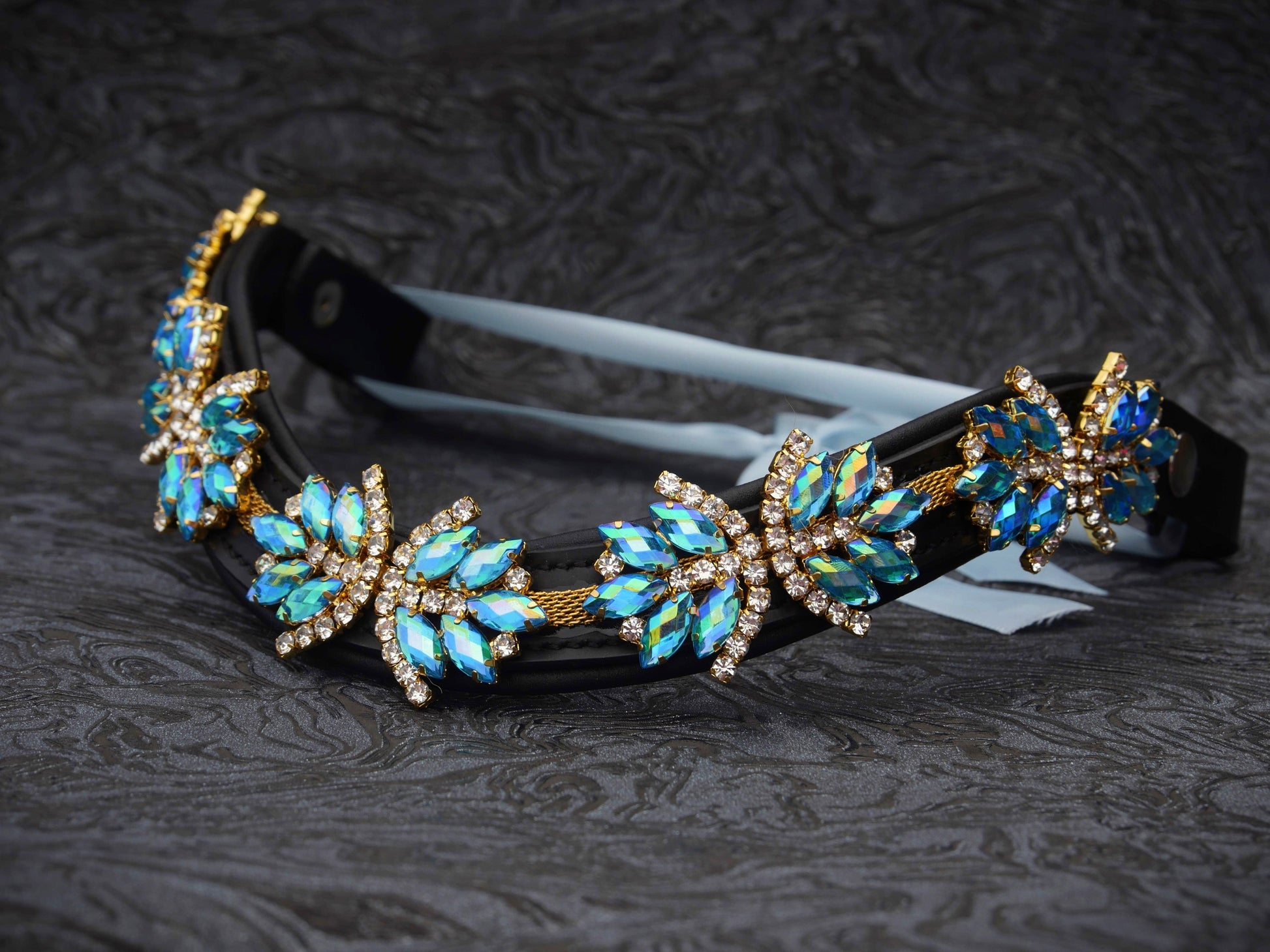 Unser "Superstar" Stirnriemen in strahlendem Hellblau mit silbernen und goldenen Highlights ist der Hingucker schlechthin für jedes Pferd. Die blauen Glitzer Strasssteine auf dem schwarzen Lederband und der praktische Schnellverschluss sorgen nicht nur für eine tolle Optik, sondern machen auch beim Anlegen eine super Figur. Dein Pferd wird einfach bewundernswert aussehen!