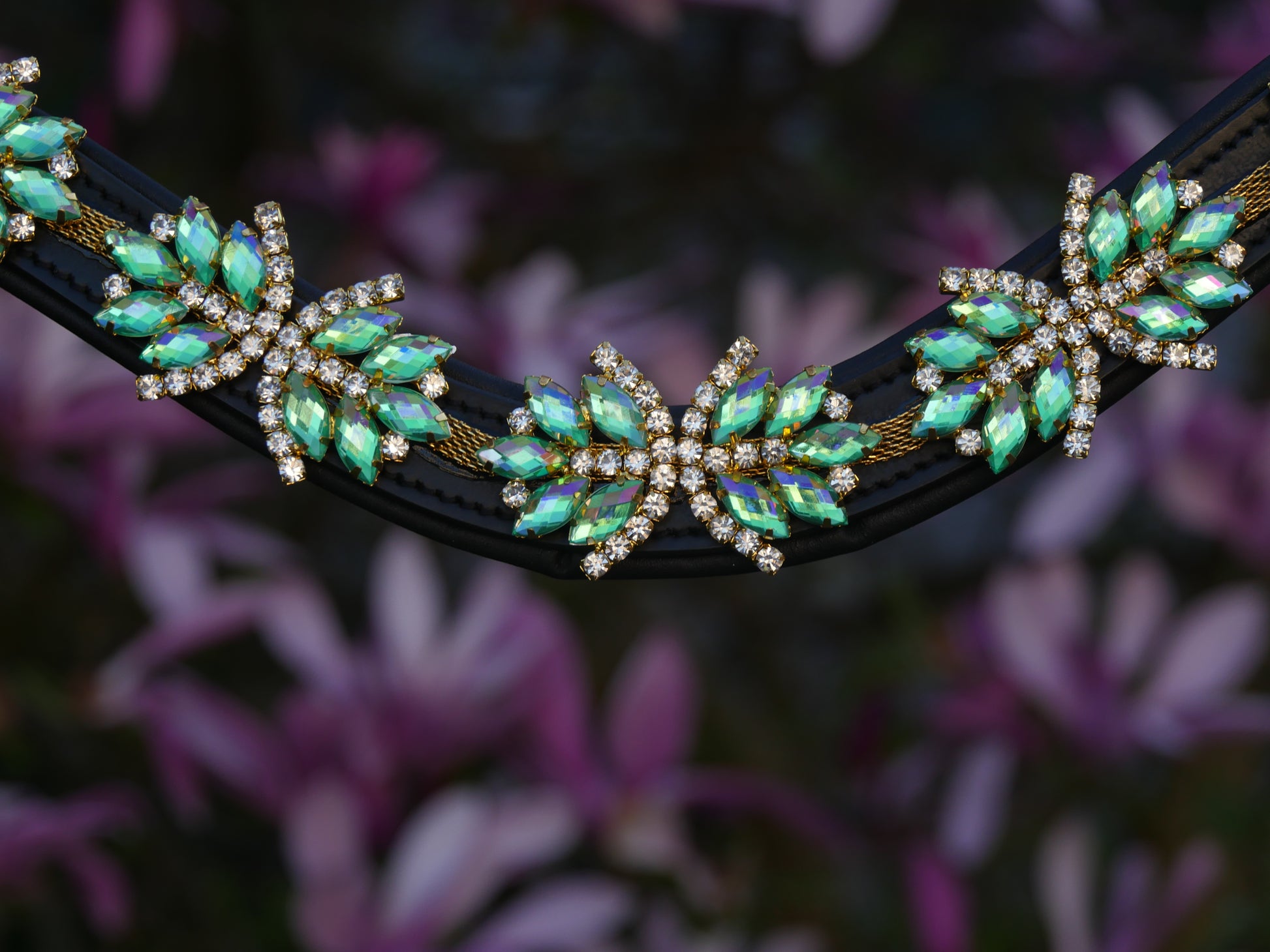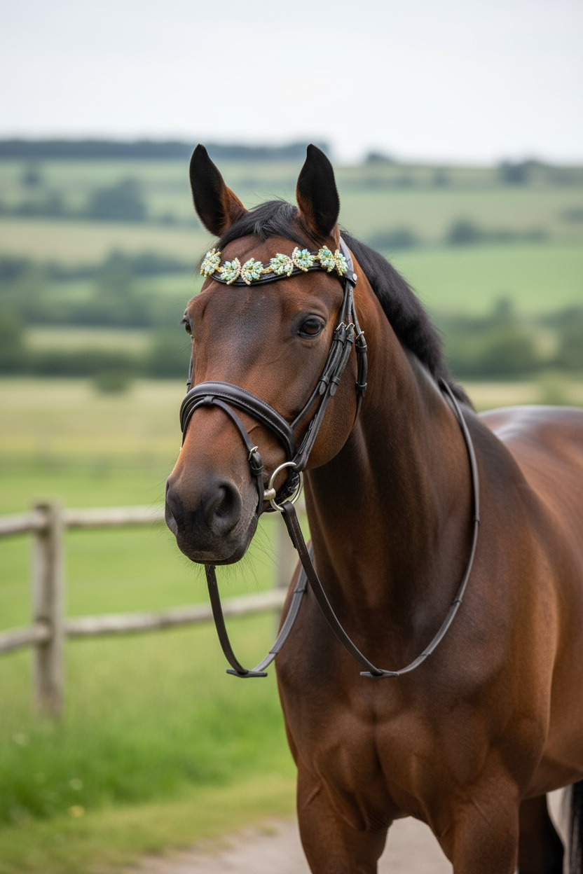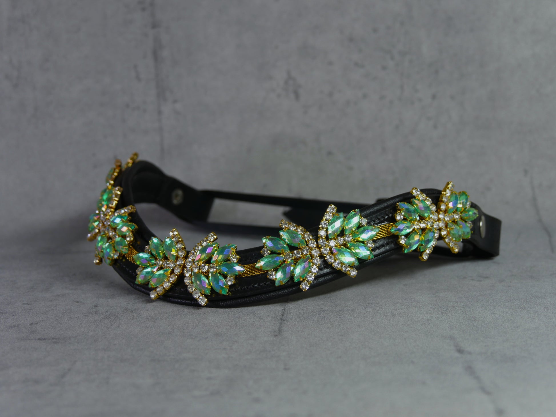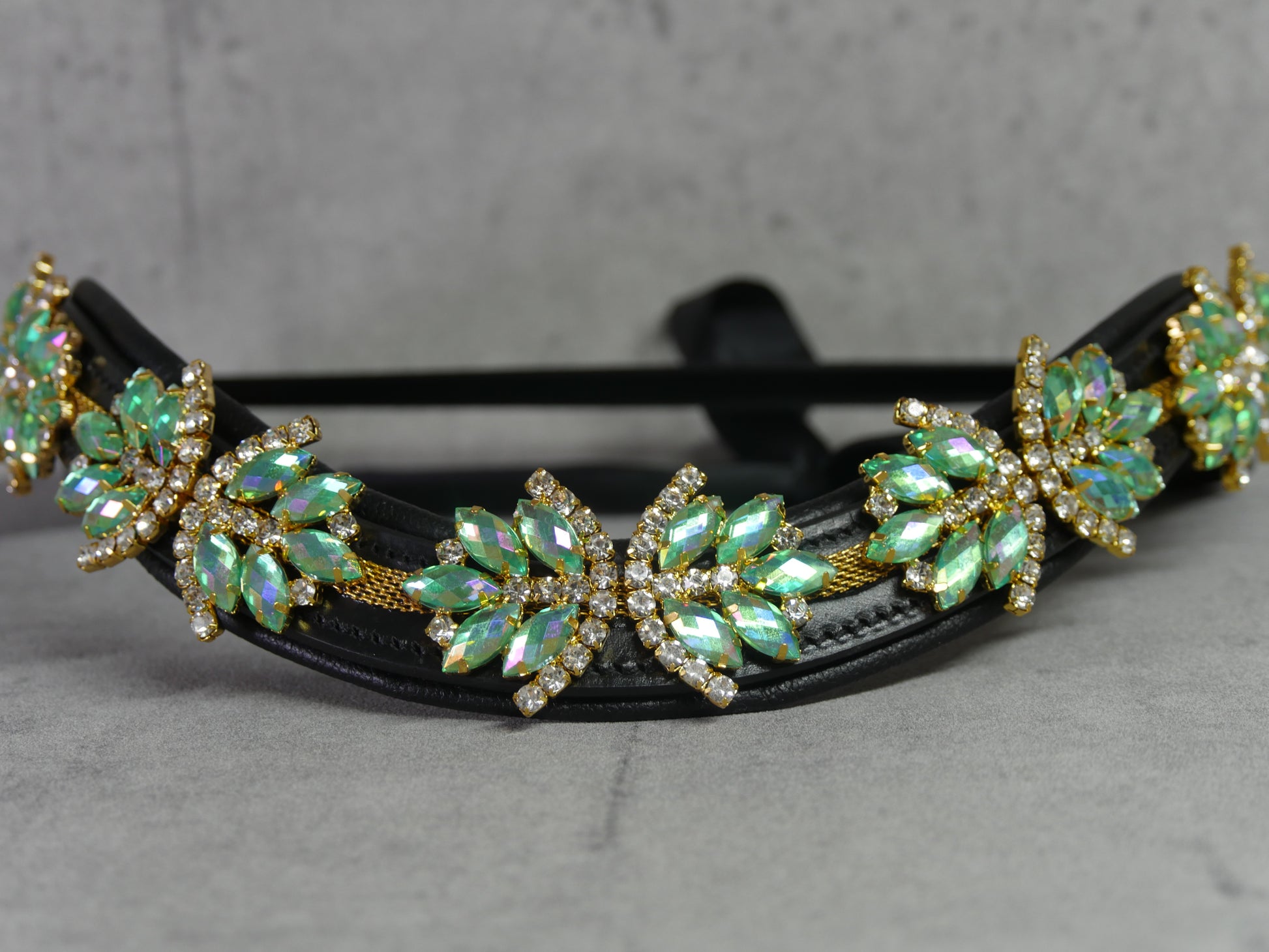 Mit unserem "Superstar" Stirnriemen in Türkis mit goldenen und silbernen Details wird jedes Pferd zum absoluten Hingucker. Die türkise Strasssteinverzierung auf dem schwarzen Lederband und der praktische Schnellverschluss machen nicht nur optisch, sondern auch beim Anlegen eine tolle Figur. Dein Pferd wird bewundernswert aussehen!