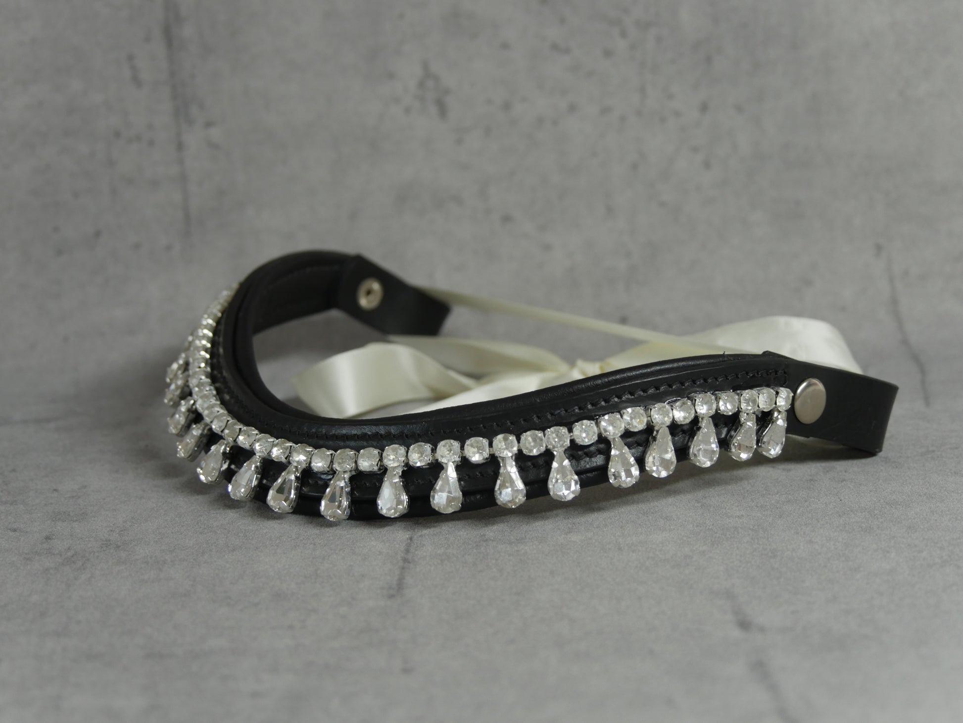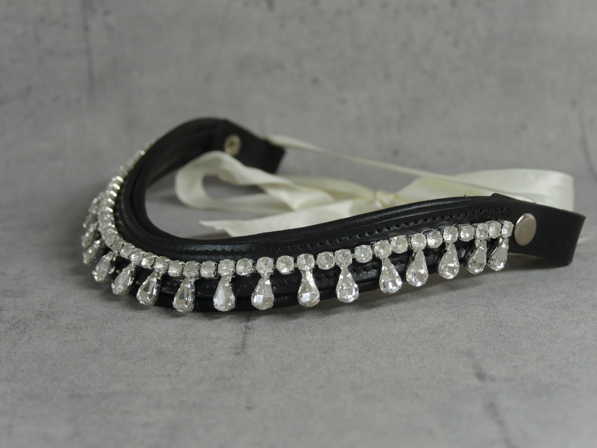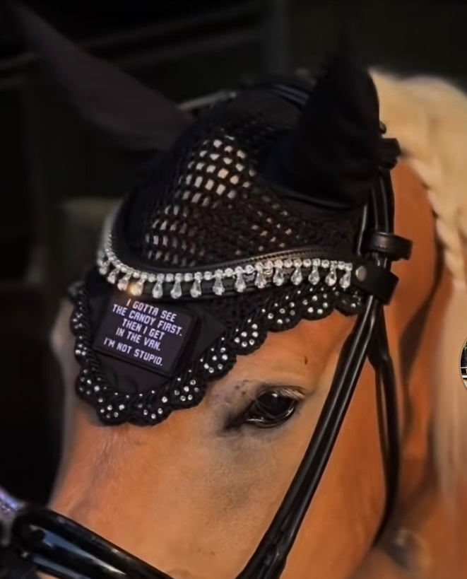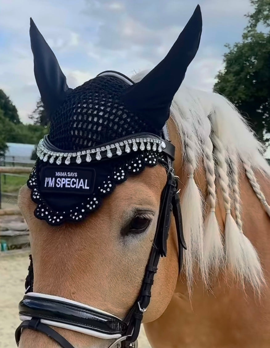Funkelnder Stirnriemen mit edlem Tropfen-Design, der deinem Pferd einen stylischen Look verleiht! Der praktische Schnellverschluss macht das Anlegen zum Kinderspiel, während die glitzernden Elemente im Sonnenlicht magisch reflektieren. Lass dein Pferd strahlen und zum Blickfang auf jedem Turnier werden!
