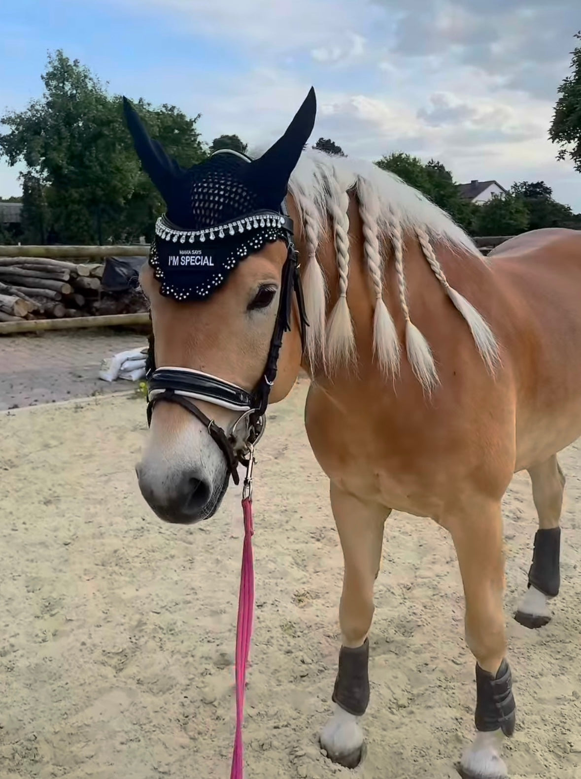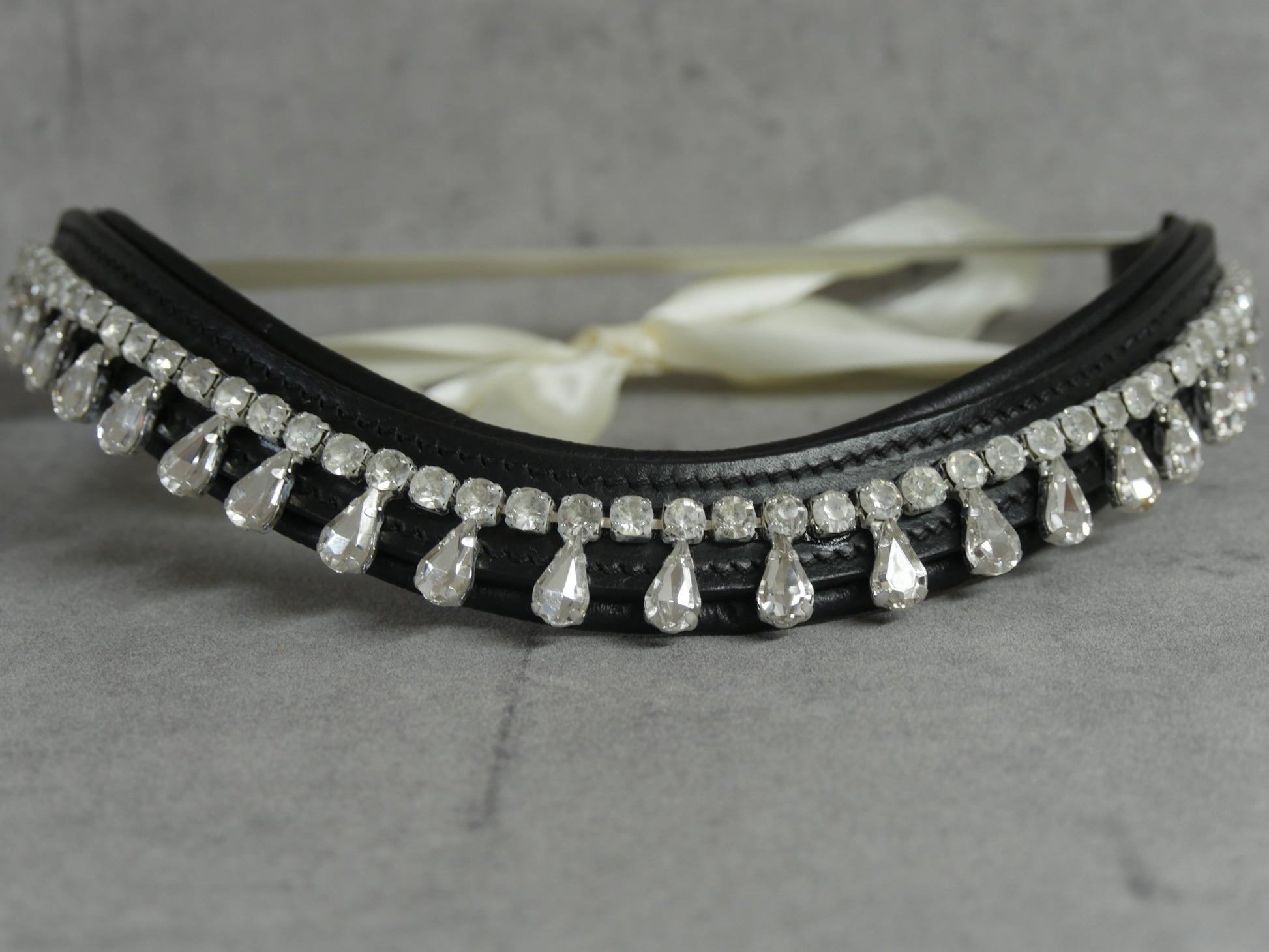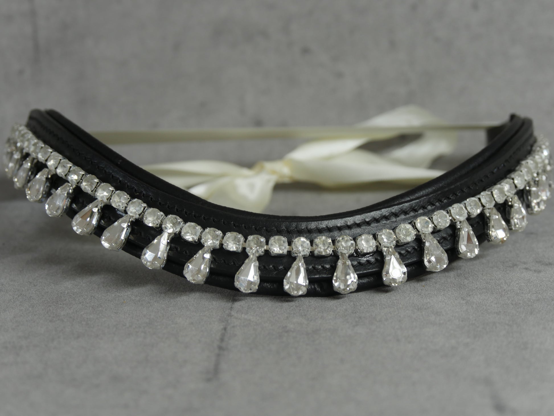 Funkelnder Stirnriemen mit edlem Tropfen-Design, der deinem Pferd einen stylischen Look verleiht! Der praktische Schnellverschluss macht das Anlegen zum Kinderspiel, während die glitzernden Elemente im Sonnenlicht magisch reflektieren. Lass dein Pferd strahlen und zum Blickfang auf jedem Turnier werden!