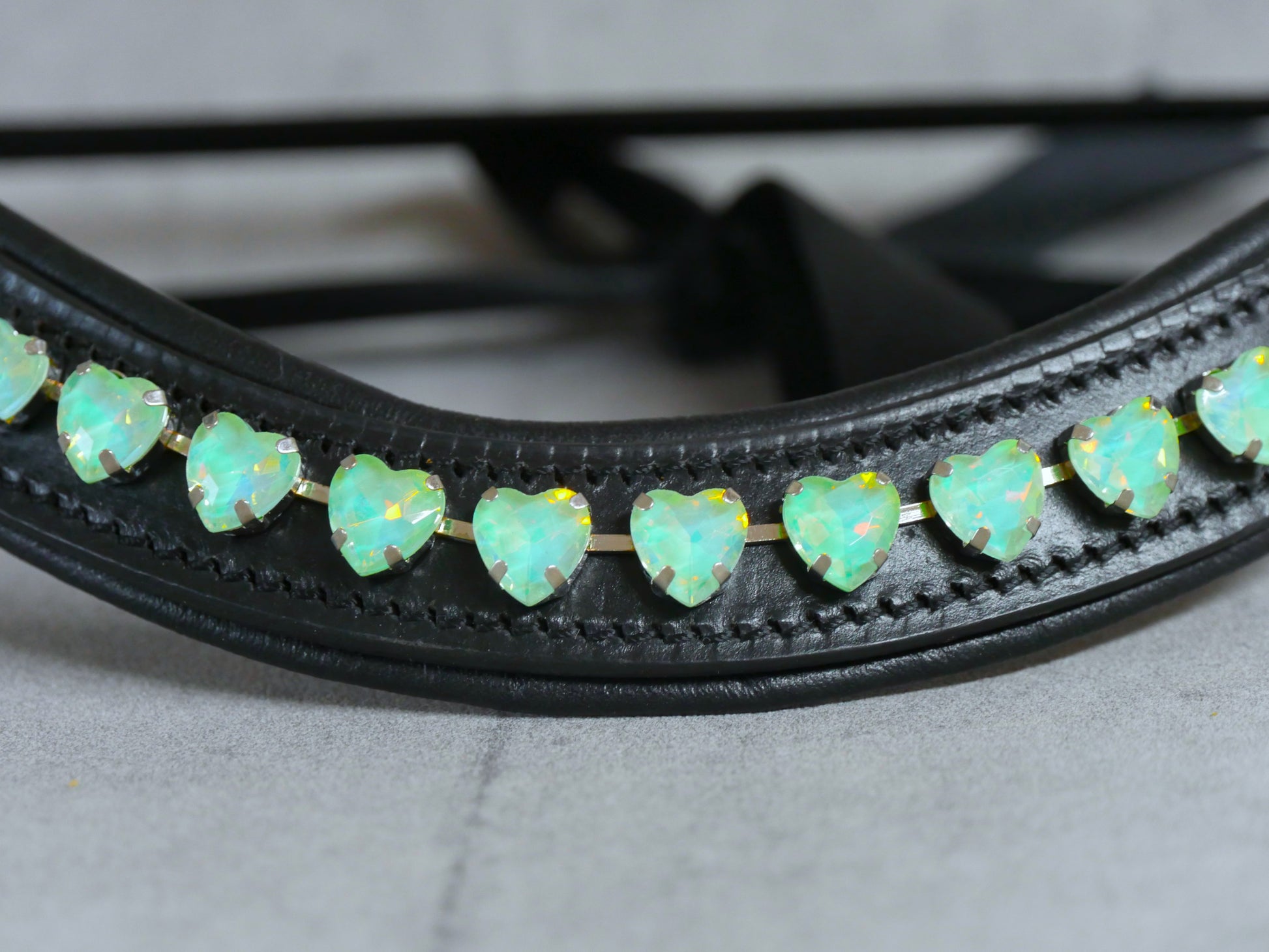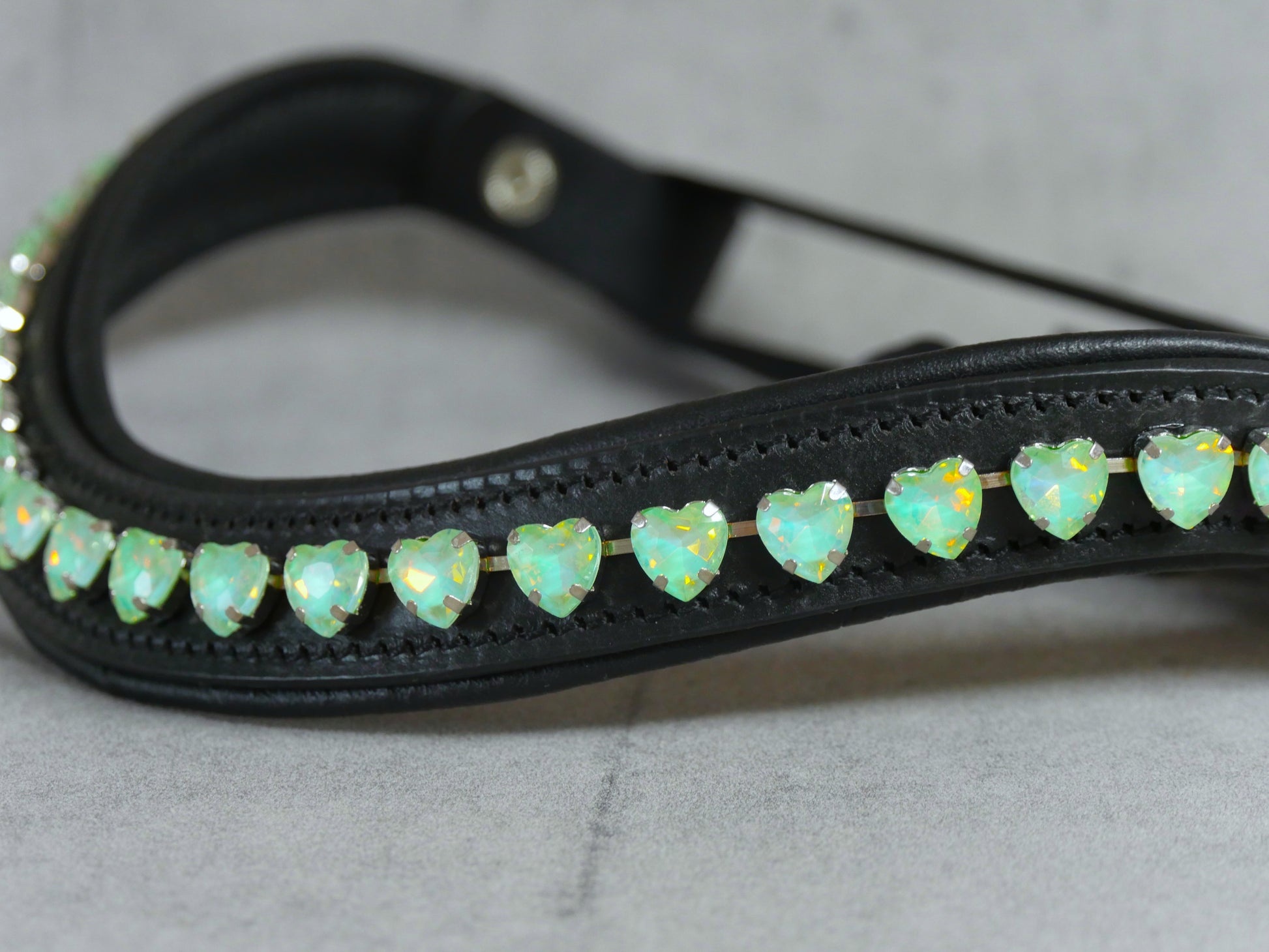 Überzeugen Sie sich vom einzigartigen "Stirnriemen Türkis Hearts" aus unserer exklusiven Fantasy Kollektion. Dieser hochwertige Stirnriemen besticht nicht nur durch seine charmanten türkisen Herzen, sondern auch durch den innovativen Schnellverschluss, der Ihnen wertvolle Zeit beim Trensen spart. Investieren Sie in Komfort und Stil zugleich – Ihr Pferd wird den Unterschied spüren und Sie werden die bewundernden Blicke genießen. Eine Anschaffung, die Funktionalität mit Eleganz perfekt vereint.