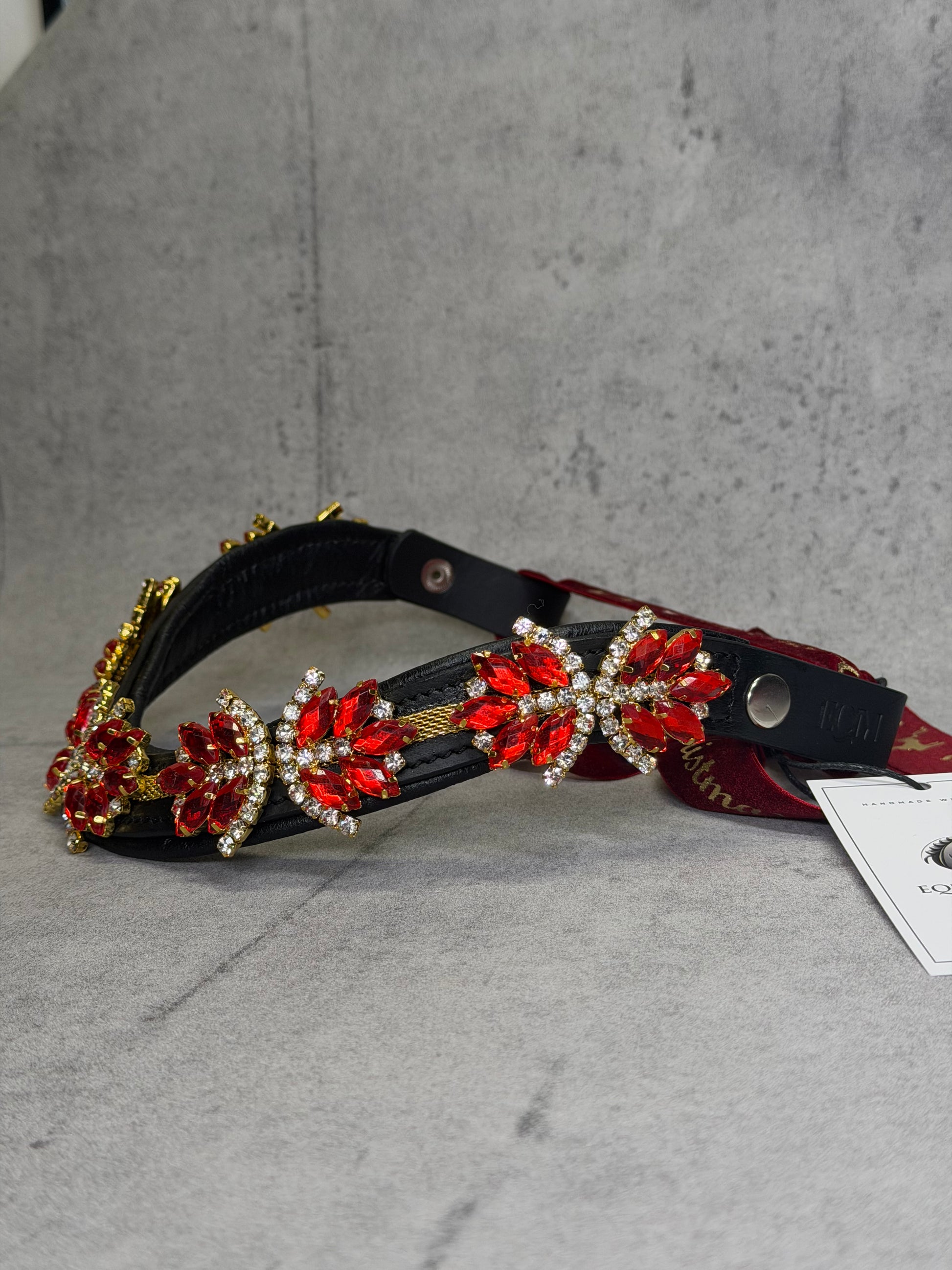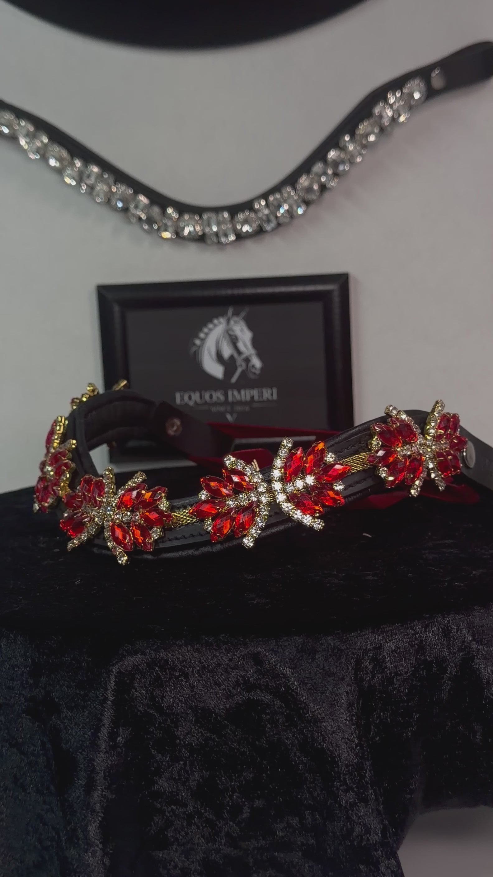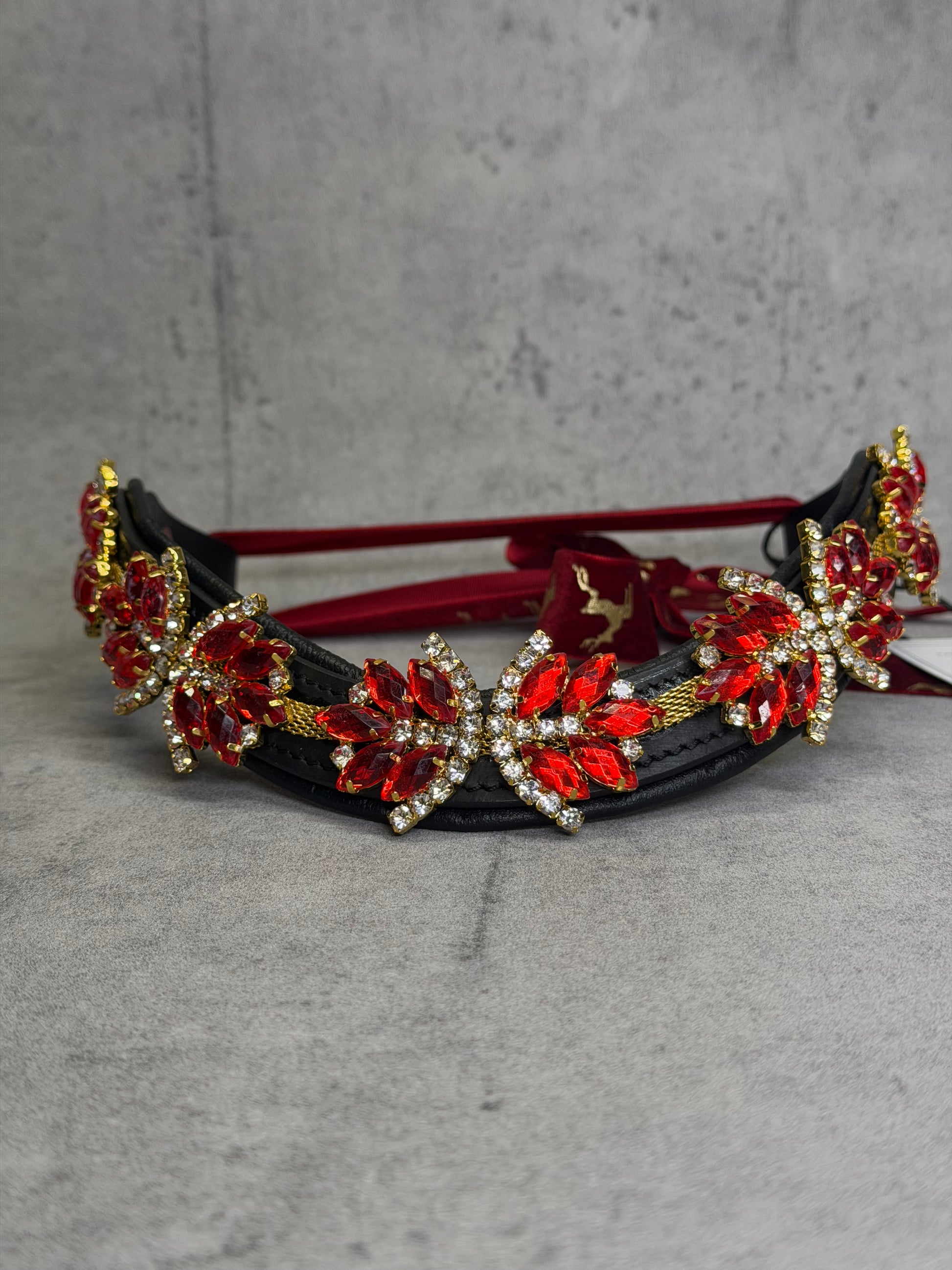 Verleihen Sie Ihrem Pferd einen glamourösen und weihnachtlichen Auftritt mit unserem Stirnriemen "Red Hearts". Die funkelnden Glitzerelemente setzen bezaubernde Akzente, während der praktische Schnellverschluss für mühelose Handhabung sorgt. Ein unverzichtbares Accessoire für stilbewusste Reiter, die Wert auf Eleganz und Funktionalität legen.