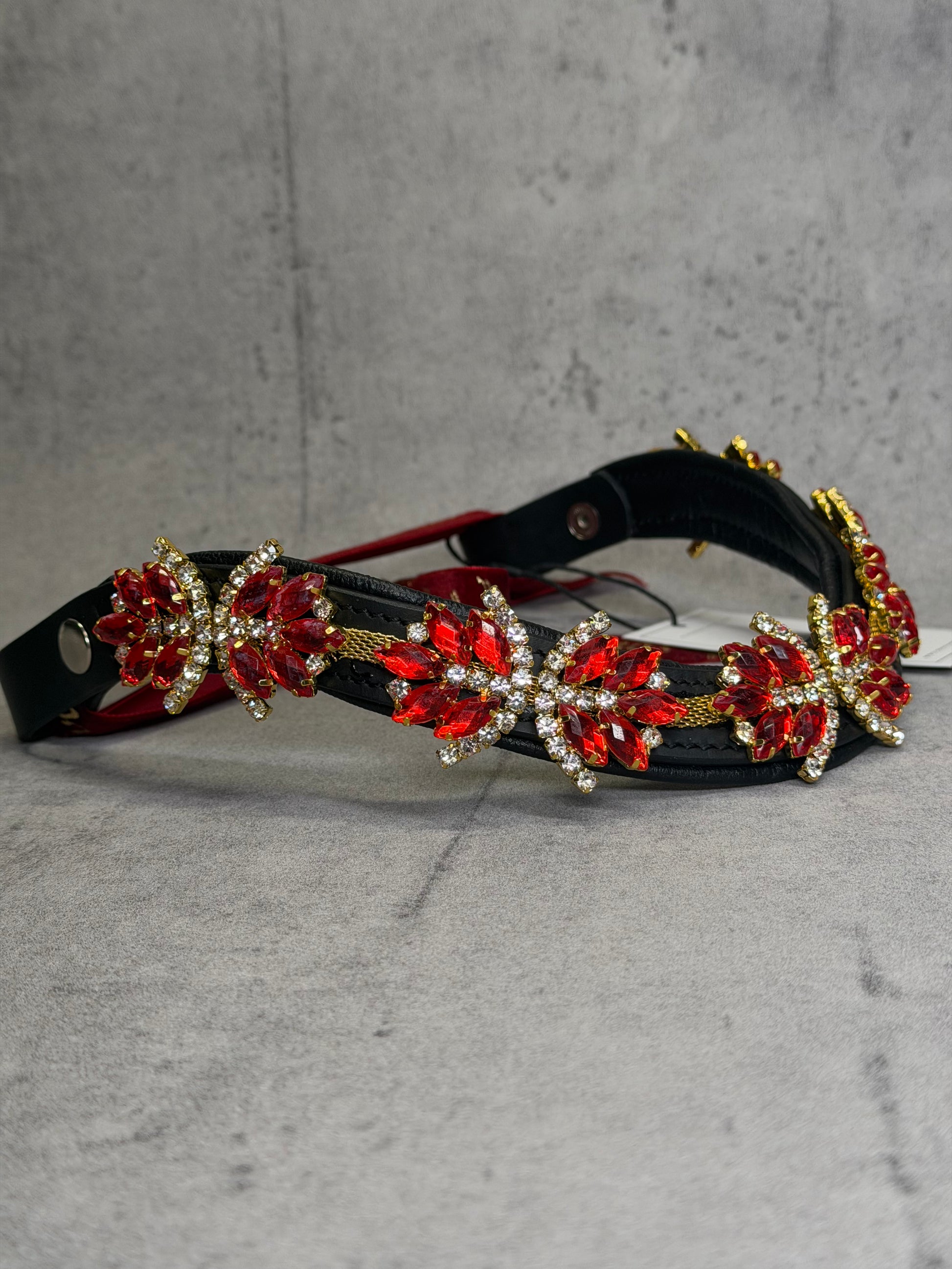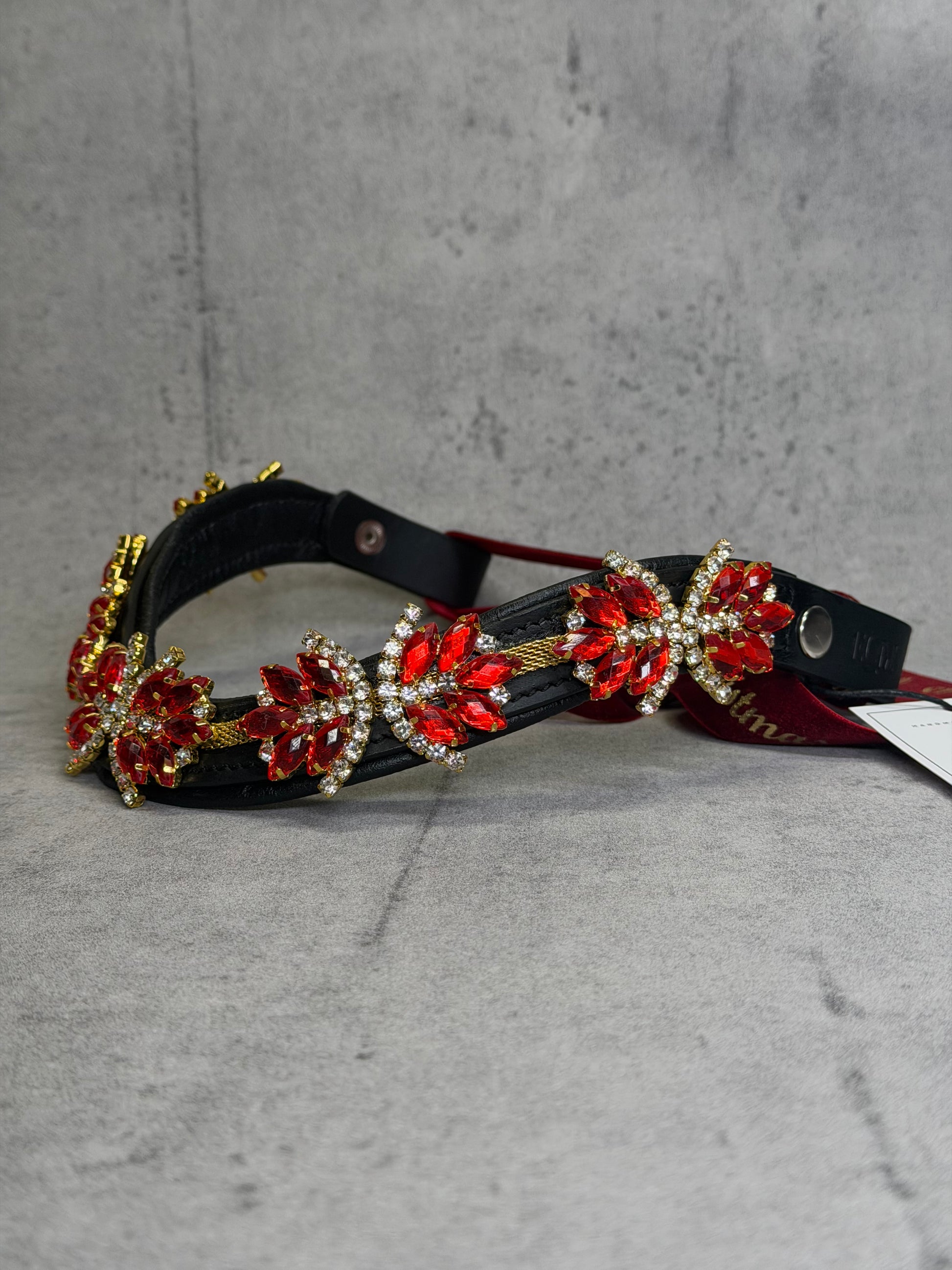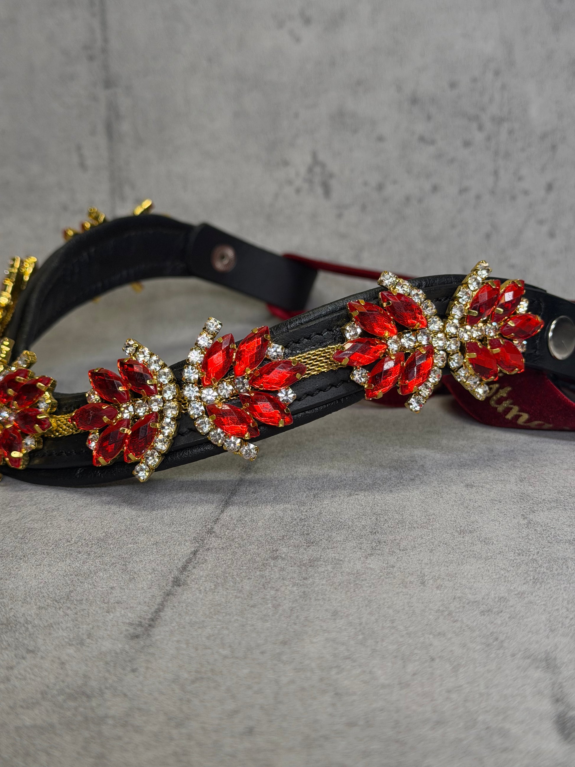 Verleihen Sie Ihrem Pferd einen glamourösen und weihnachtlichen Auftritt mit unserem Stirnriemen "Red Hearts". Die funkelnden Glitzerelemente setzen bezaubernde Akzente, während der praktische Schnellverschluss für mühelose Handhabung sorgt. Ein unverzichtbares Accessoire für stilbewusste Reiter, die Wert auf Eleganz und Funktionalität legen.