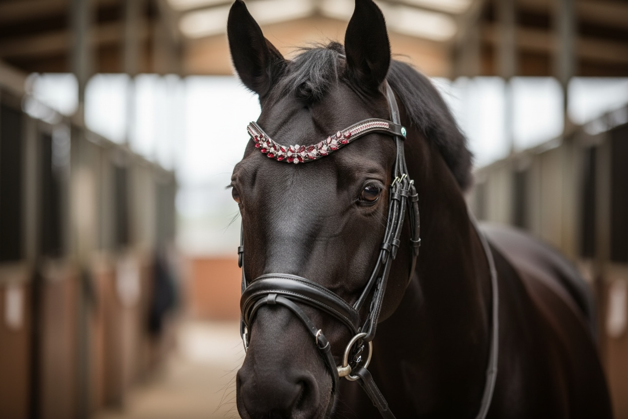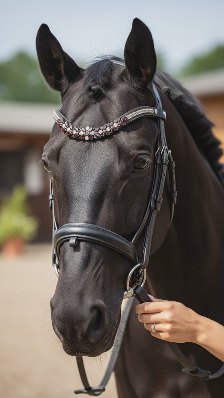Entdecken Sie unsere bezaubernden Stirnriemen! Dieses stilvolle Accessoire bringt nicht nur Glanz in Ihr Outfit, sondern lässt sich perfekt mit passendem Sattelschmuck kombinieren. Vervollständigen Sie Ihren Look und fühlen Sie sich auf dem Pferd selbstbewusst und einzigartig!