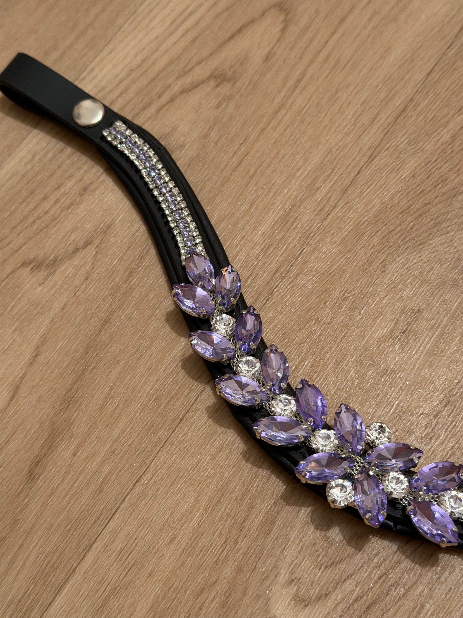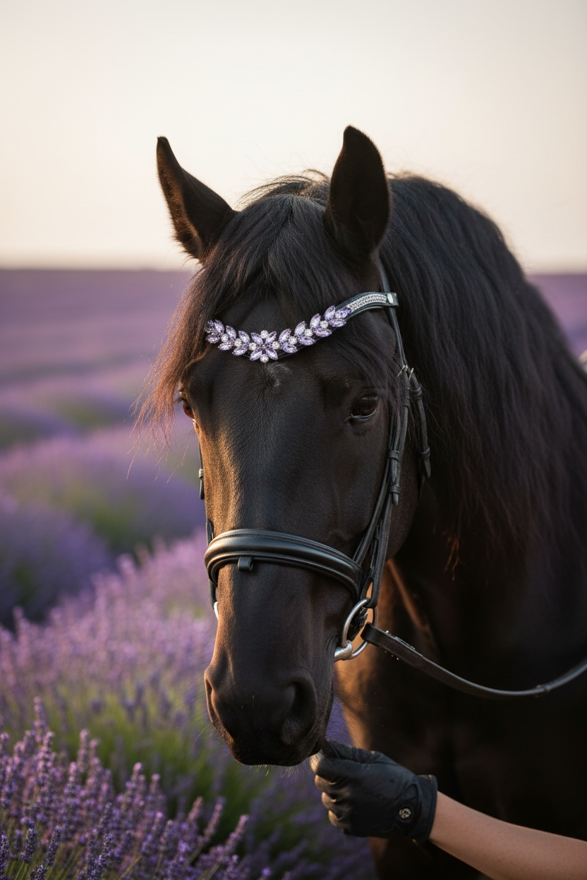 Entdecken Sie den bezaubernden Stirnriemen Provence in elegantem flieder mit silbernen Akzenten stilvolle Accessoire bringt nicht nur Glanz in Ihr Outfit, sondern lässt sich perfekt mit passendem Sattelschmuck kombinieren. Vervollständigen Sie Ihren Look und fühlen Sie sich auf dem Pferd selbstbewusst und einzigartig!